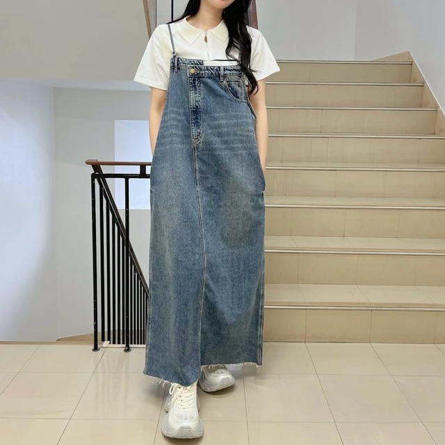 【paulineblue】裾フリンジデニムジャンスカワンピース