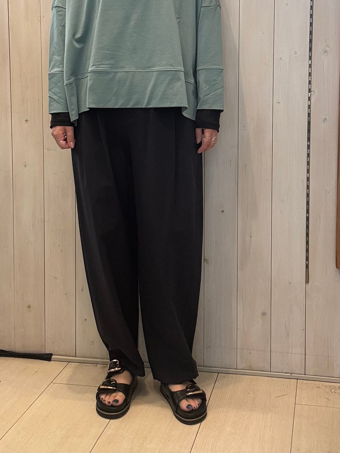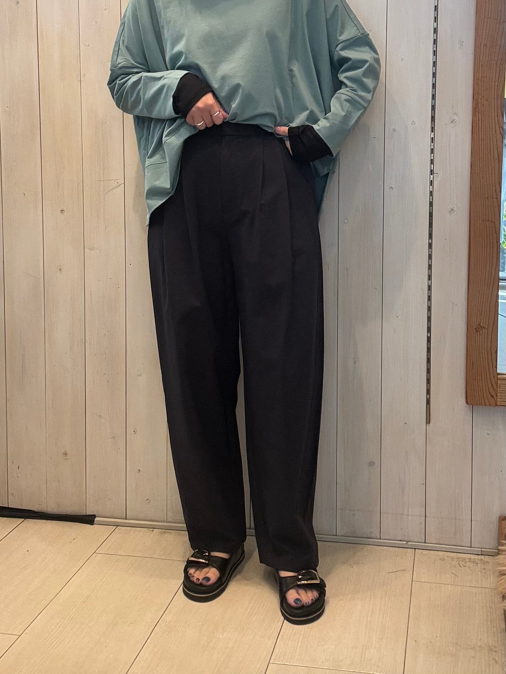 スッキリバランス良く着用出来るタックテーパードパンツです。