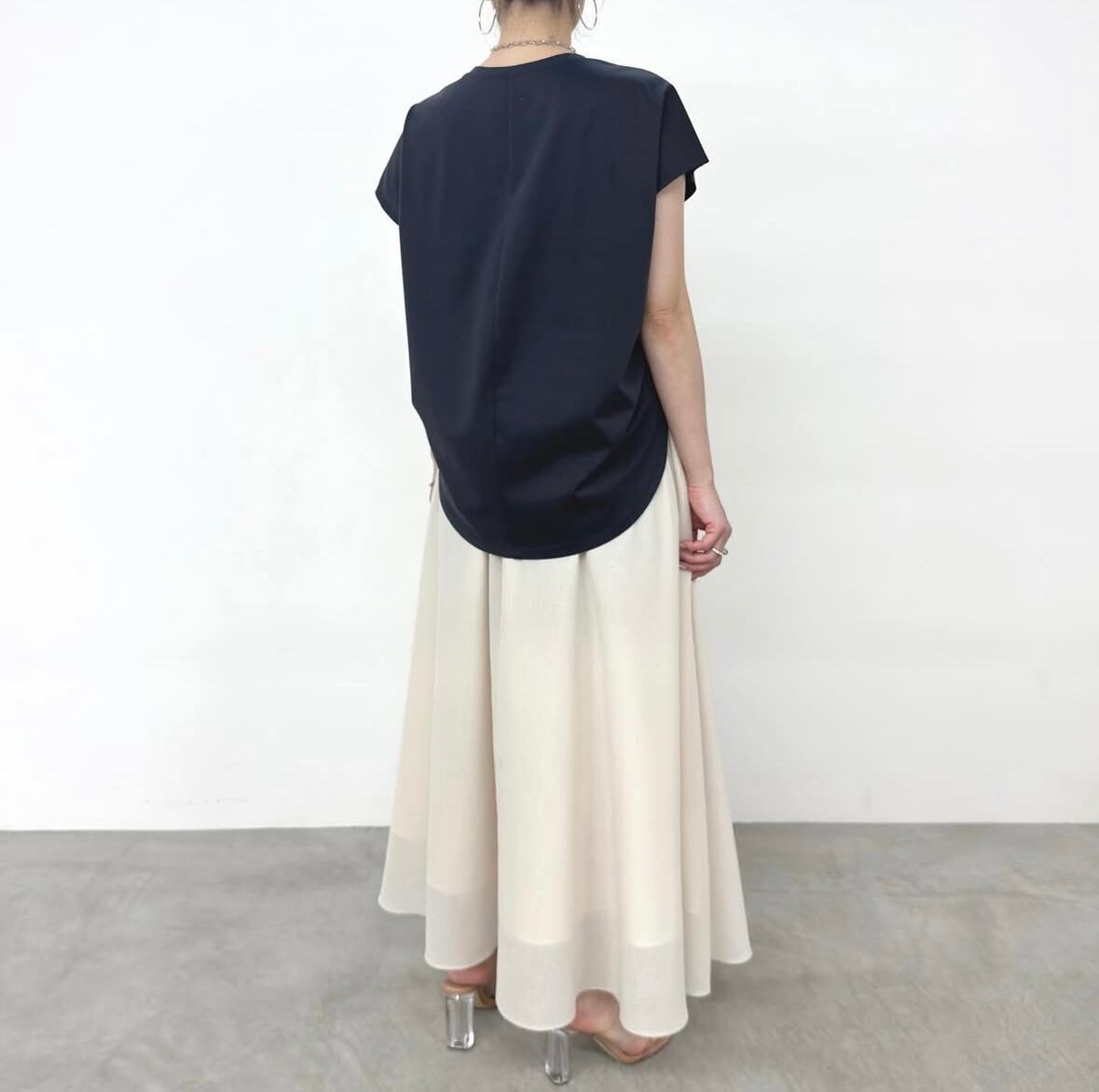 おしりが隠れる着丈と二の腕が隠れるフレンチスリーブで体型カバー◎