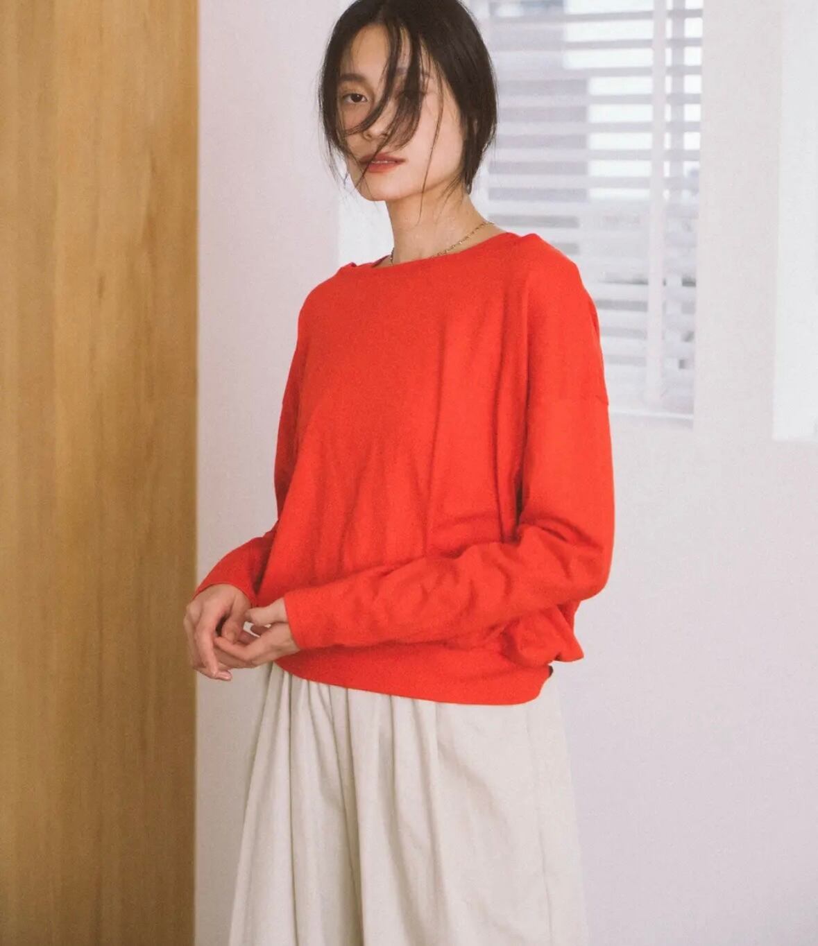裾にタックをつまみバルーンシルエットにし、よりデザイン性のあるカットソーに。