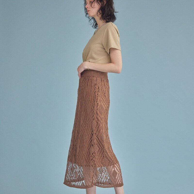 透かし編みが大人可愛い、履くだけでオシャレに映えるスカートです。