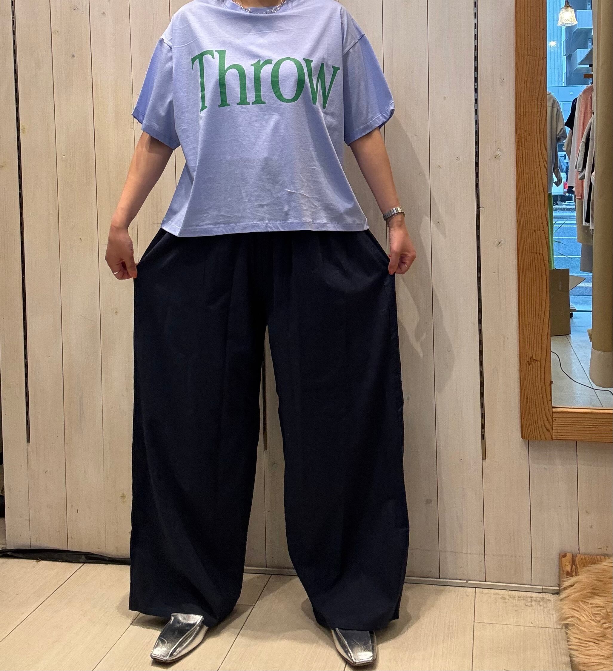 ラクにはけて着脱しやすく、ウエストゴム仕様。ウエスト内側のドローストリングでウエストサイズの調整可能。ゆったりしたワイドシルエットは脚のラインを拾いにくく、体型カバーも◎