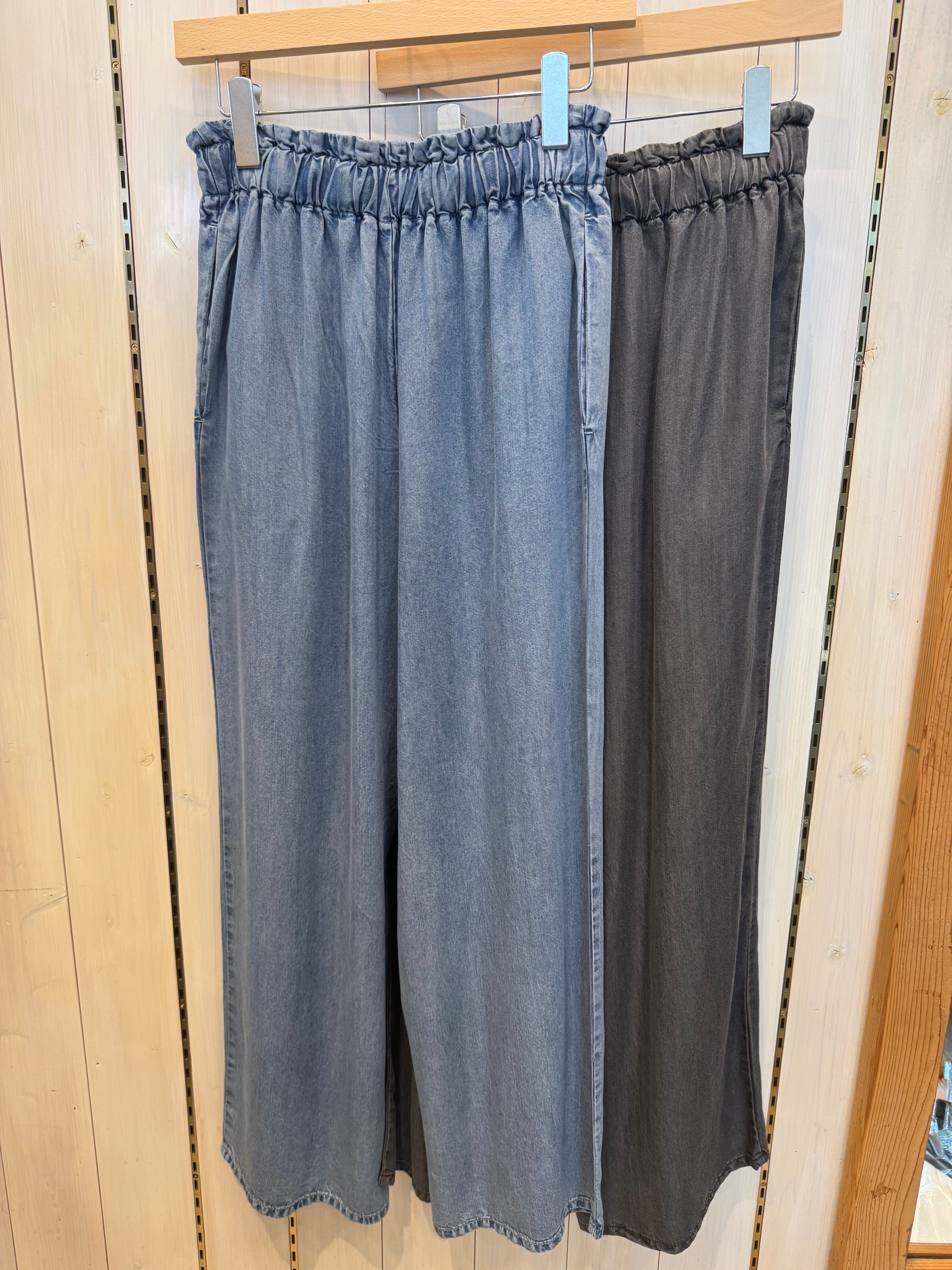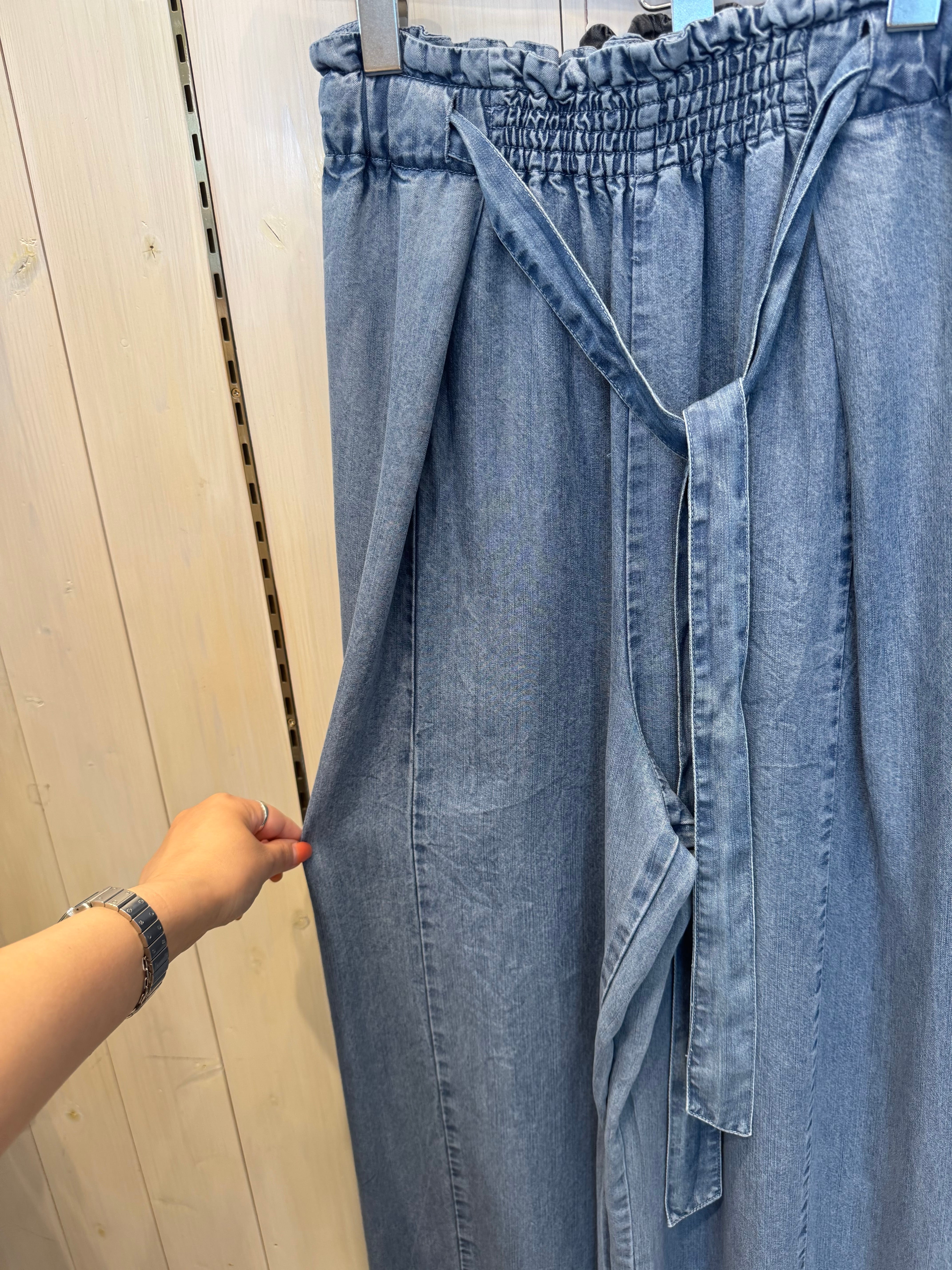 軽くサラッとした履き心地のテンセルデニムのワイドパンツ。