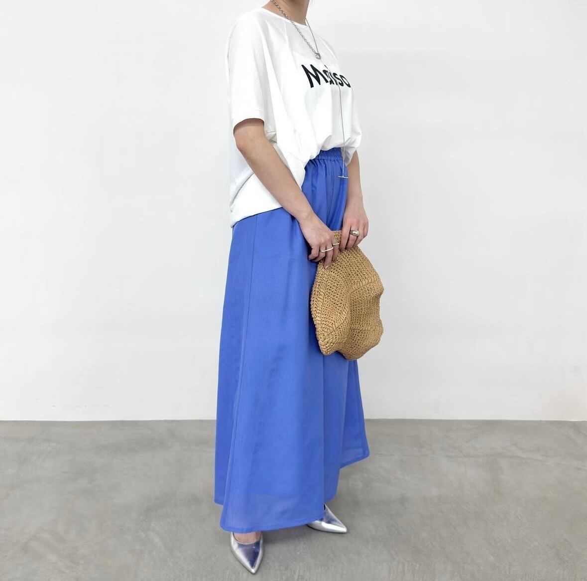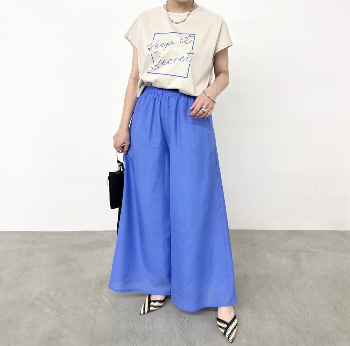 足のラインを拾わないワイドシルエット。