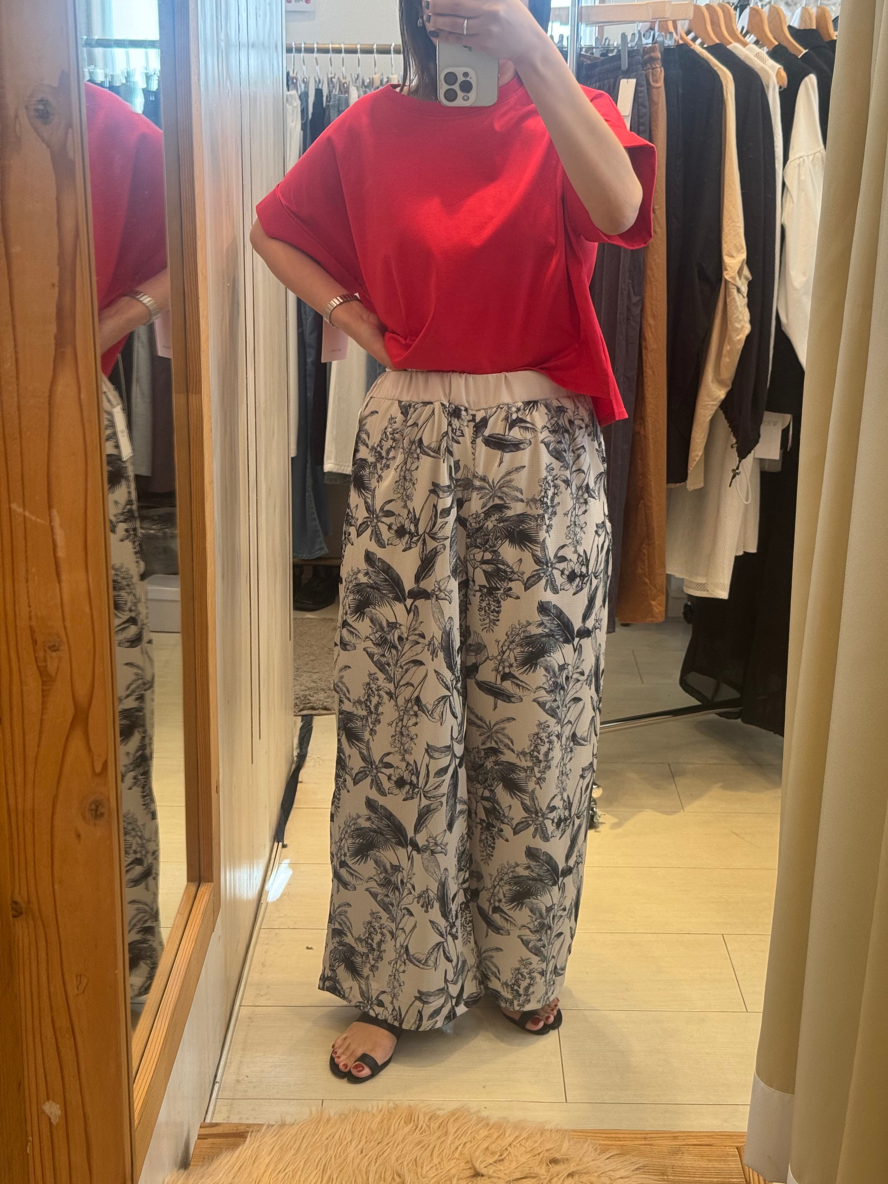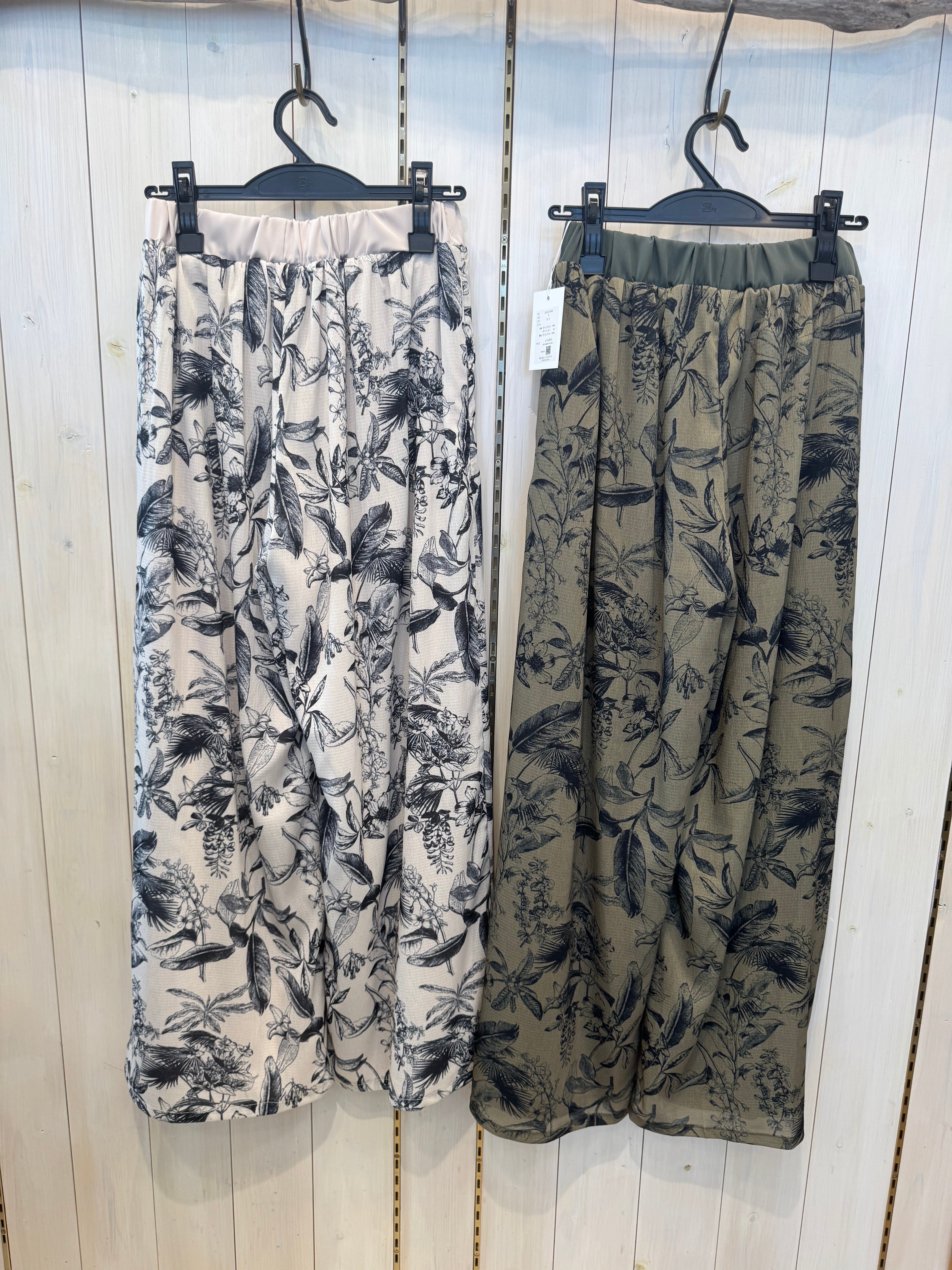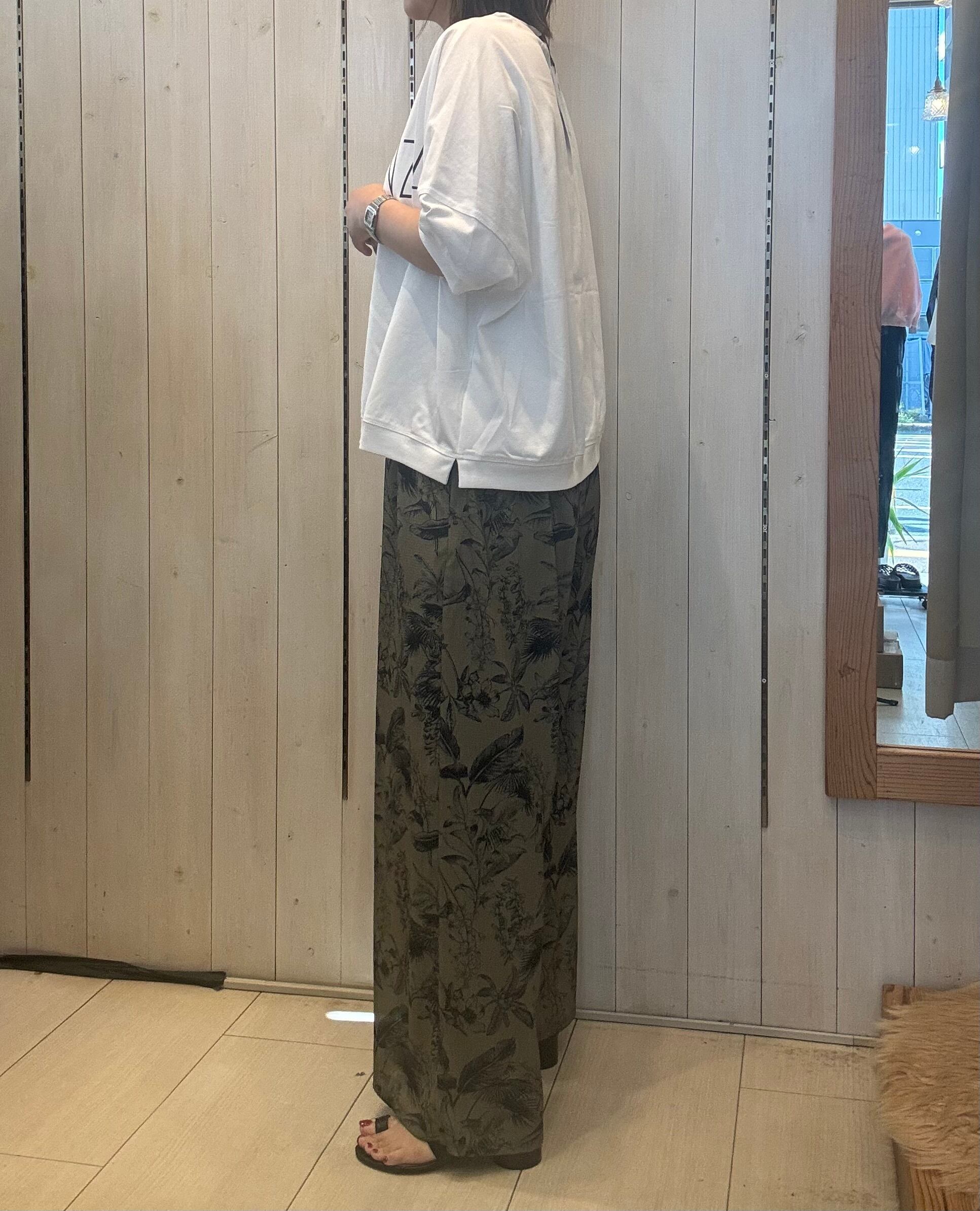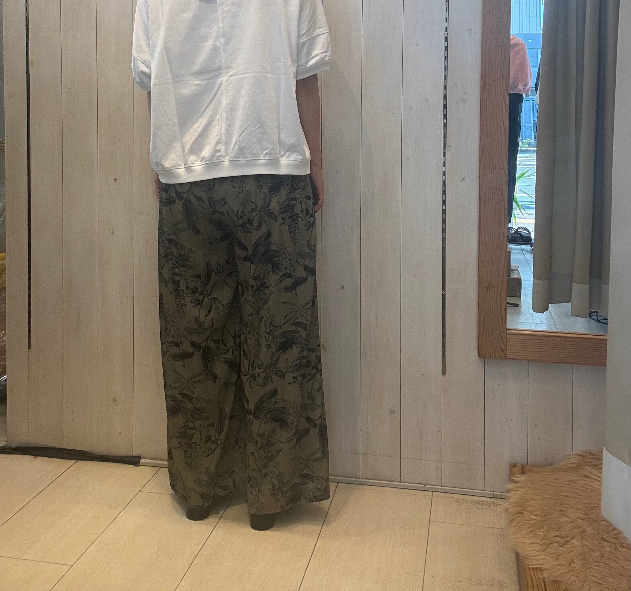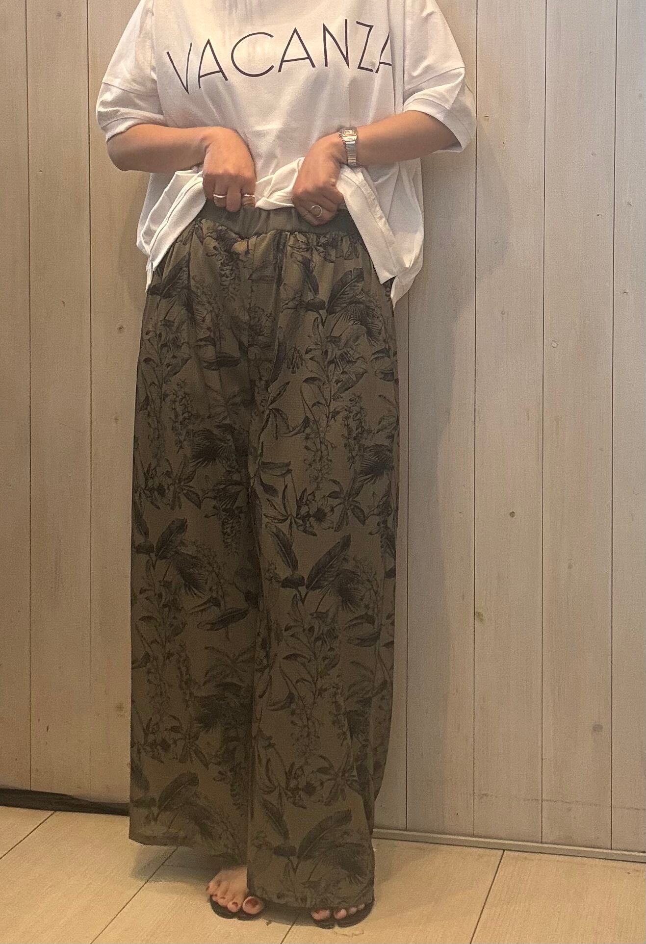 サラッとした夏にも快適なプリント柄ワイドパンツ。