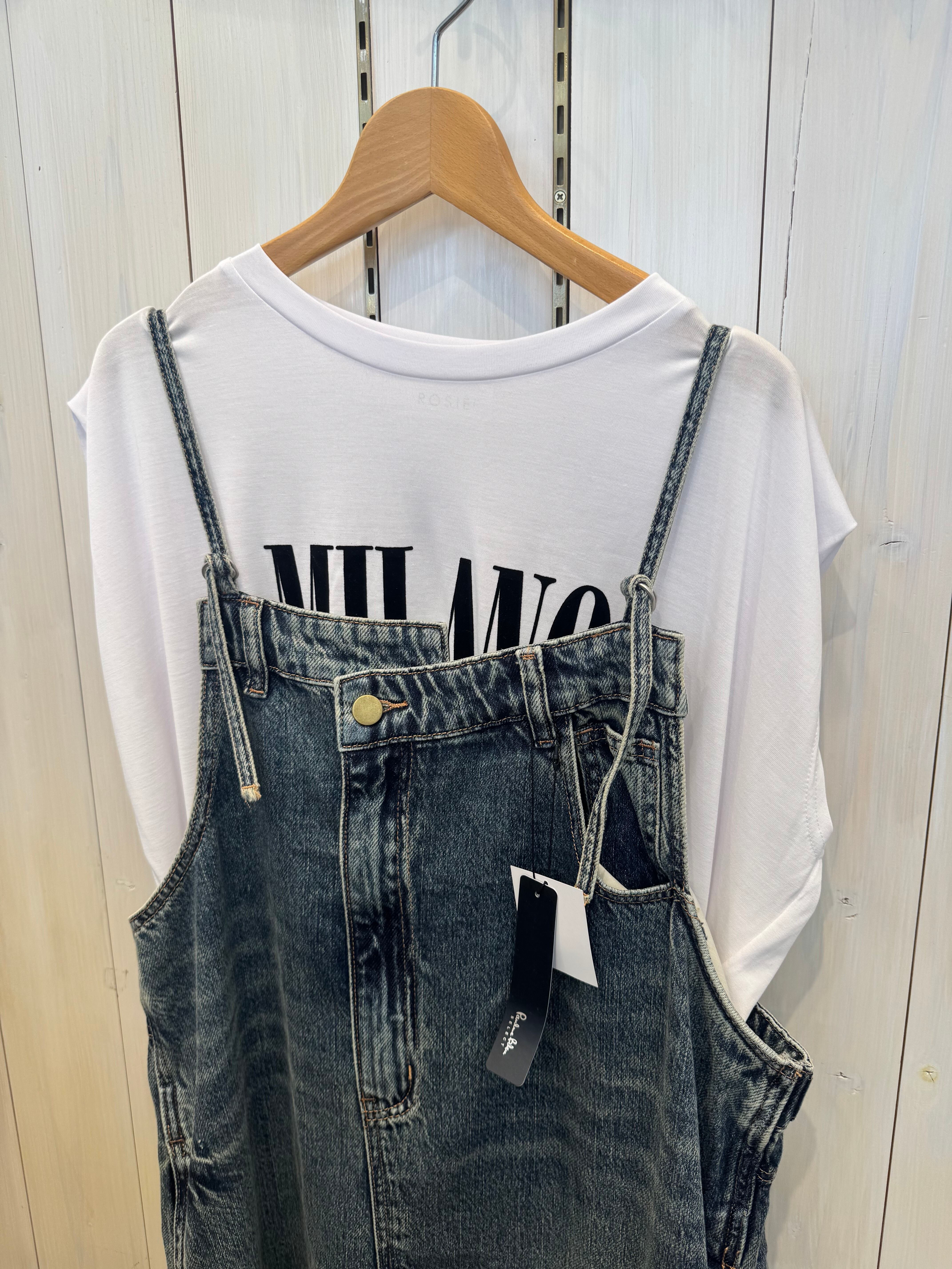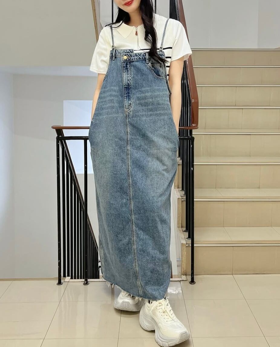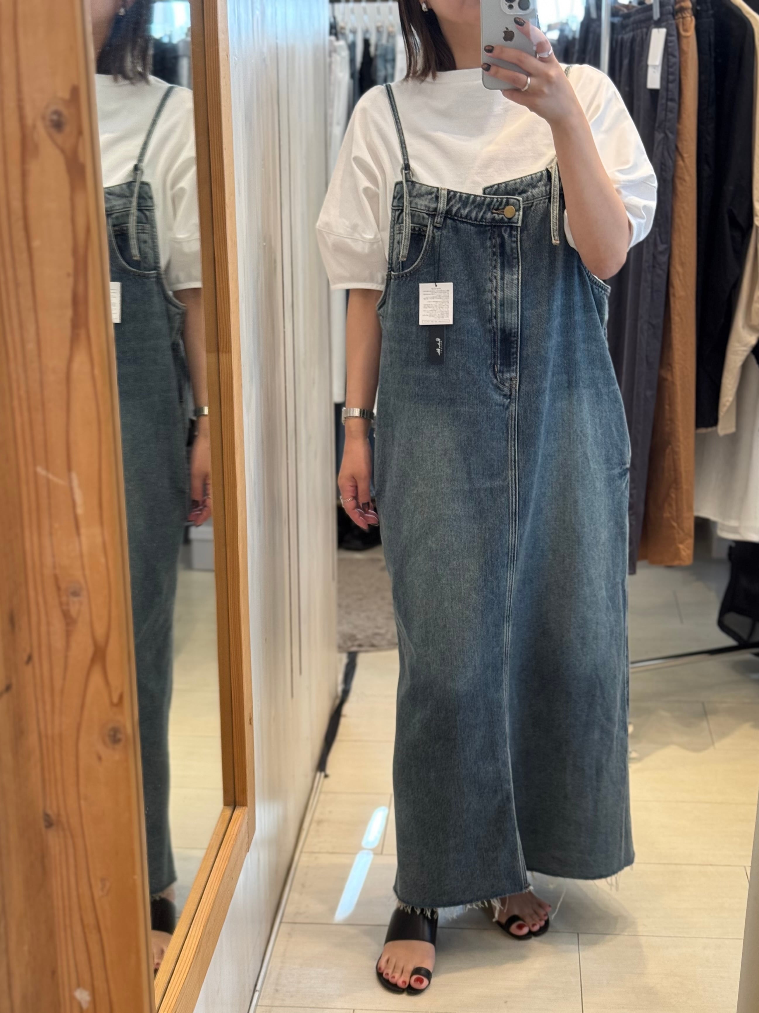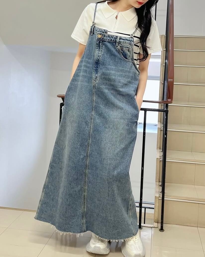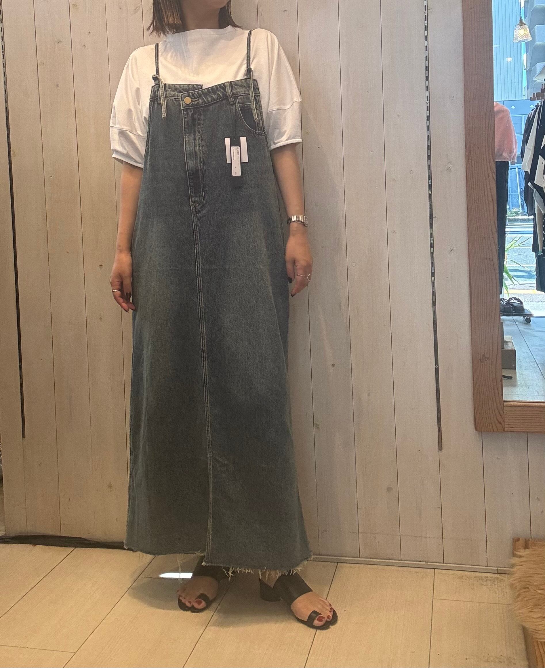 【paulineblue】裾フリンジデニムジャンスカワンピース