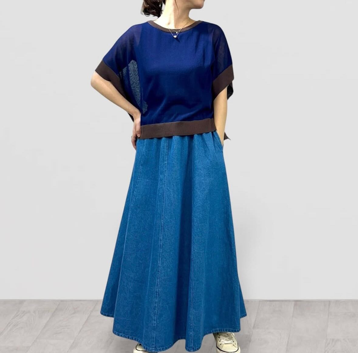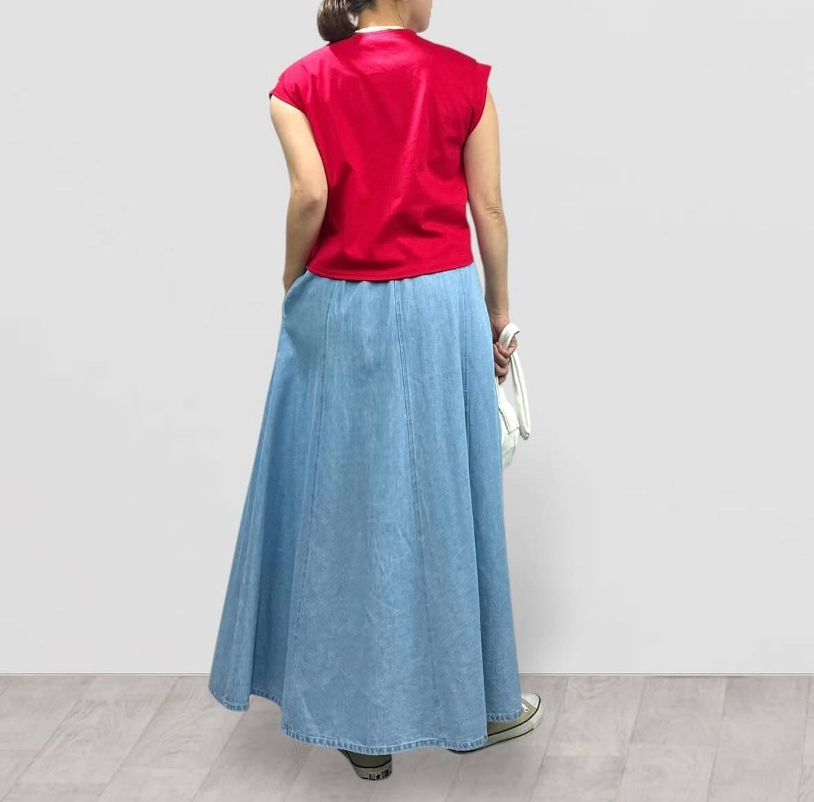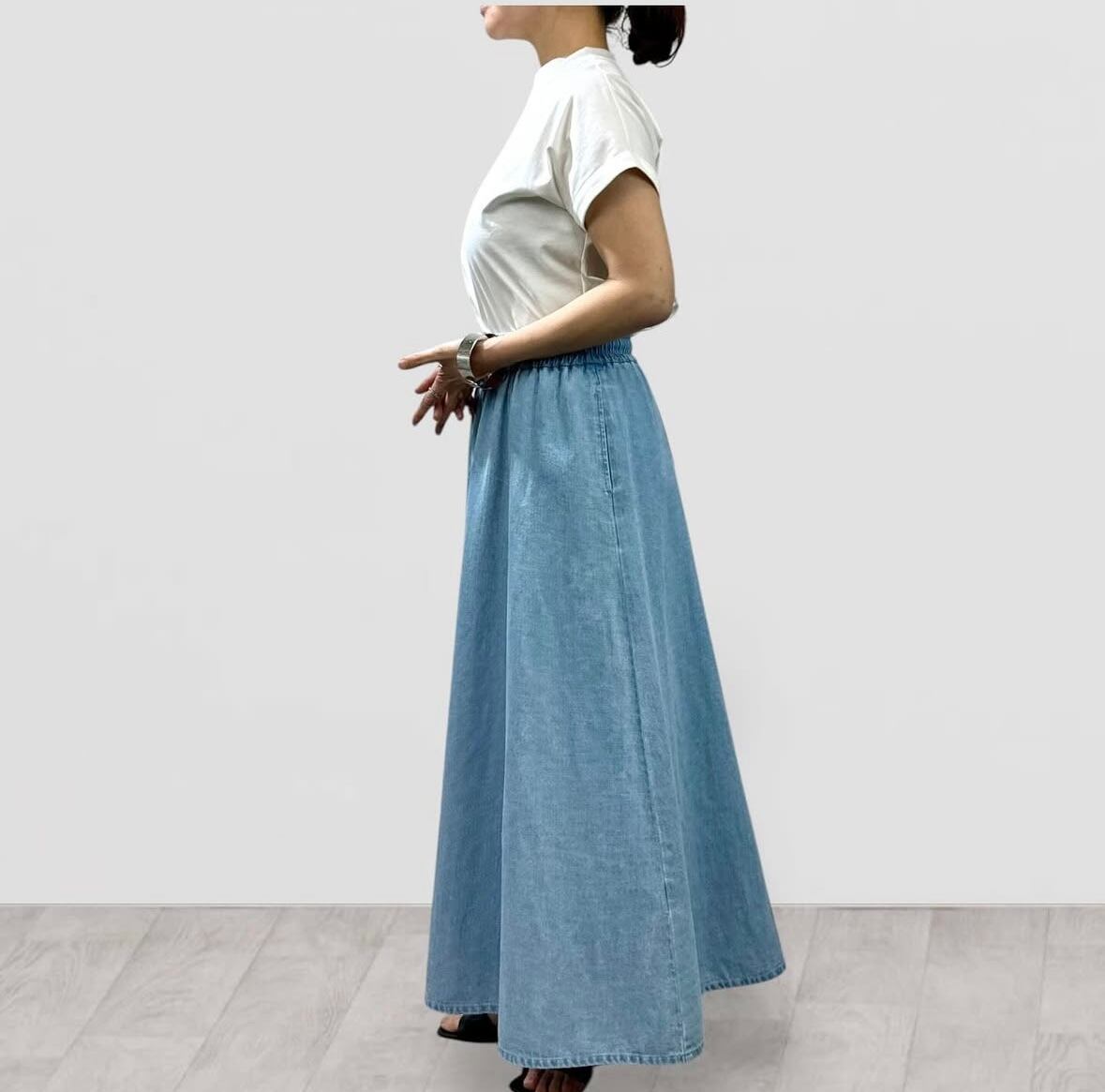 8枚接ぎの腰周りがスッキリとしたフレアシルエット。