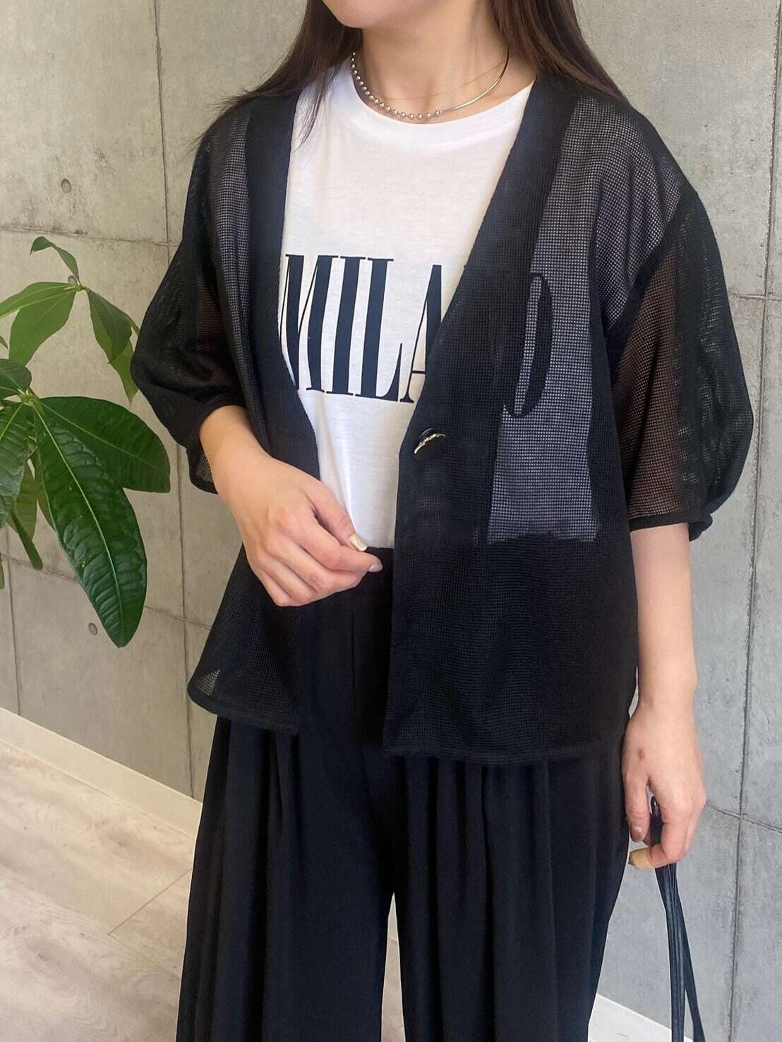 軽くて羽織りやすく、カーディガンよりもキレイ目に決まる半袖のジャケットはお仕事シーンでも大活躍。