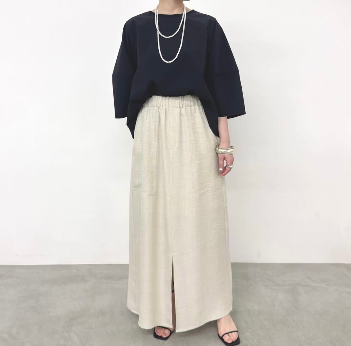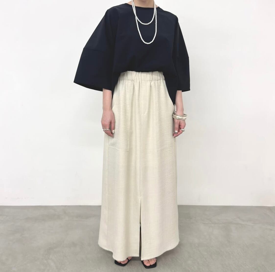 体のラインを拾いにくく短め、長めどちらのトップスも合しやすいです。