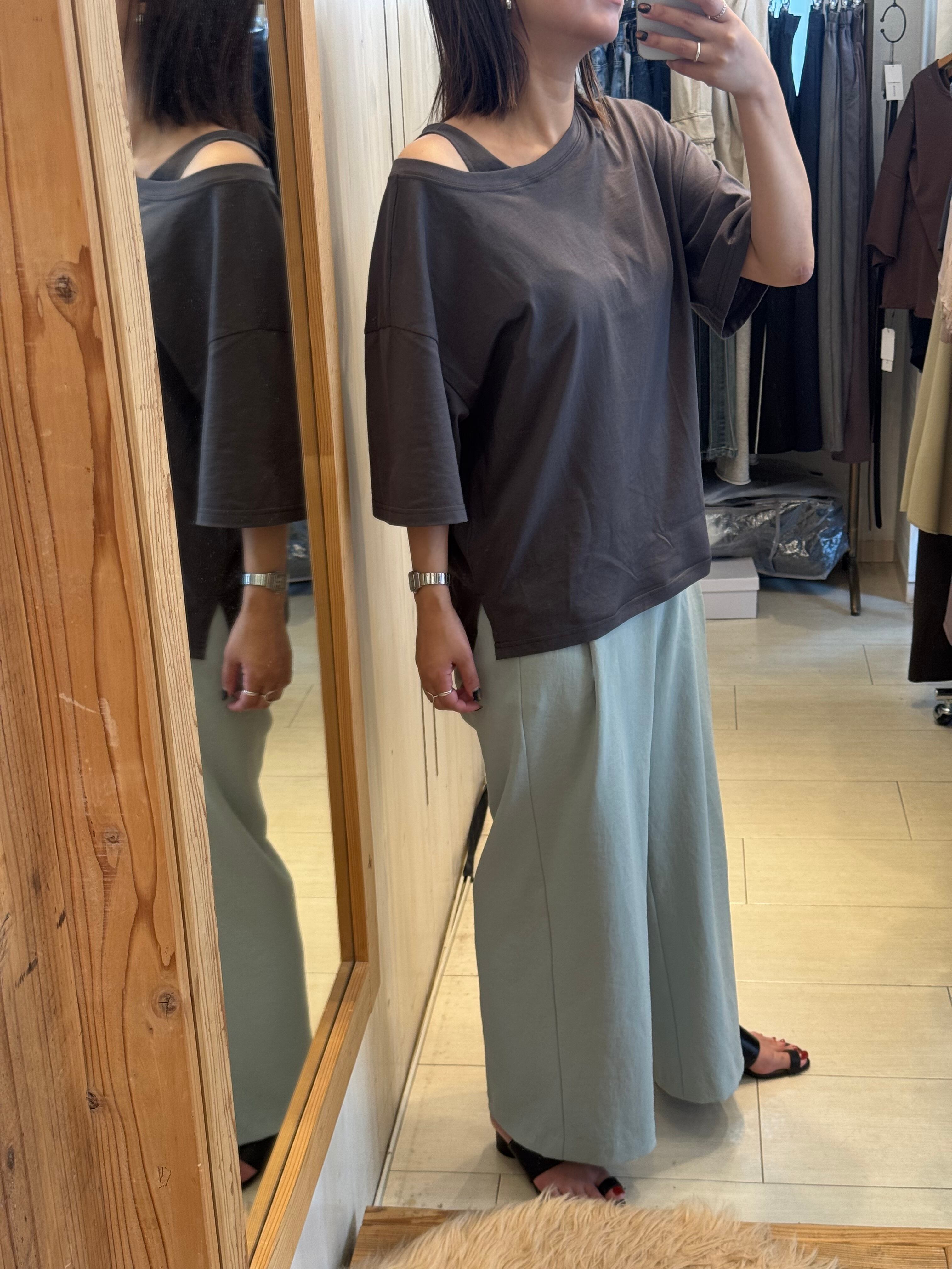 片側だけがレイヤードしてる風で程よい肌見せでヘルシーに◎