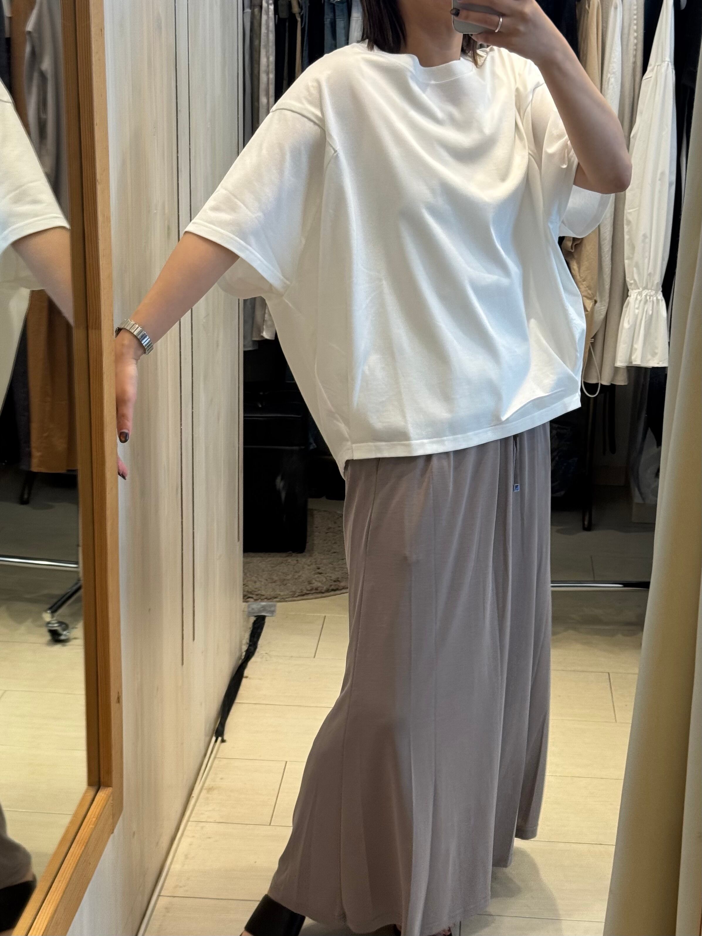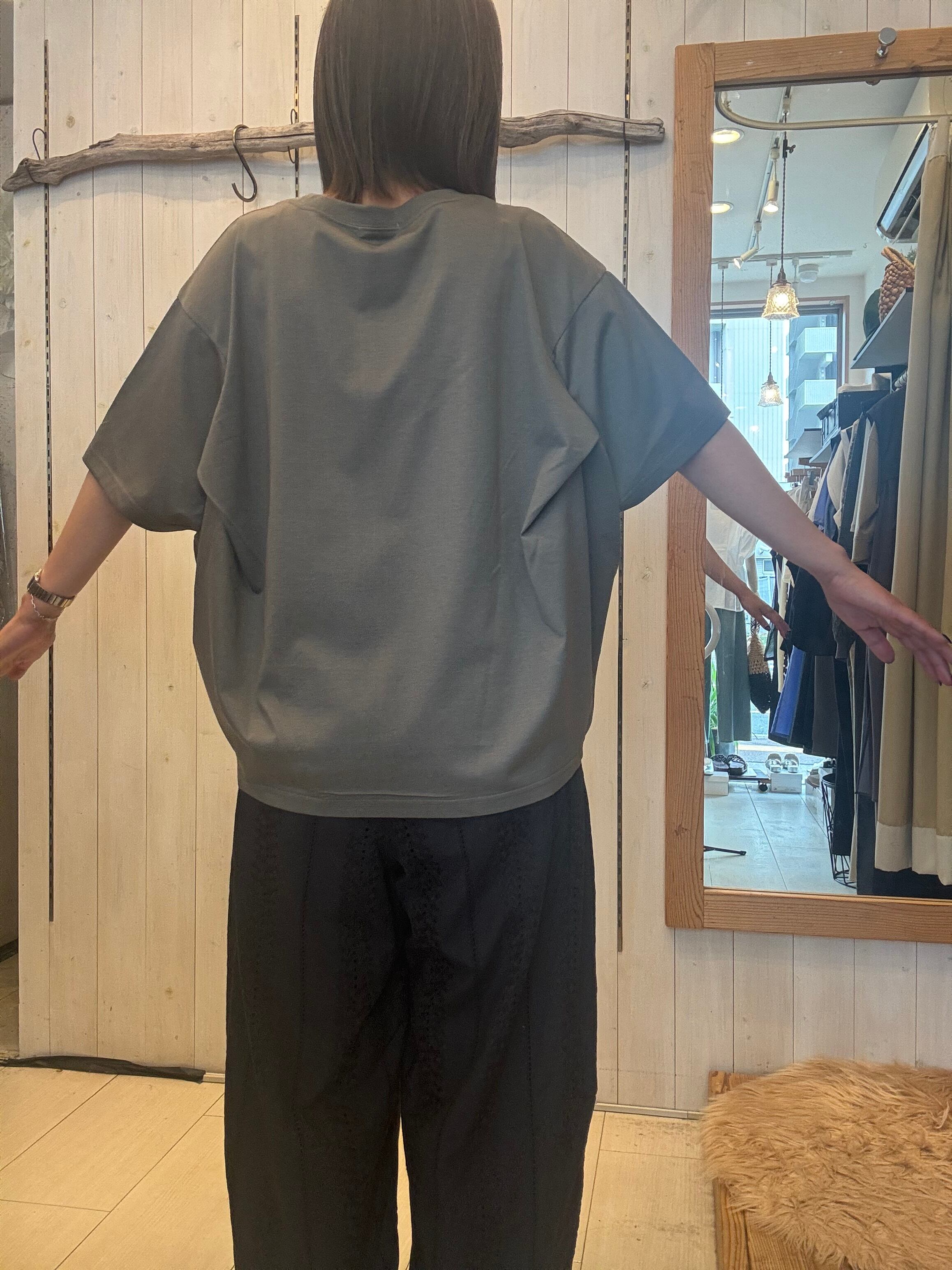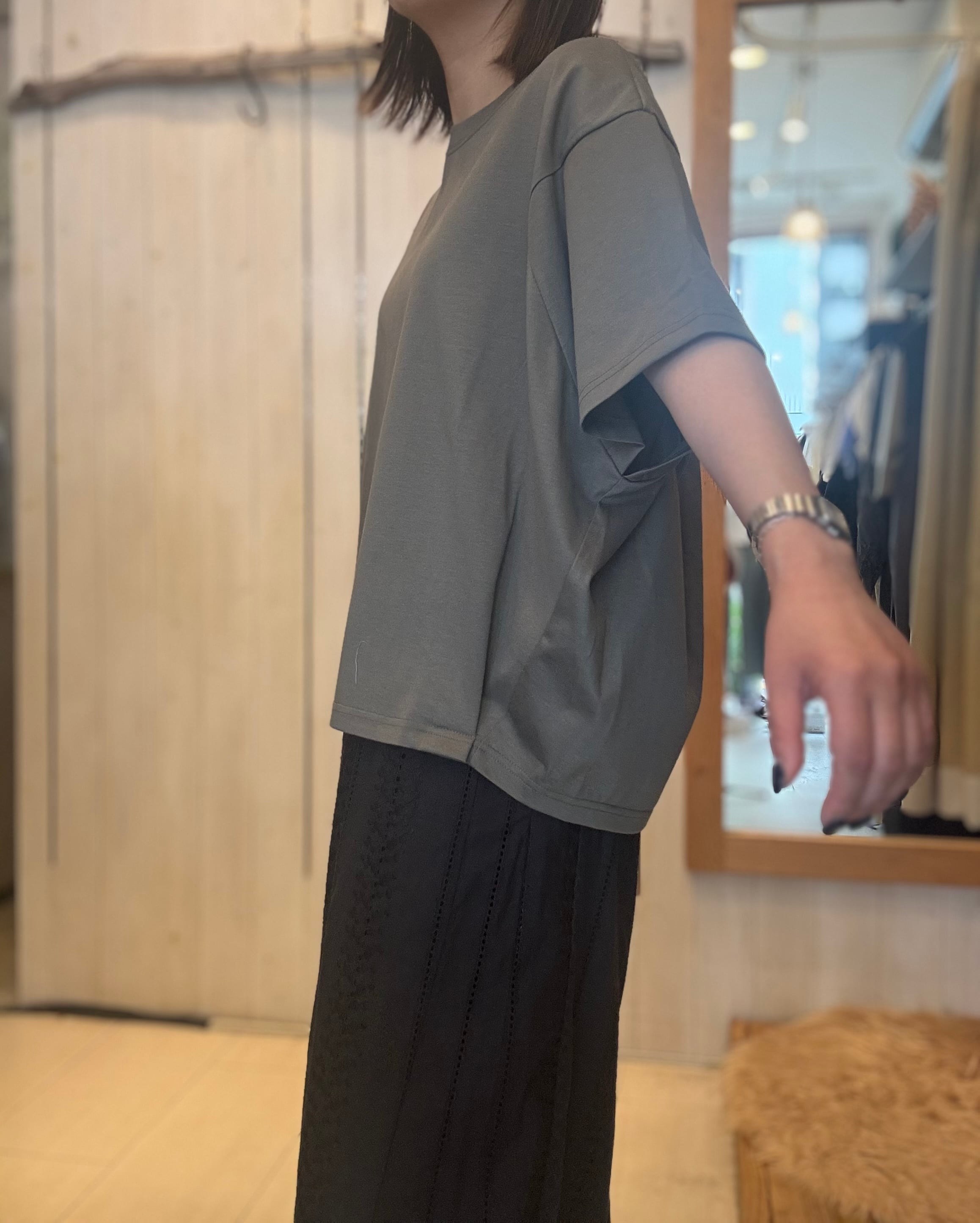 サイドとバックにタックが入ったドルマンシルエットのトップス。