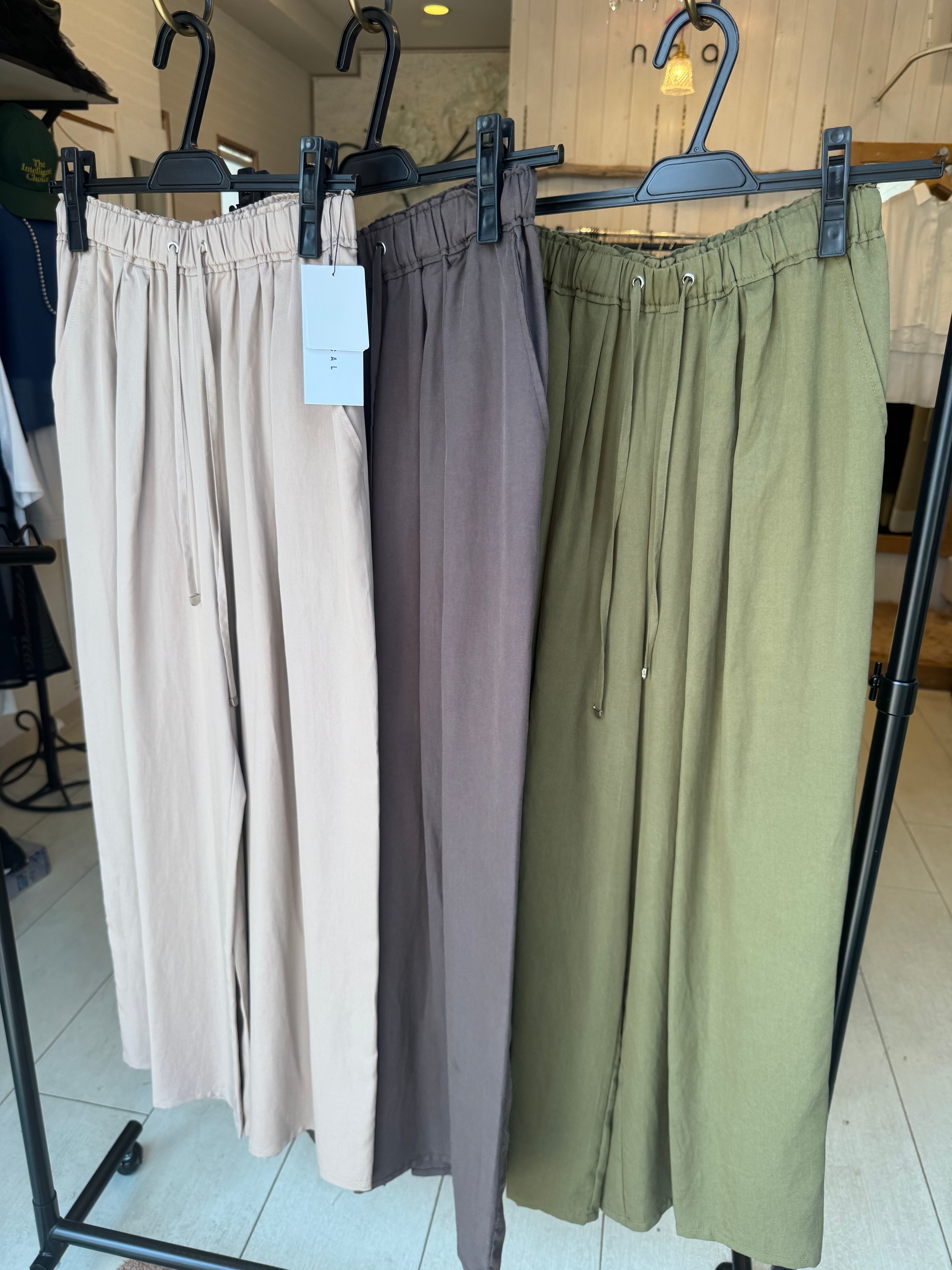 ナチュラルな落ち感と程よい光沢感のテンセルツイルのイージーパンツ。しなやかなドレープ◎