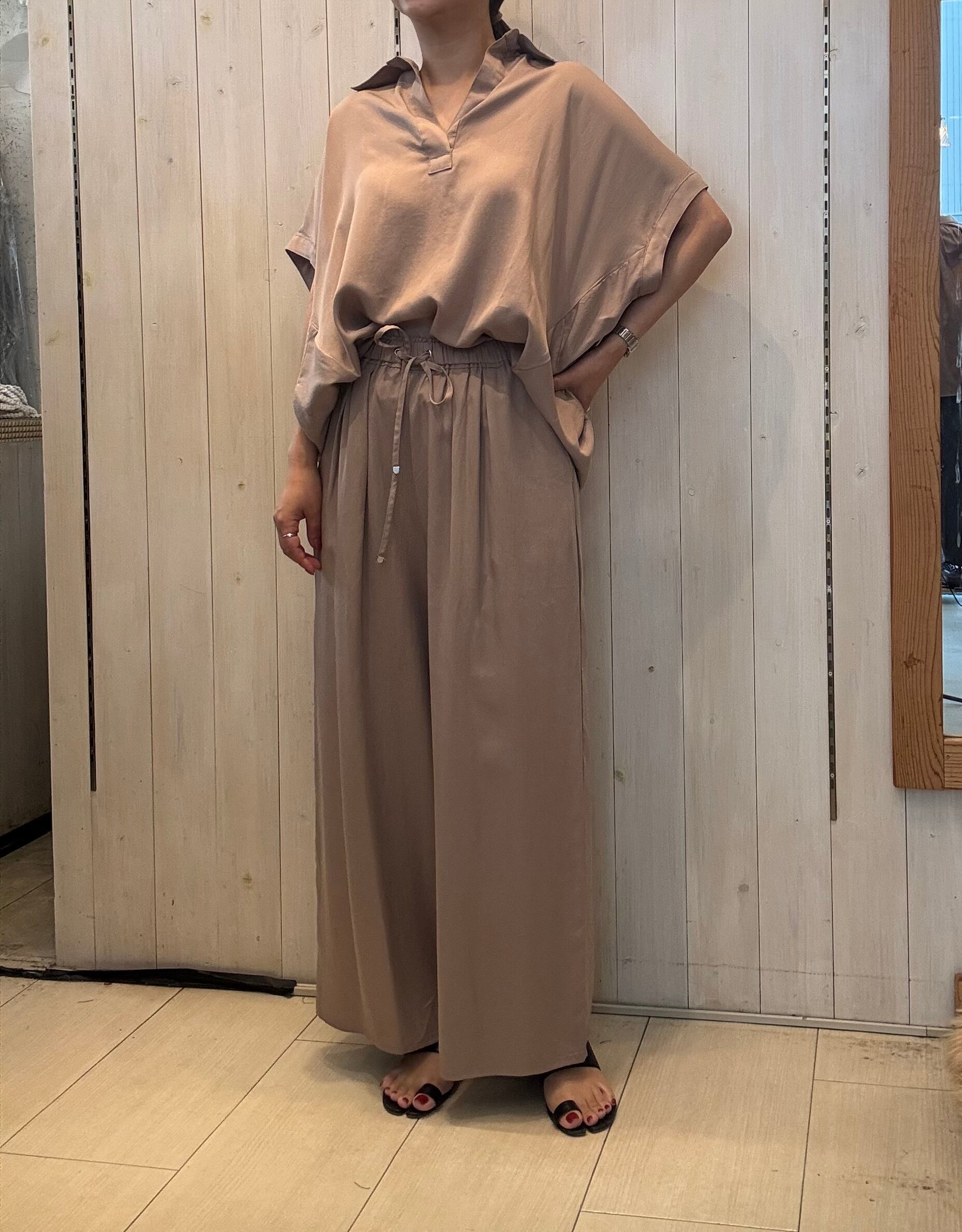 首元のスキッパーデザインは抜け感があり大人な雰囲気を醸し、ショートネックレスなどとも相性抜群。胸元が気になる方はインナーにシアーカットソーや深めのタンクを入れても可愛く仕上がります。