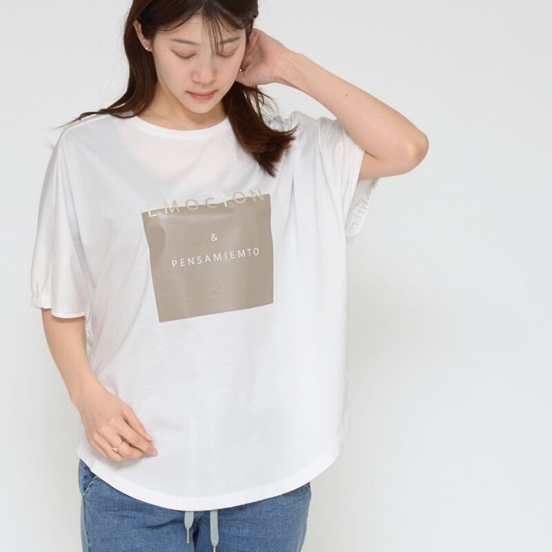 綿100%シルケット ボックス&ヒートカットロゴ ドルマンTシャツ