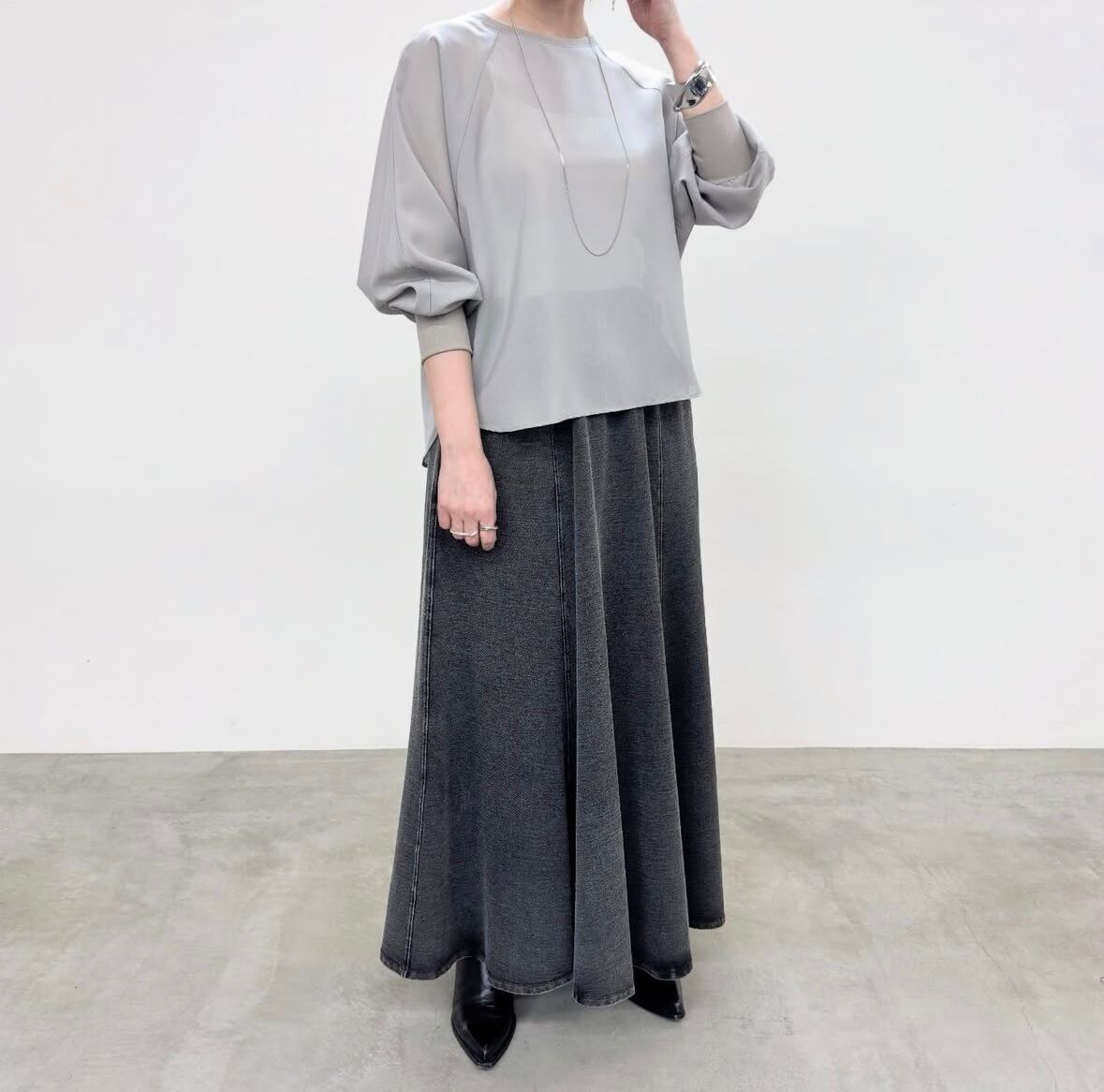 ゆったりしたサイズ感に身頃をスッキリ見せてくれるラグランスリーブ。