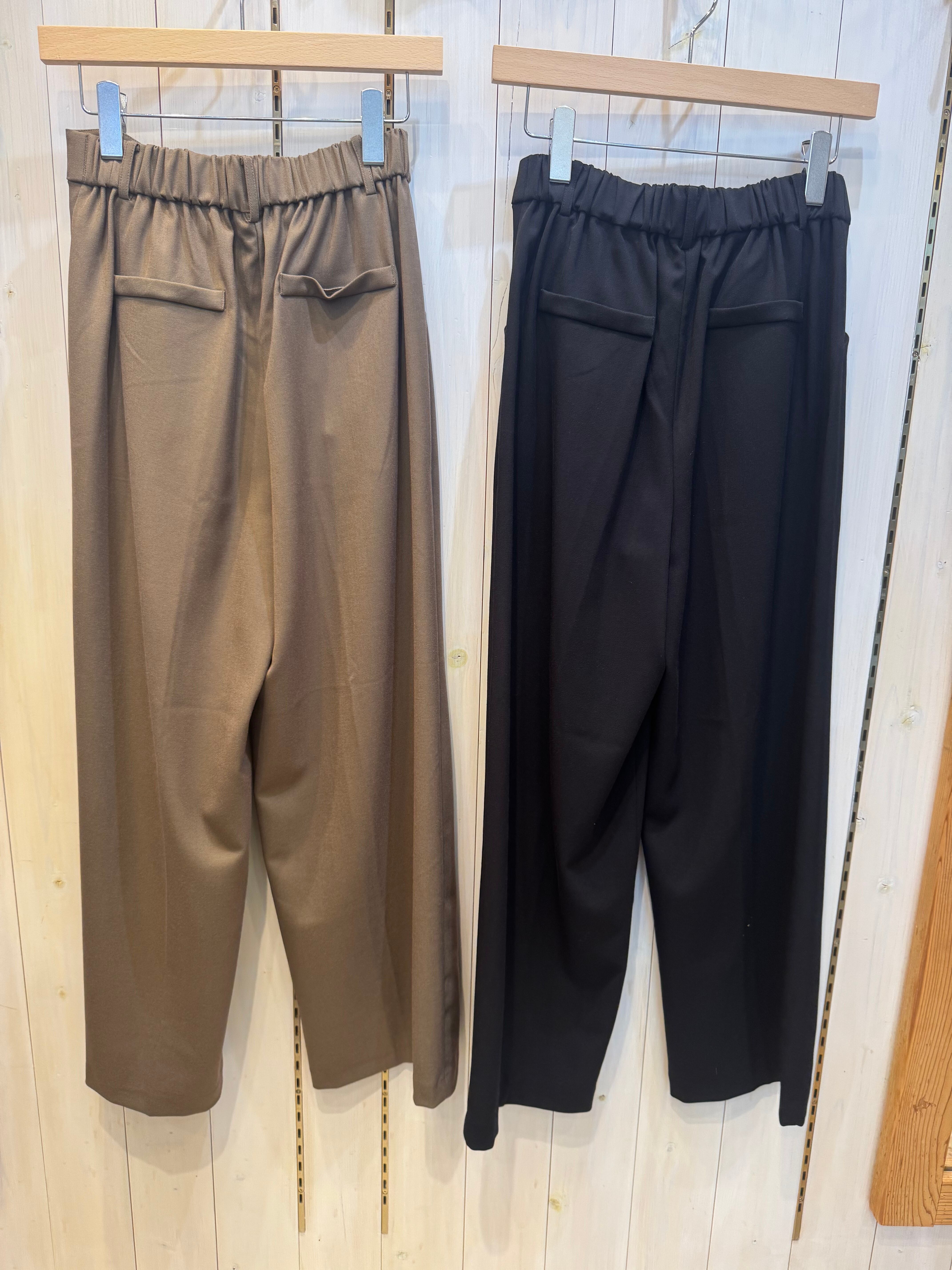 フロントのタックデザインがウエスト周りをすっきりと見せ、脚のラインを美しく演出します。