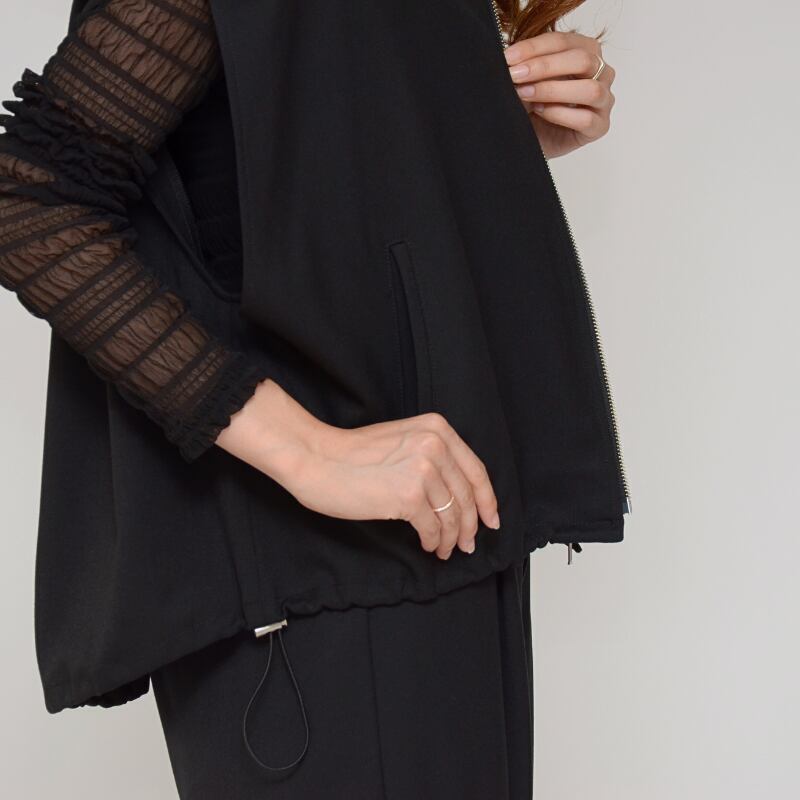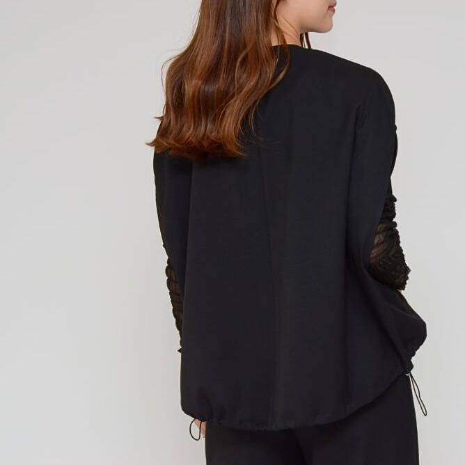 裾はゴムとドロストデザインで、シルエットの変化を楽しめるのもポイントです。