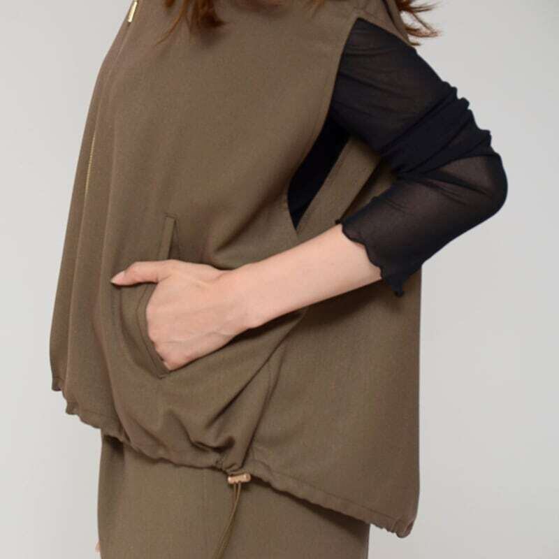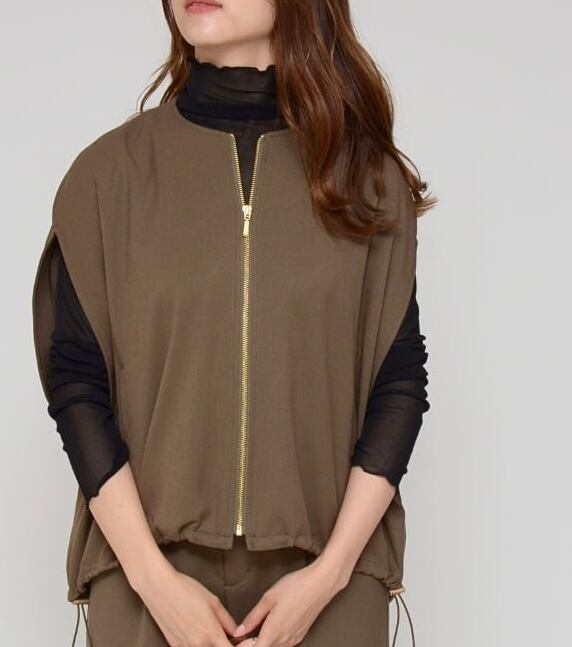 いつものトップスに重ねるだけで、ぐっとこなれたスタイルが完成するポンチョ風ベストが登場。