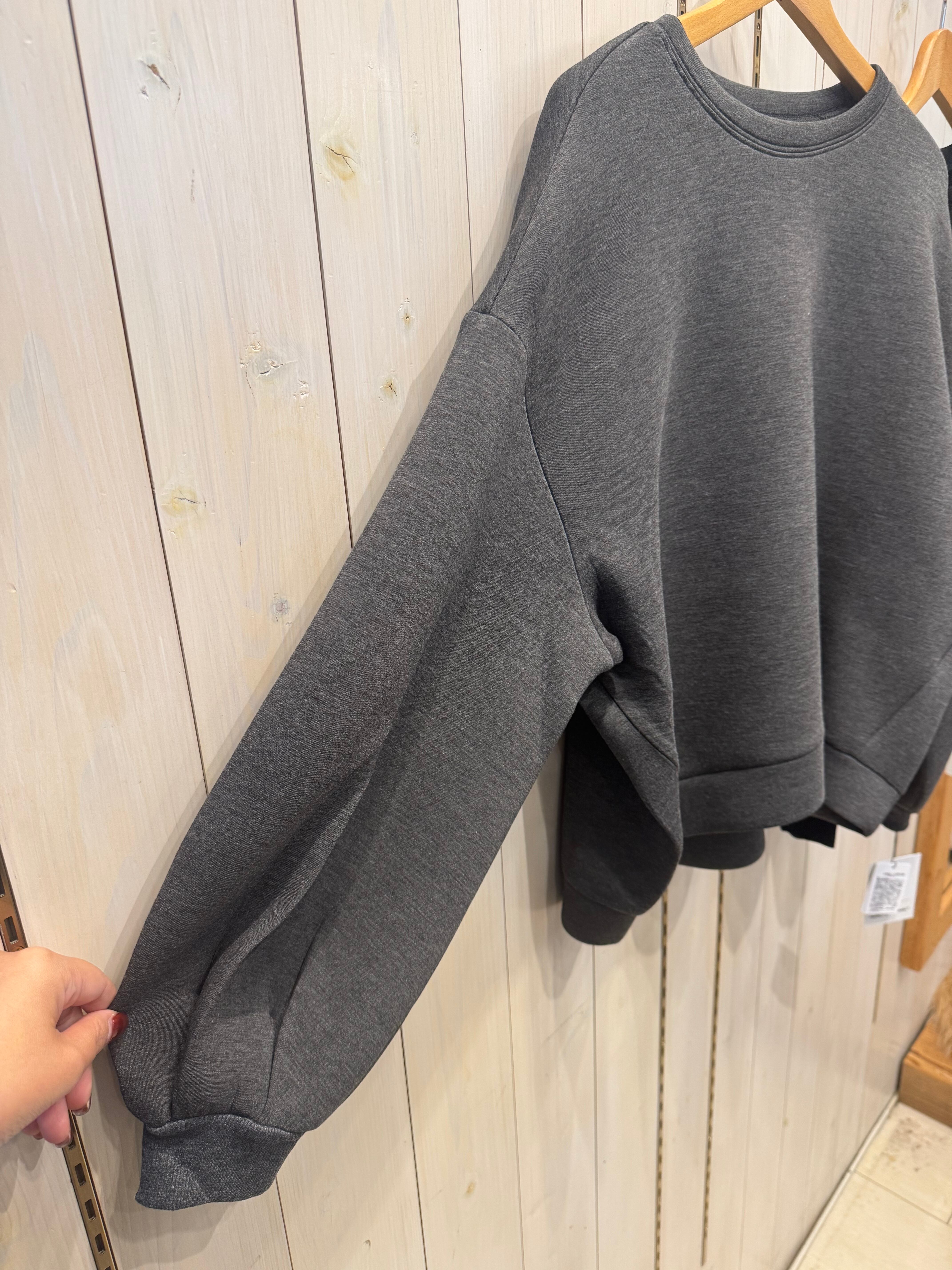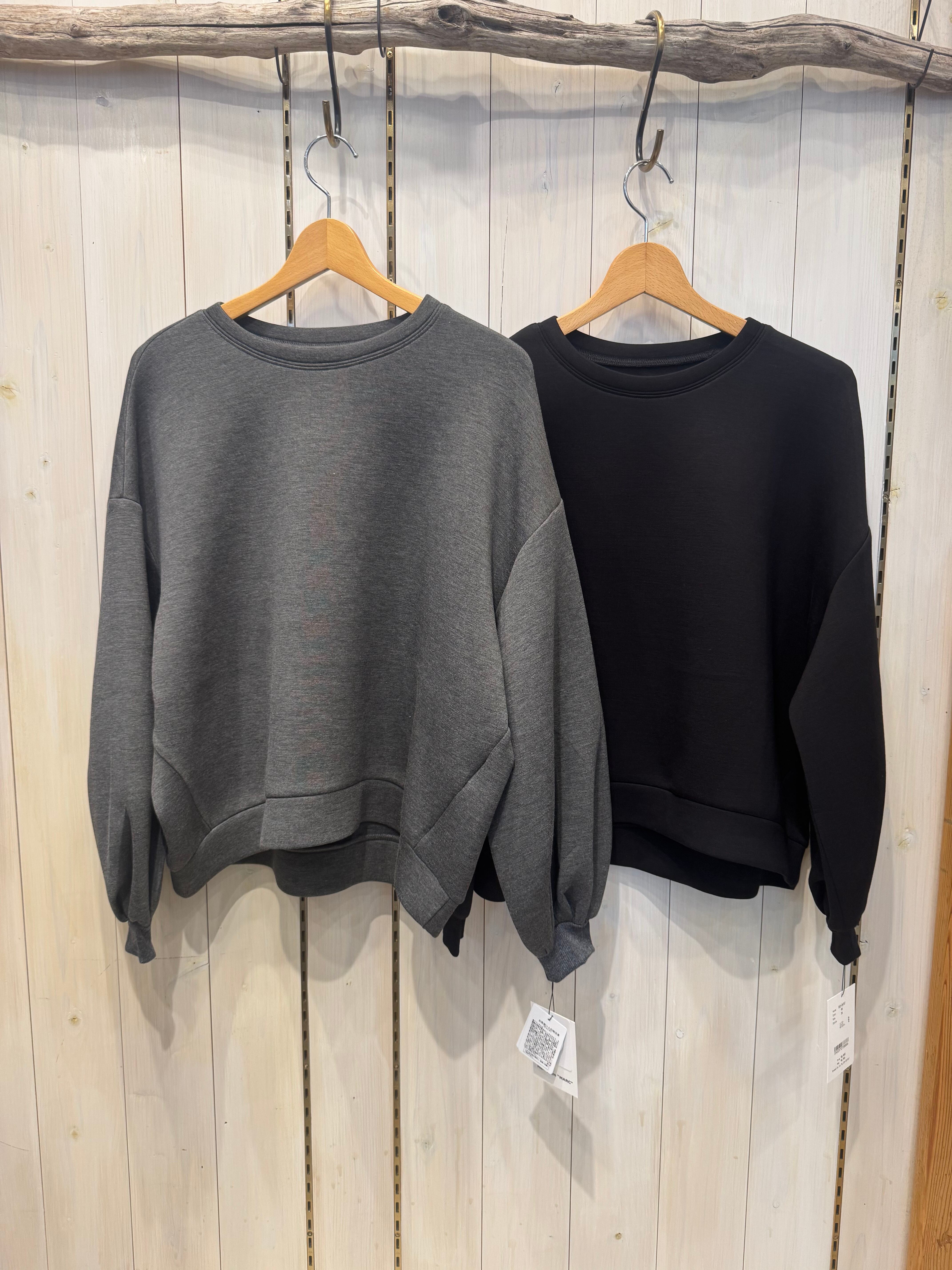 滑らかな触り心地のいい素材の綺麗目スウェットトップス。