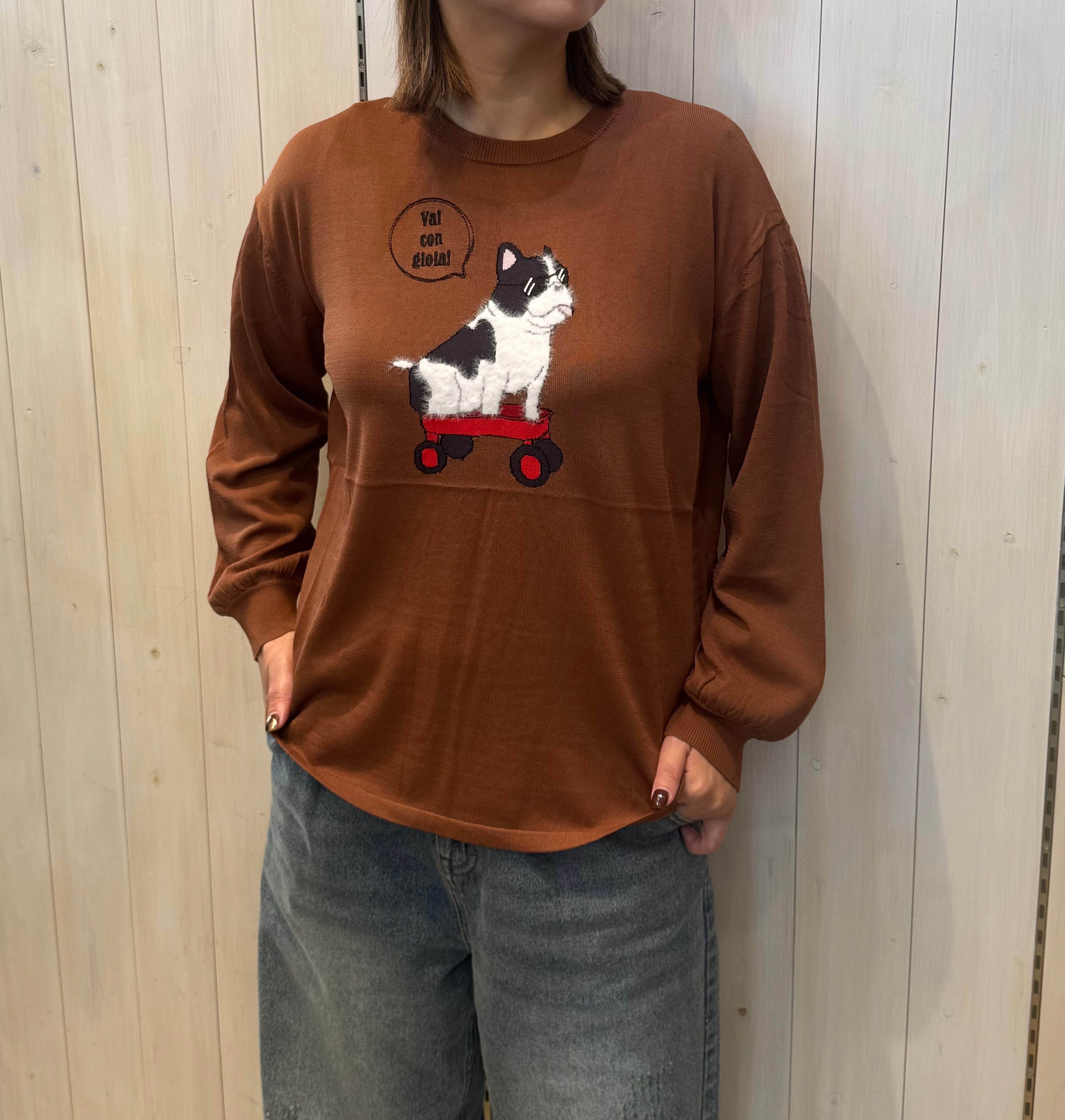 遊び心たっぷりのニットで身頃はシャリ感とシアー感のある素材なので初秋には1枚で冬にもインナーを着て着回せるアイテムです。