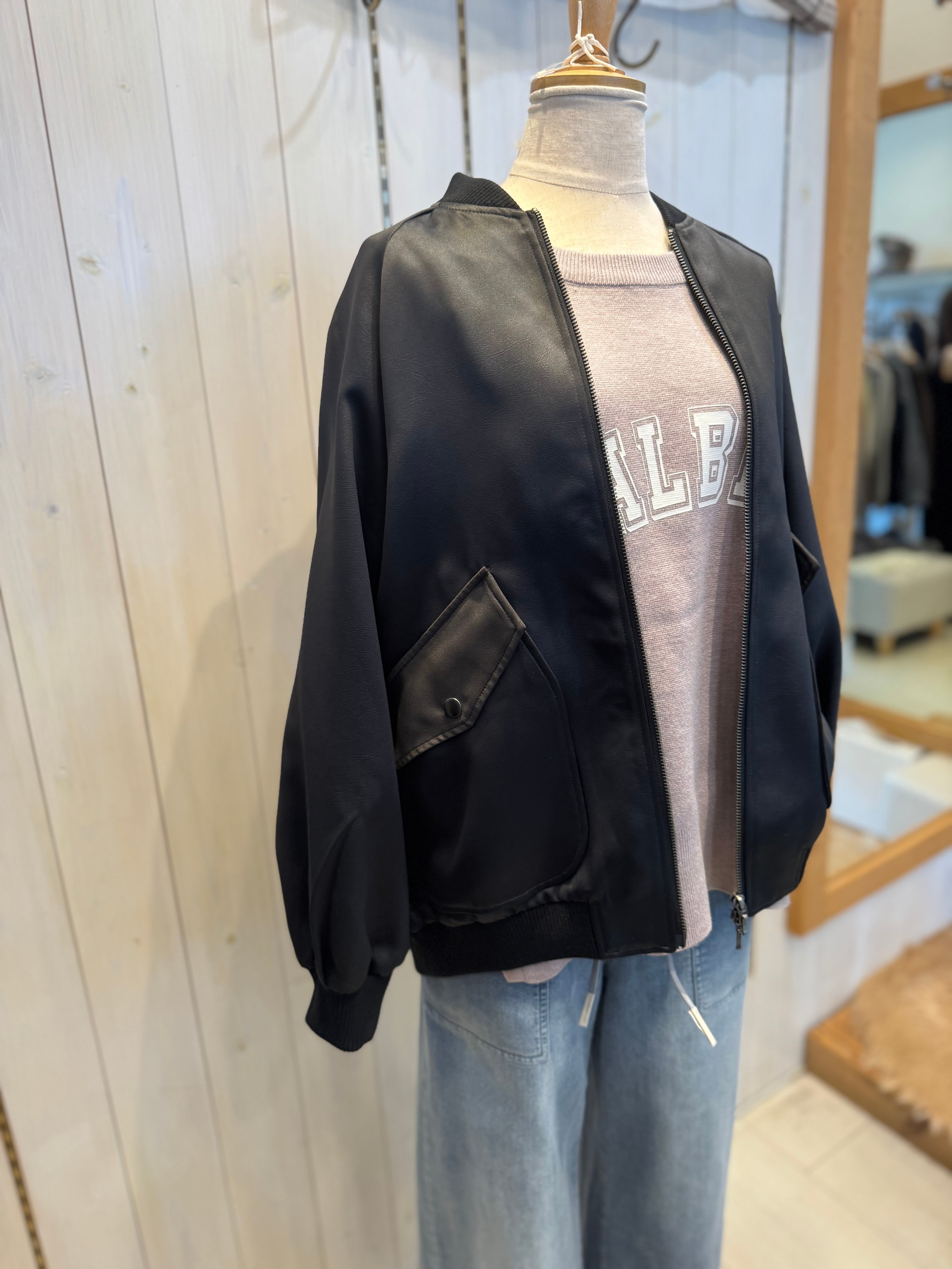 【QTUME】エコレザーオーバーサイズブルゾン