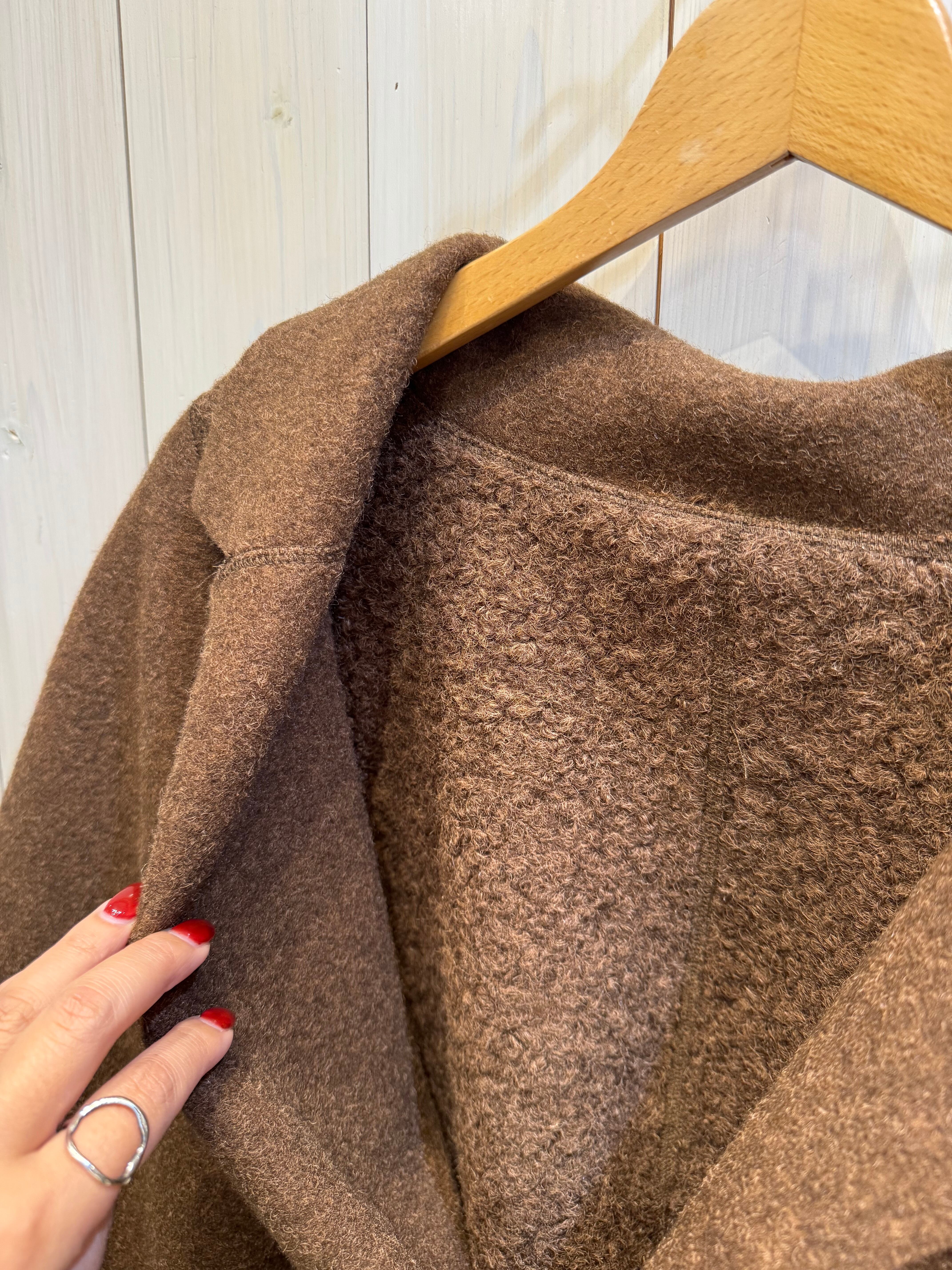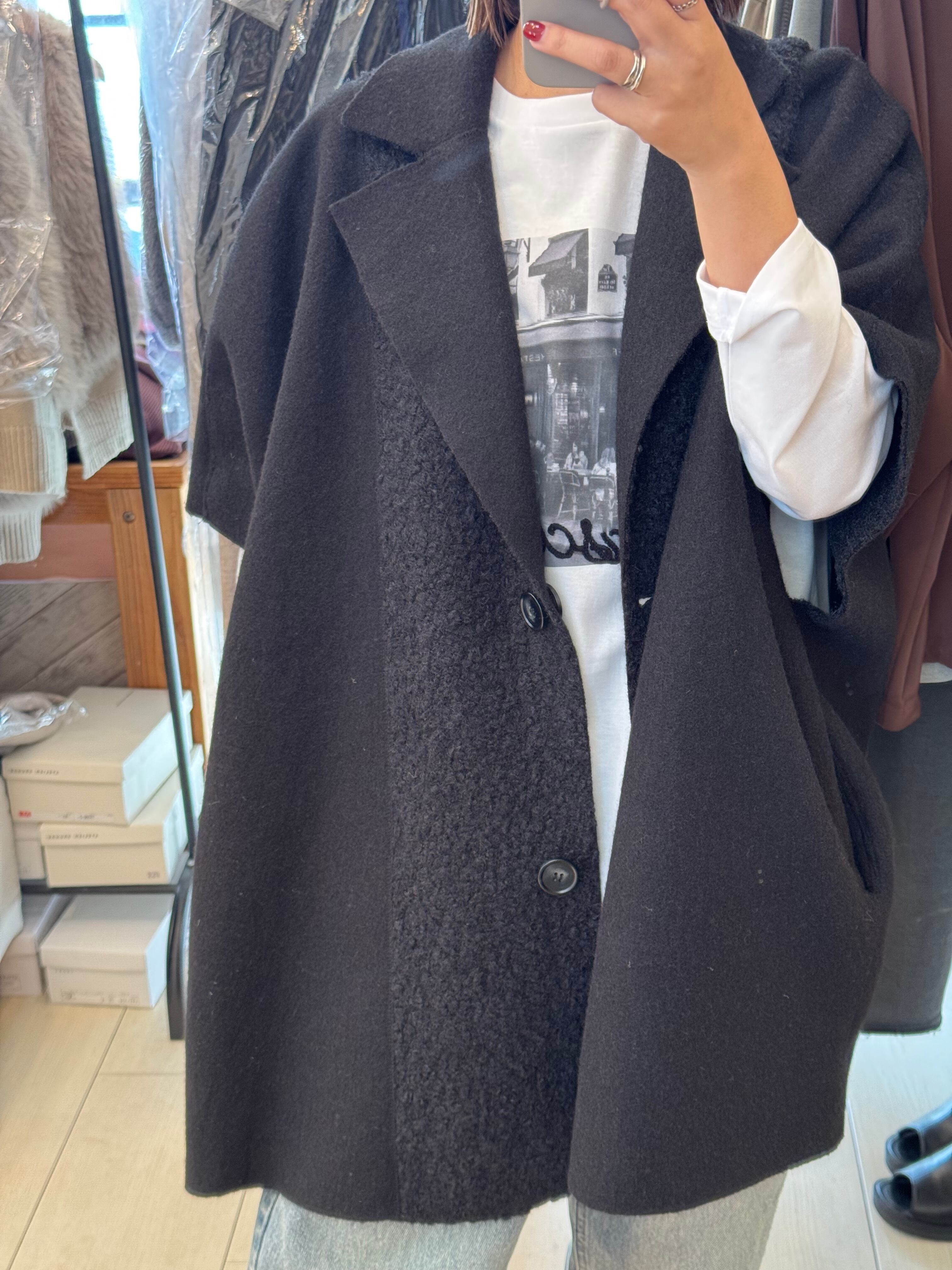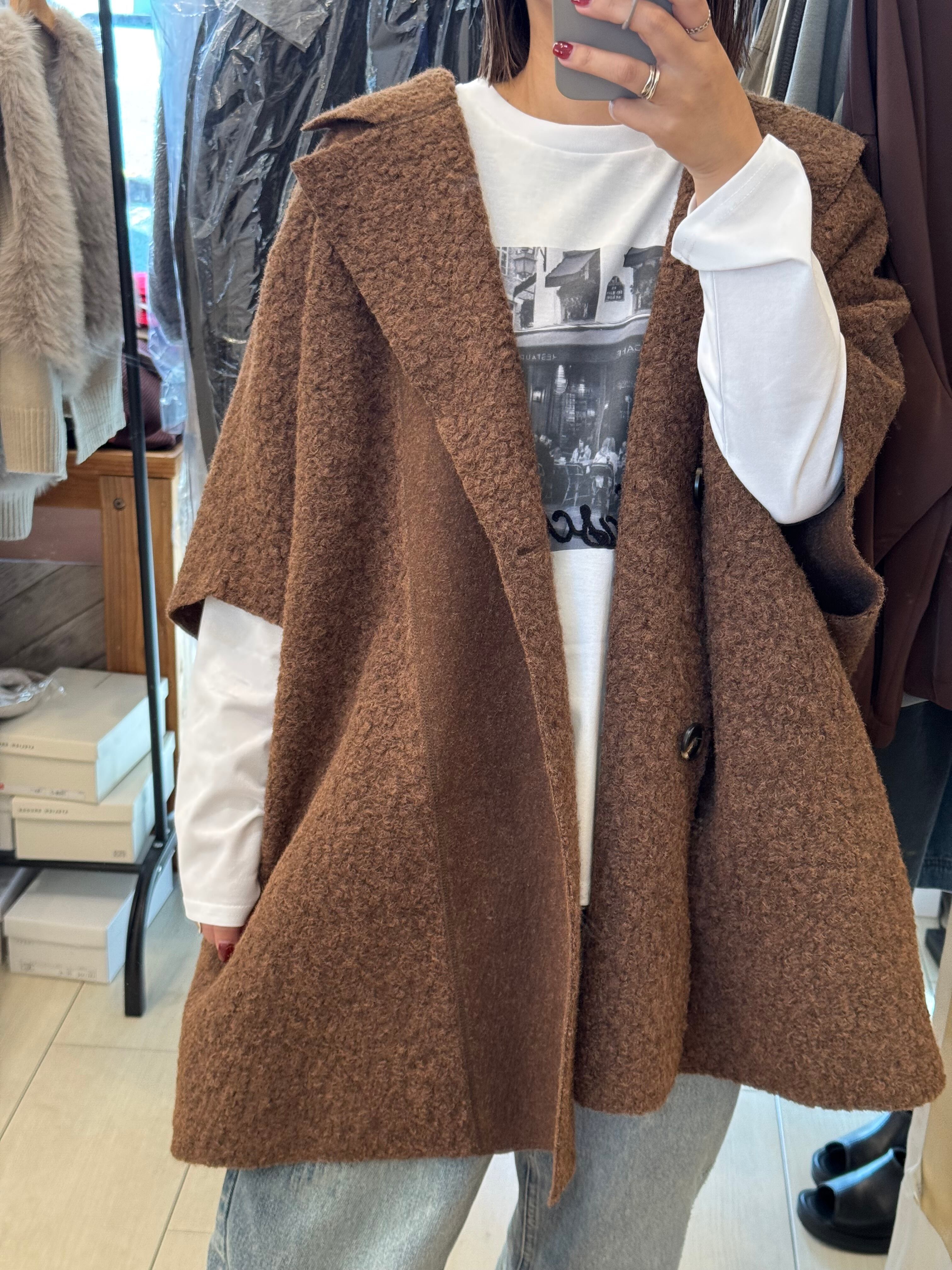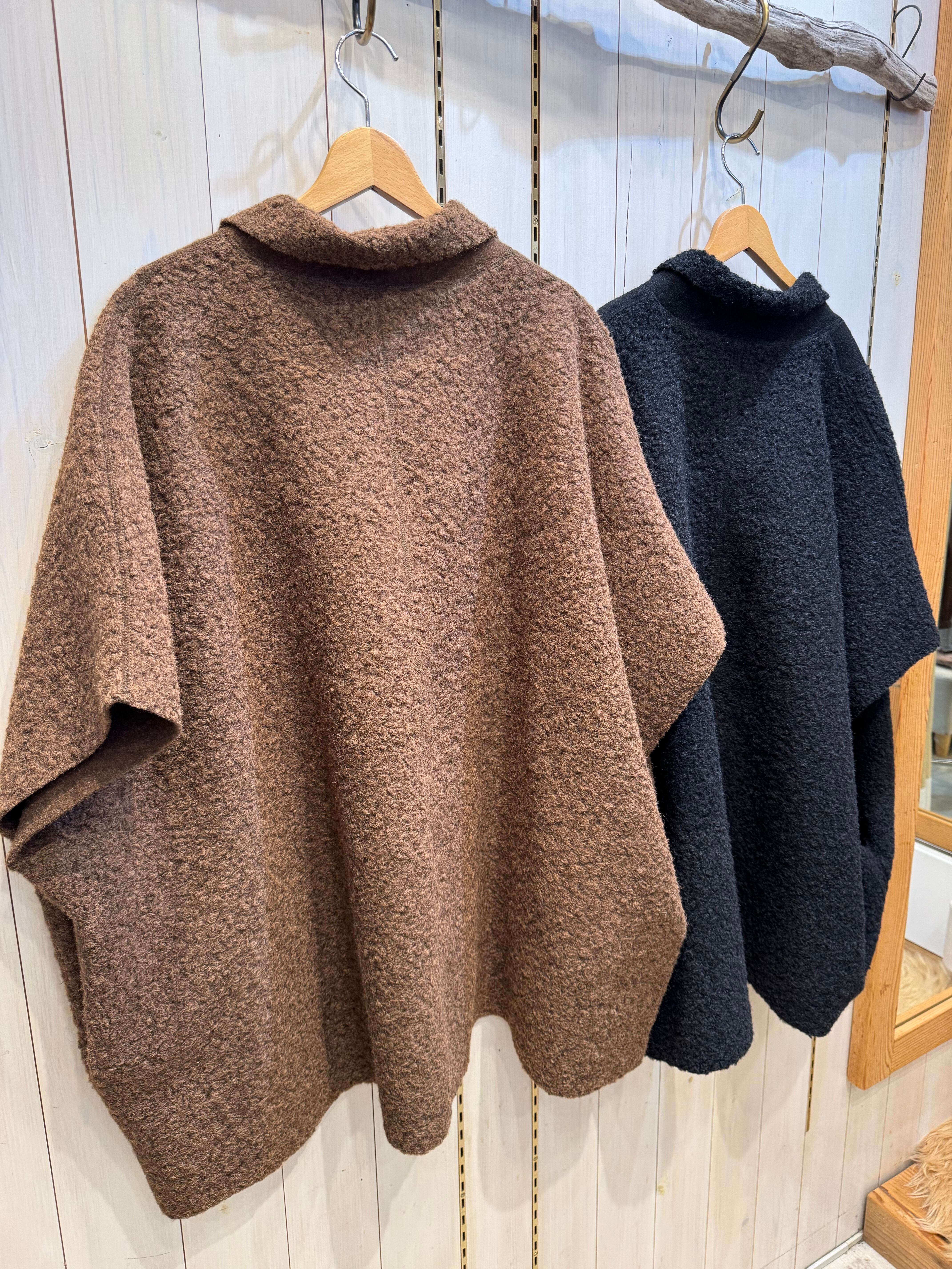 ボアとメルトン生地が表裏でリバーシブルで着れるポンチョ型コート。
