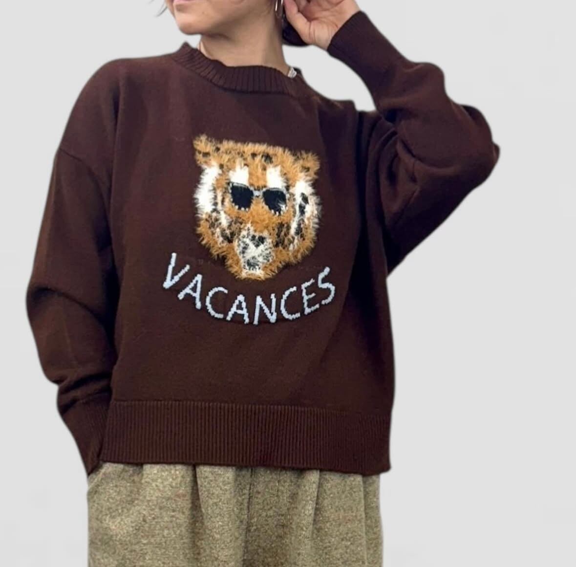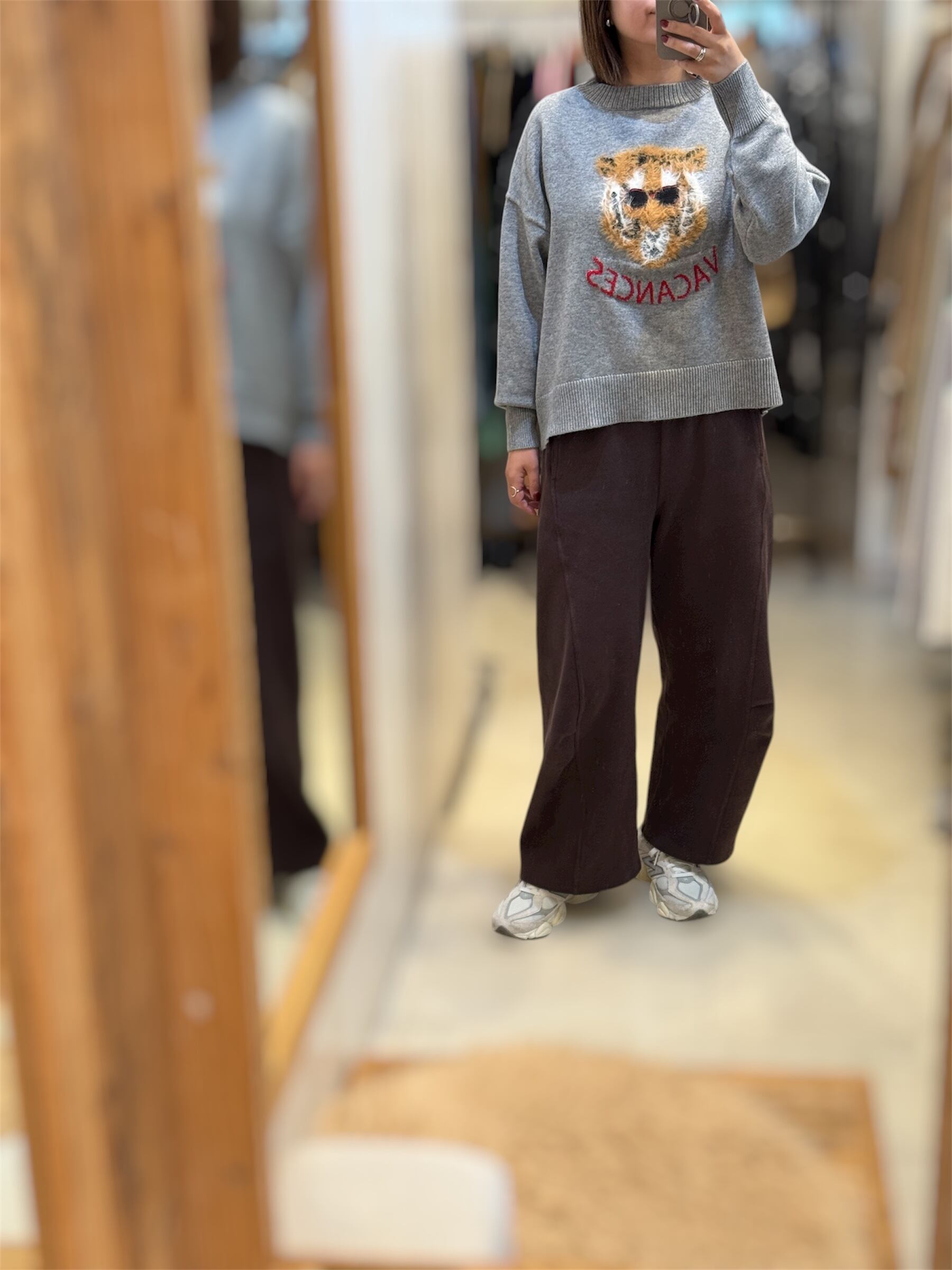 ファー素材の部分ジャガードでタイガーを表現したキャッチーニットトップス。