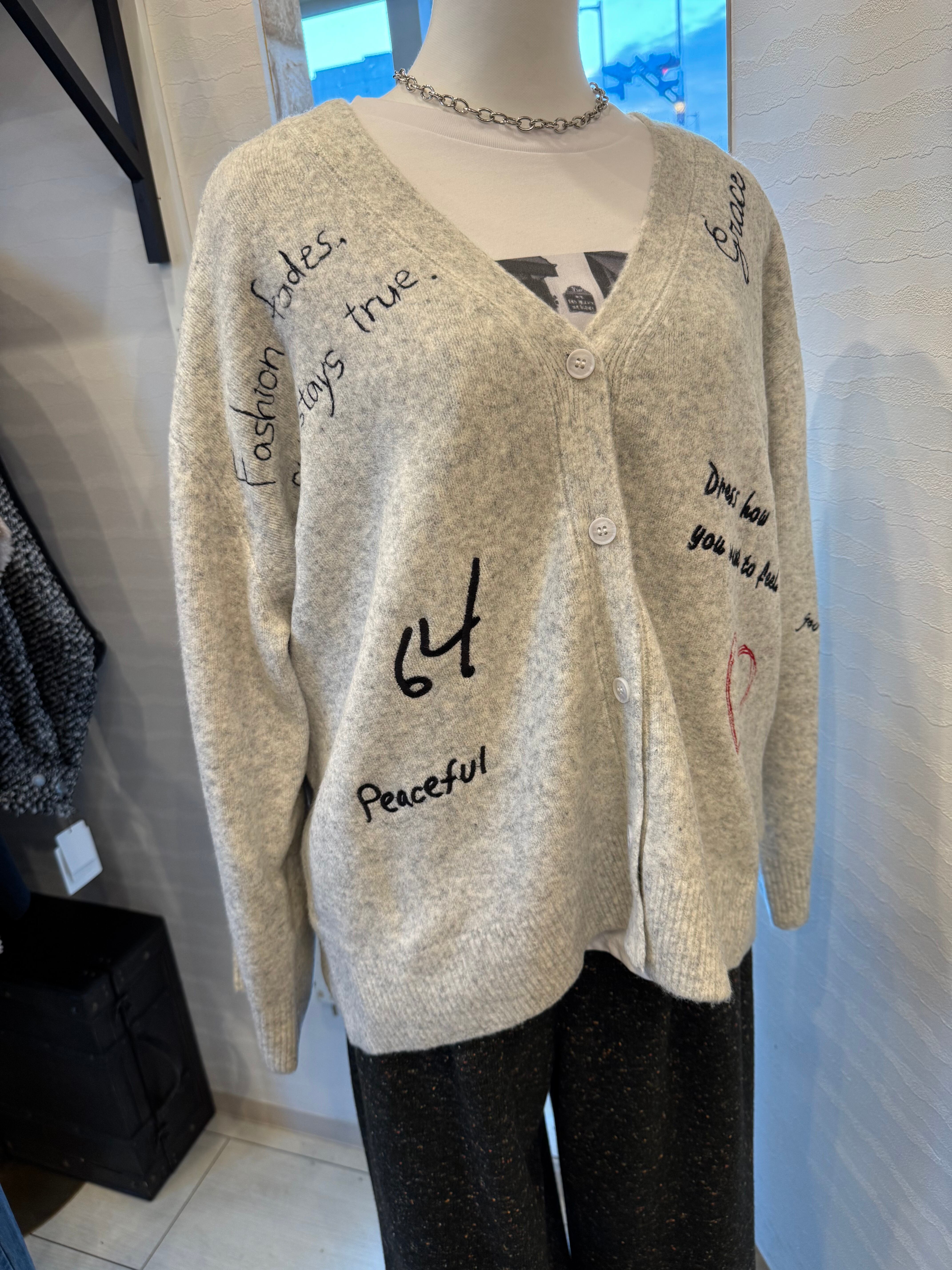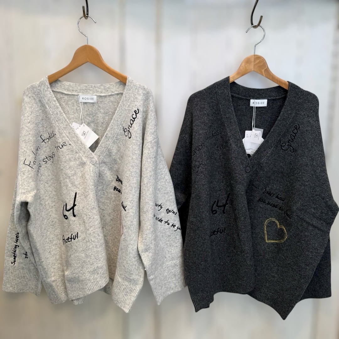 【ROSIEE】レタリング刺繍ニットカーディガン
