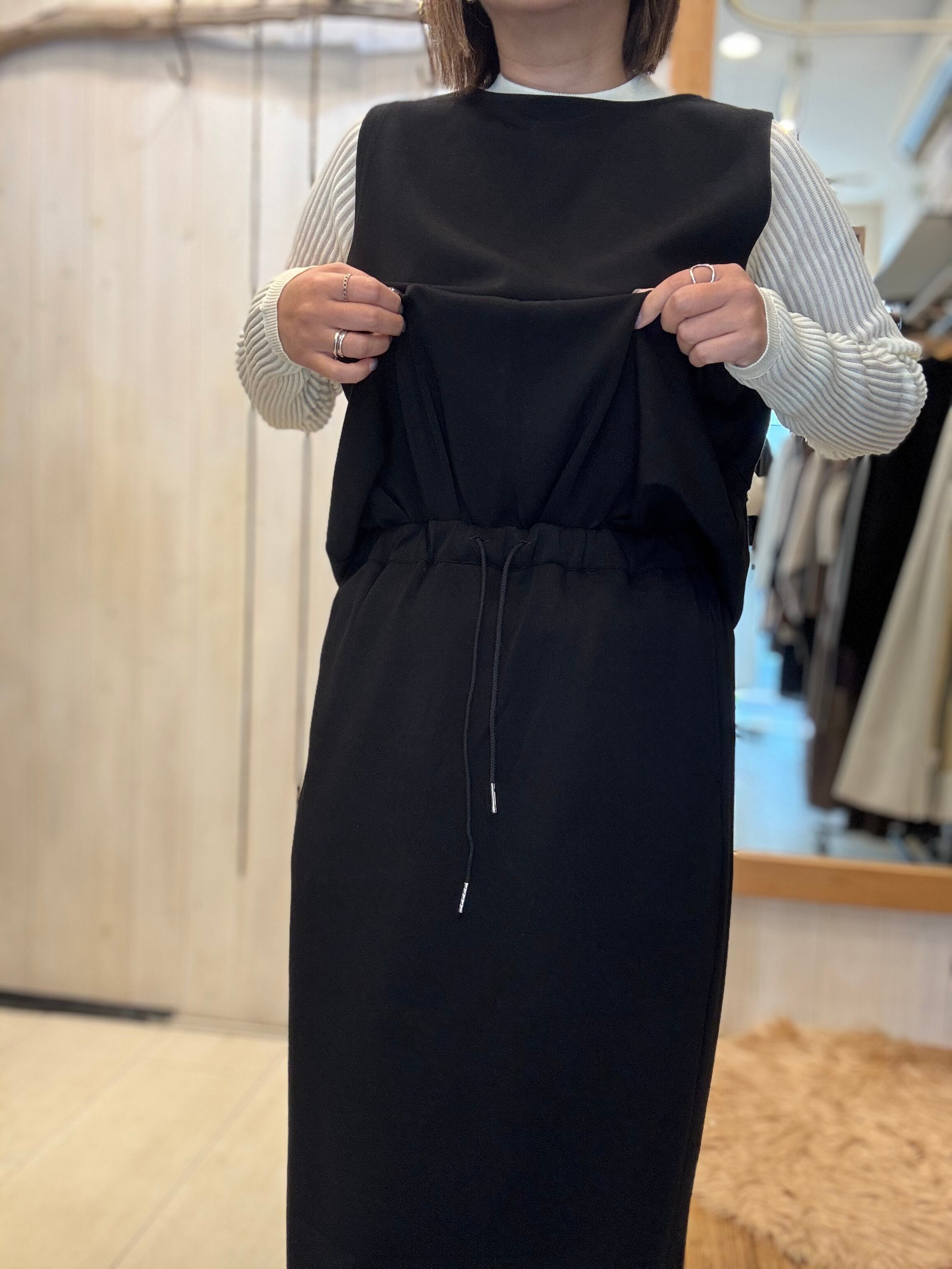 ウエストをゴムで絞ったワンピースは、ブラウジングスタイルが綺麗にキマるワザありデザイン。