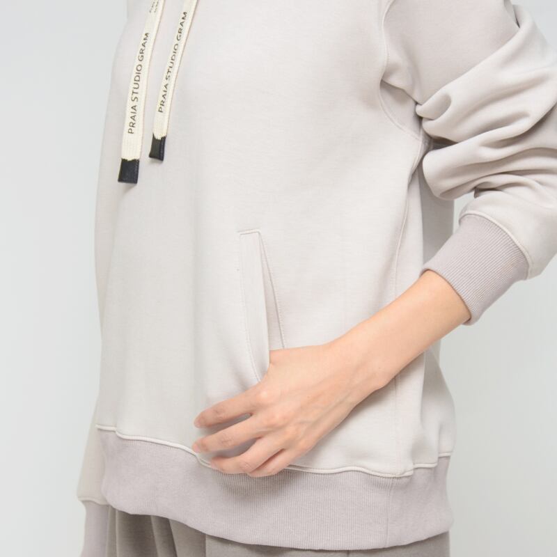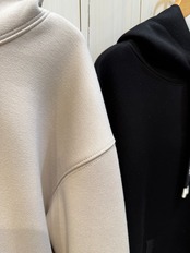 暖かくて柔らかな生地が作り出す立体的なフード。