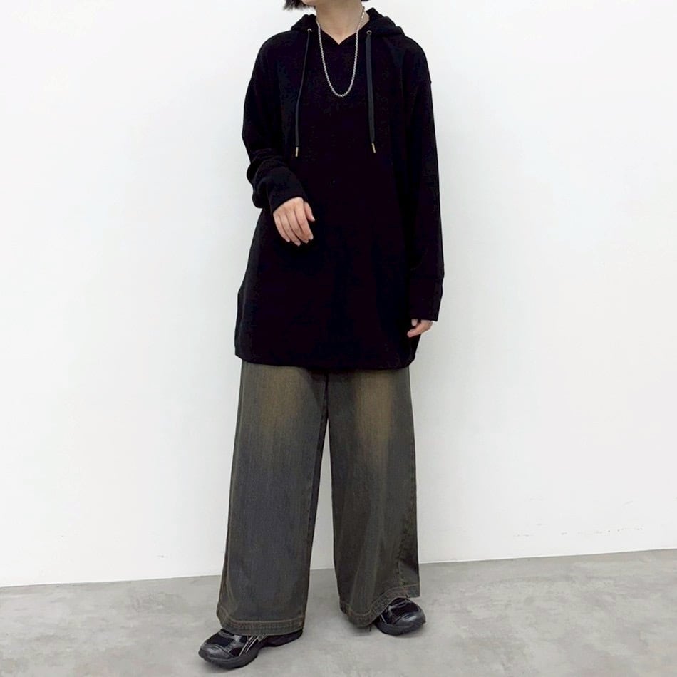 ゆとりのある身幅で抜け感が漂うプルオーバー。おしりの隠れる着丈で体験カバーも。