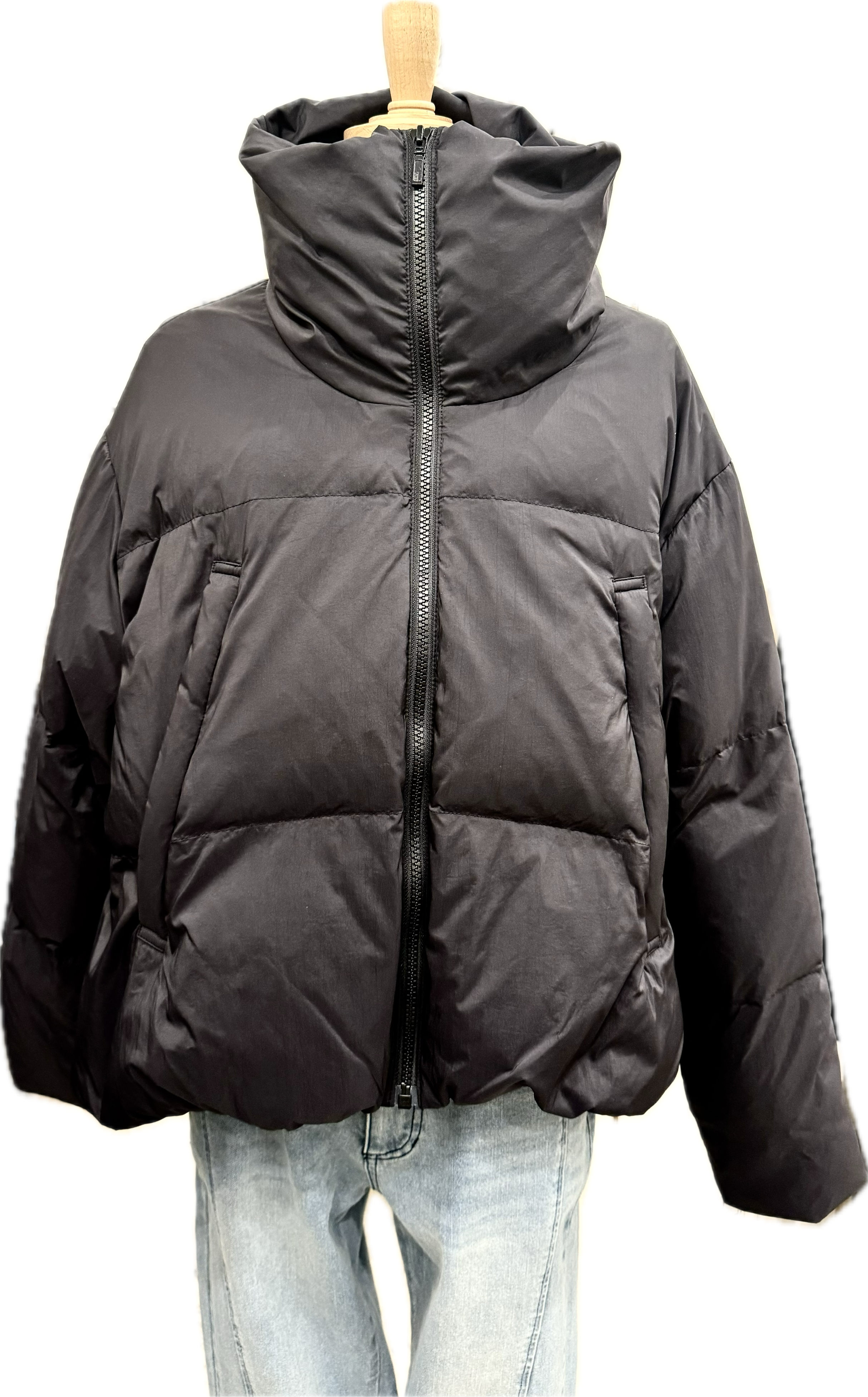 前後で着丈差のある裾が丸みを帯びた女性らしいシルエットのショート丈ダウンコート