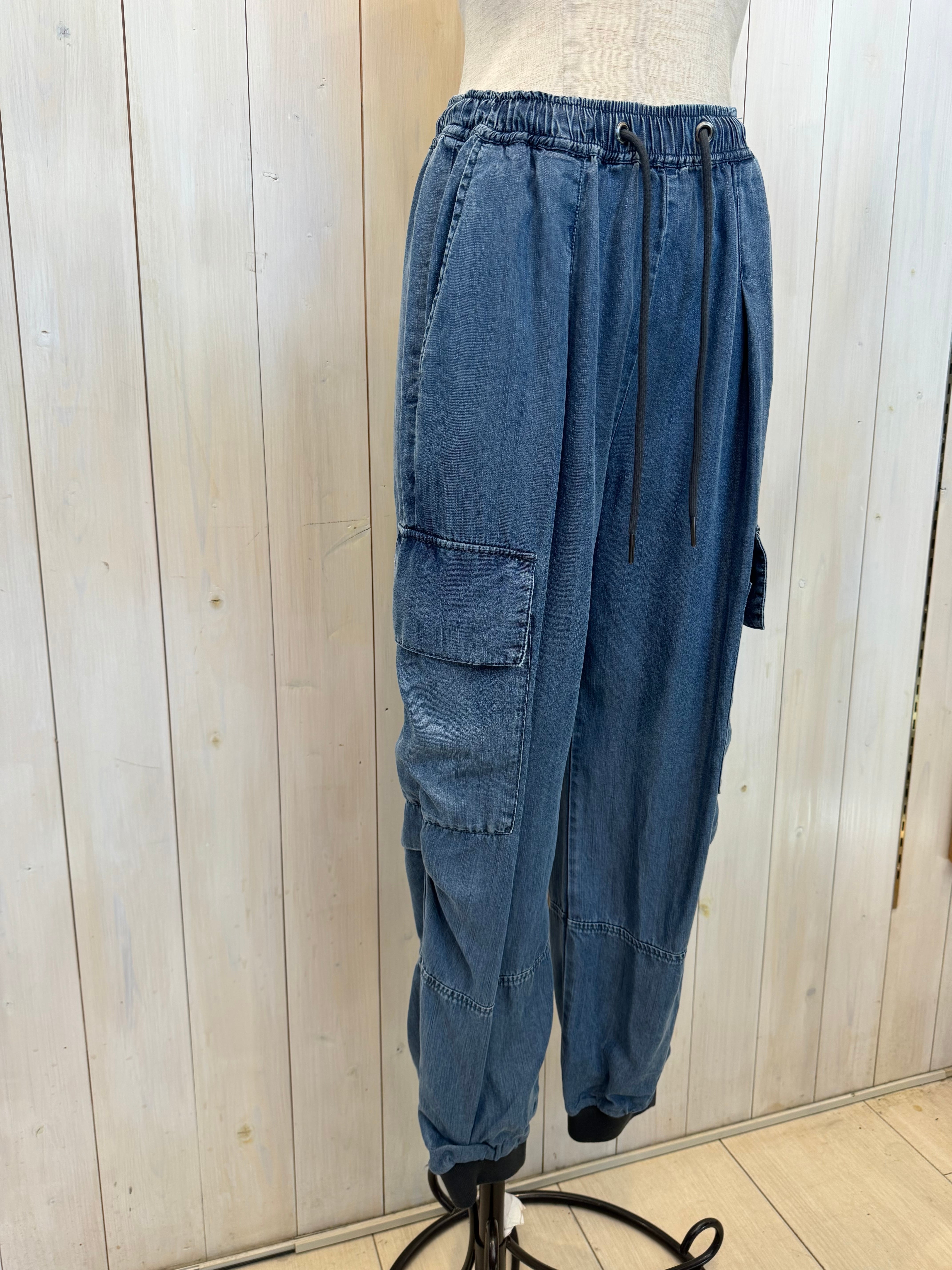 ウエスト総ゴムストレスフリーのテンセルデニムのジョガーパンツ