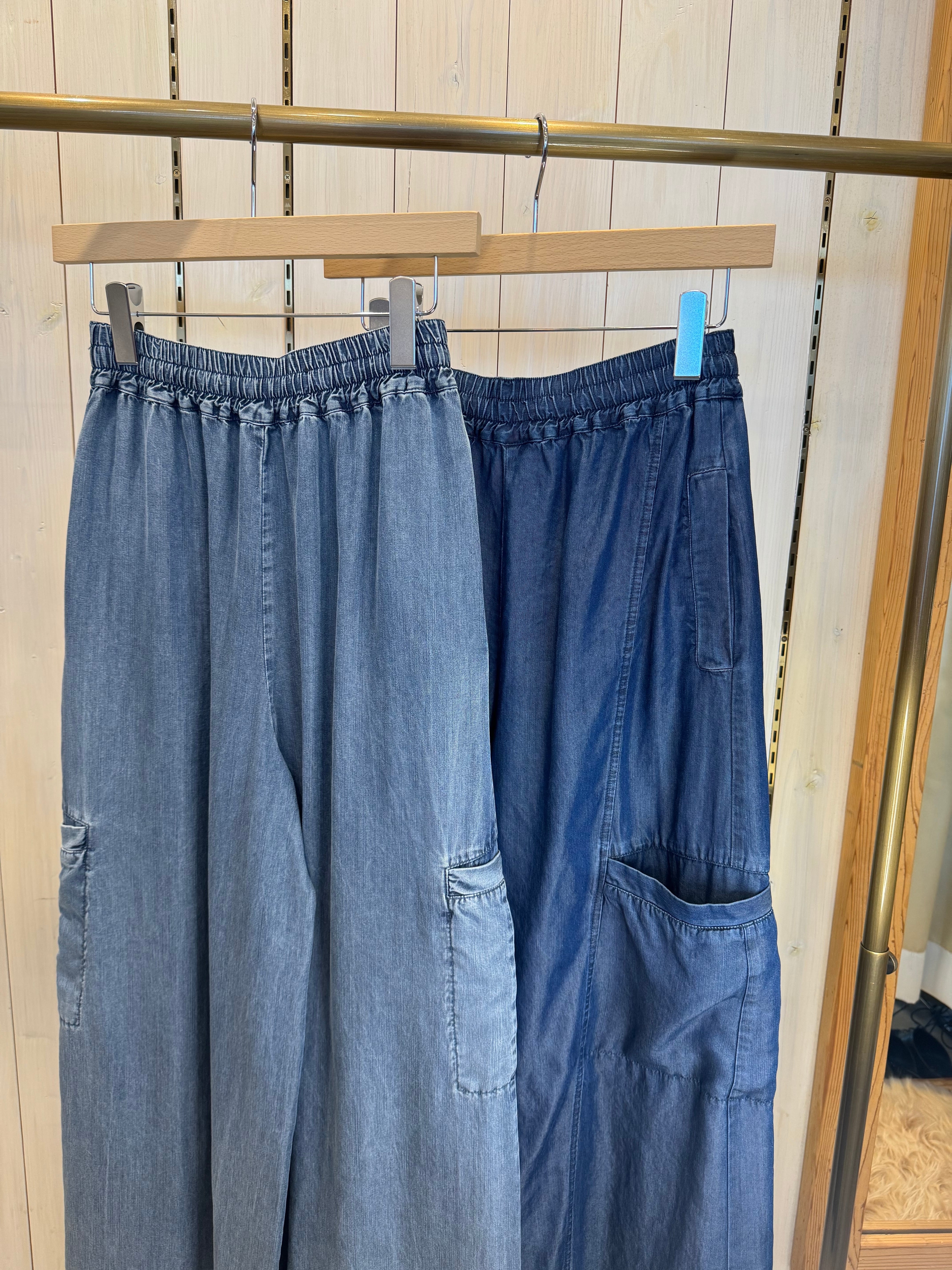 スカート見えもするゆったりサイズのテンセルデニムのワイドパンツ