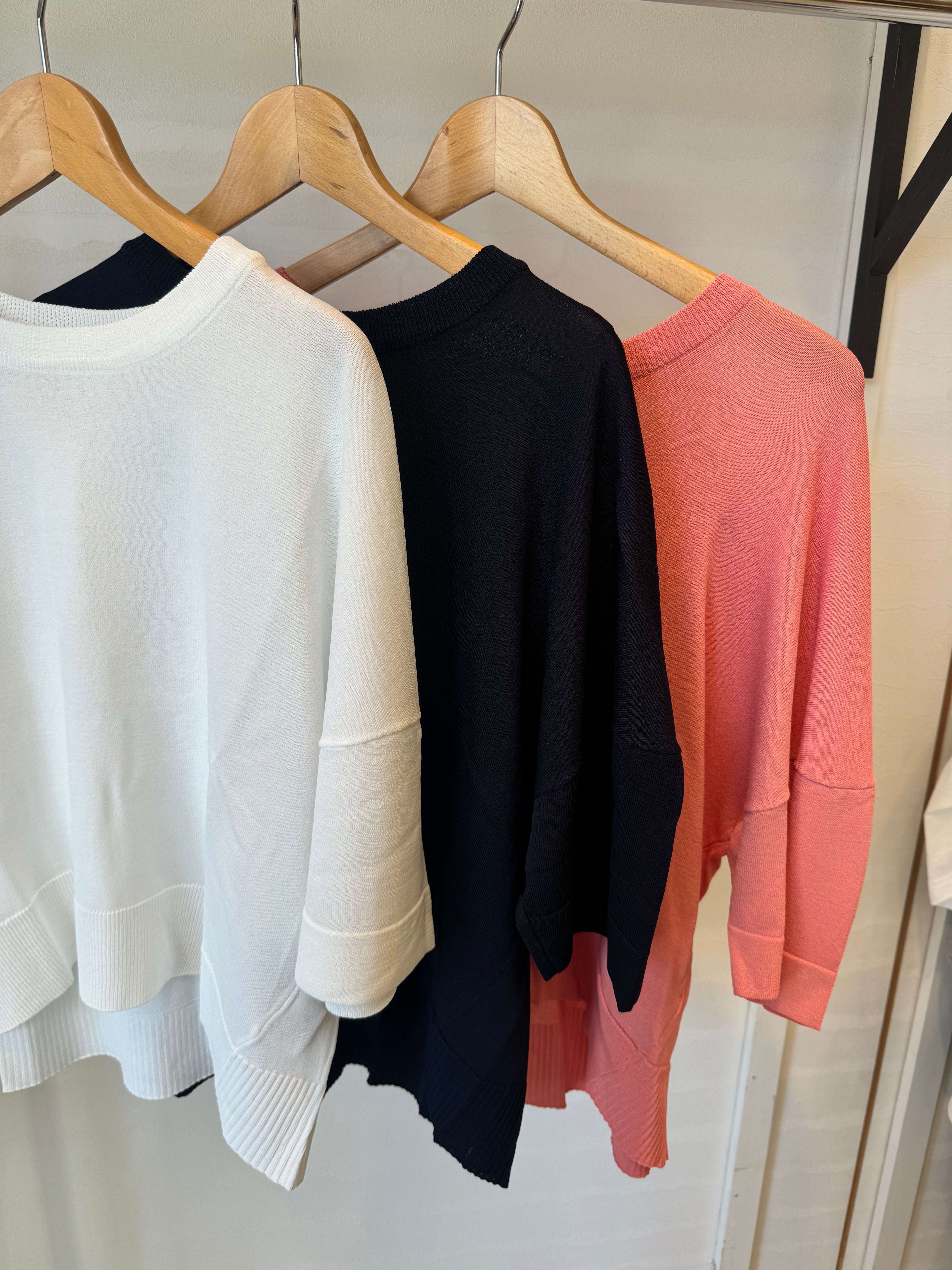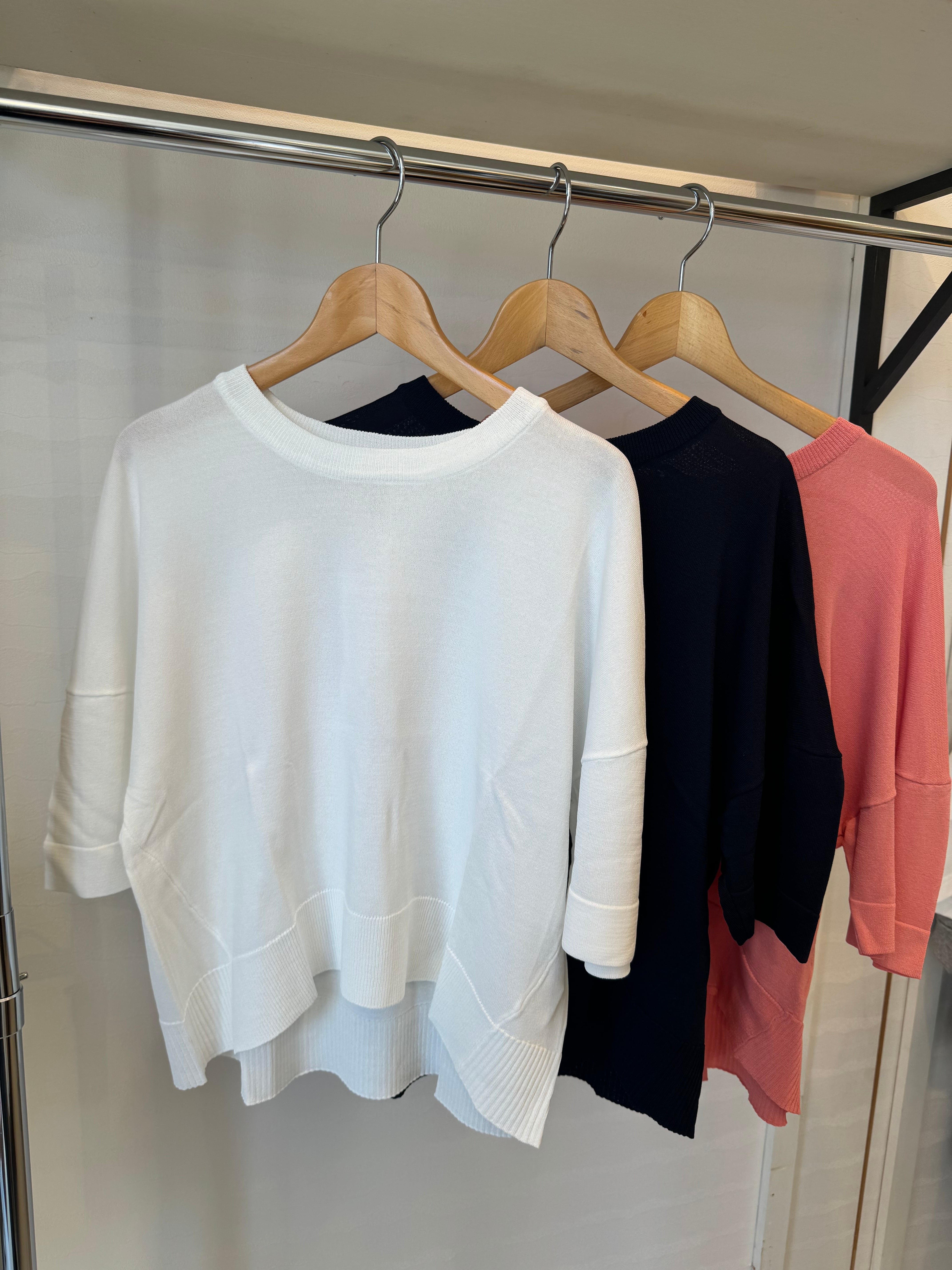 サラッとしたレーヨンの5分袖丈のニット。