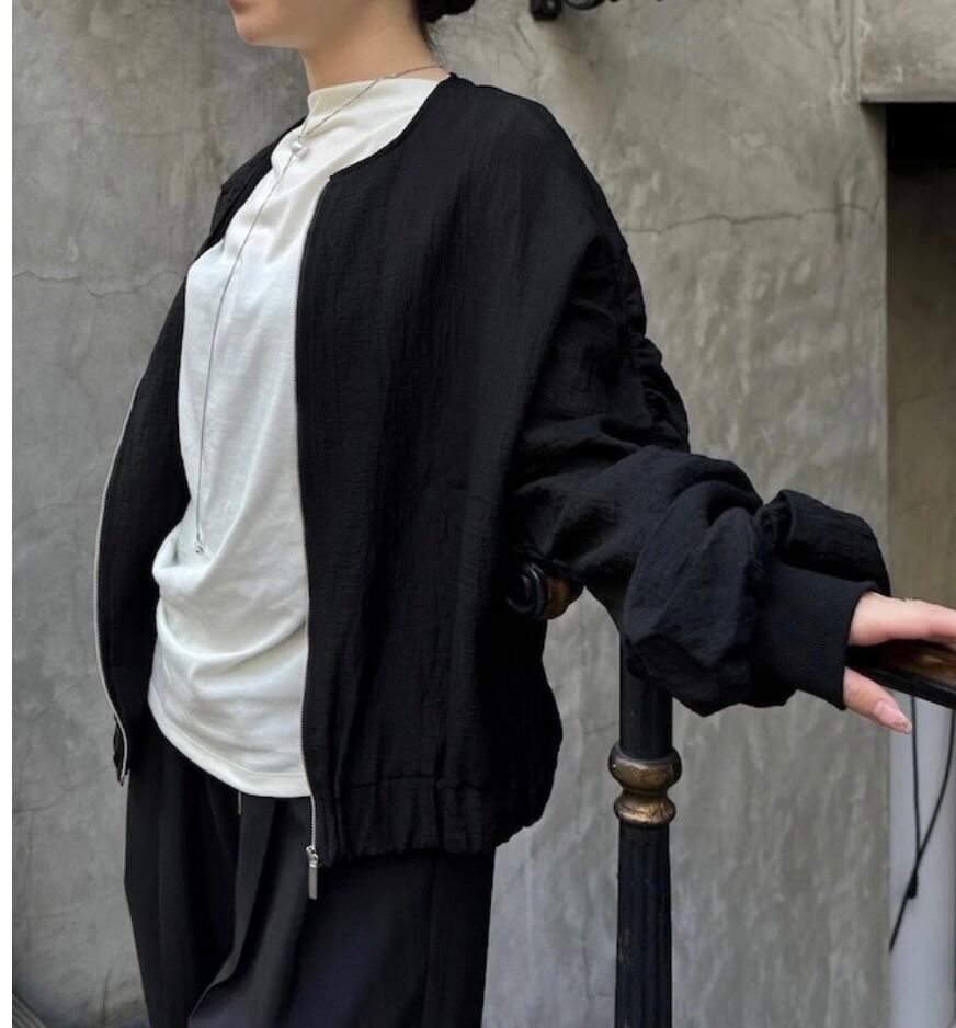 袖元のシャーリングゴムがポイントのシアーブルゾン。