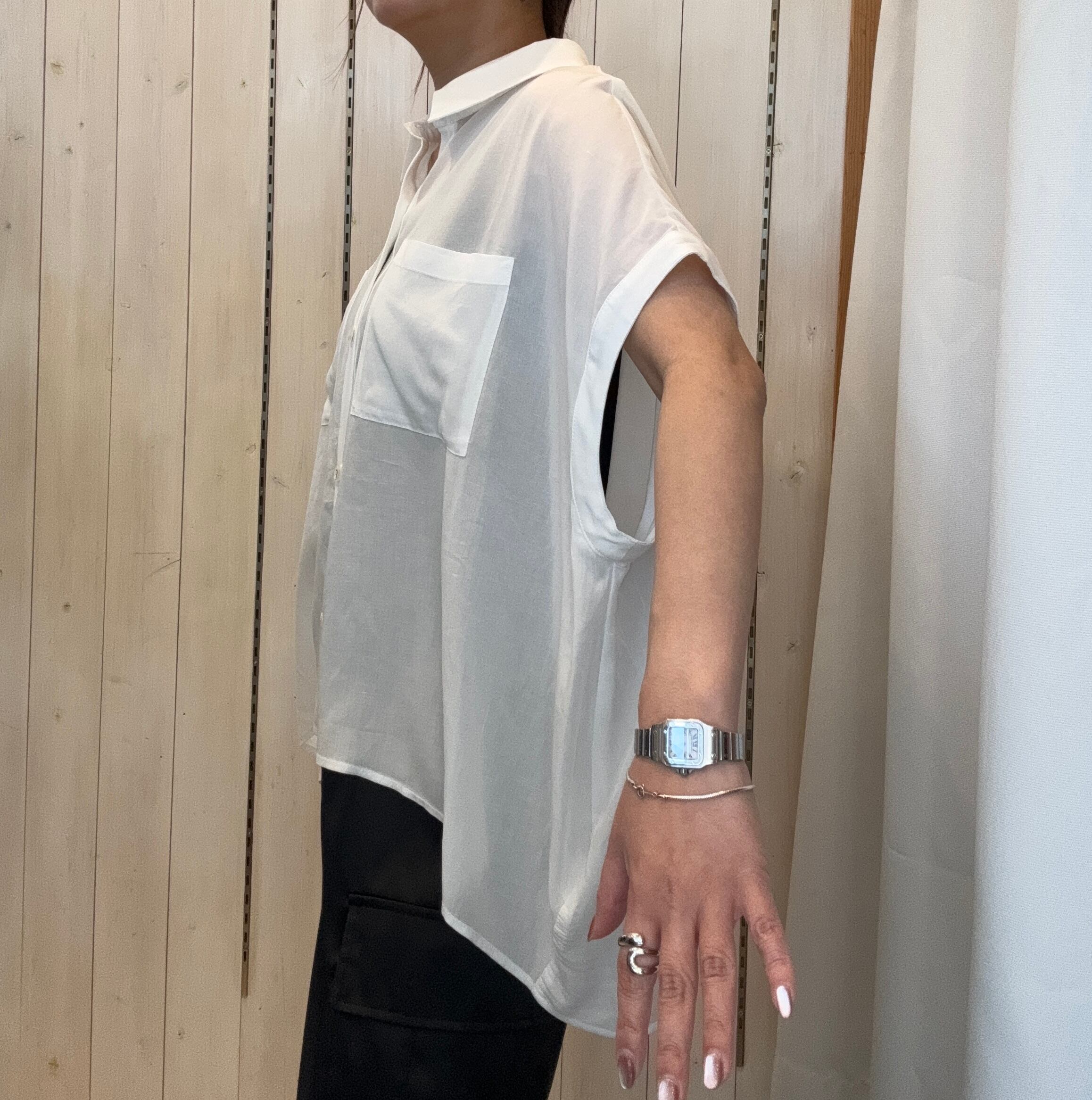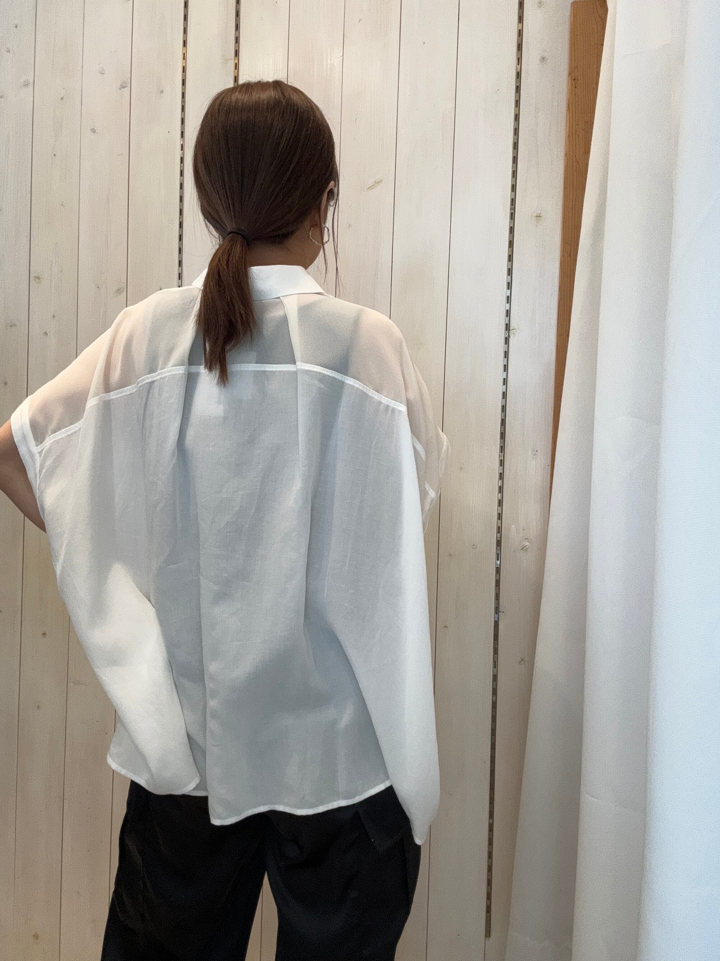 ゆったりとしたサイズの透け感のある涼しげシャツ。