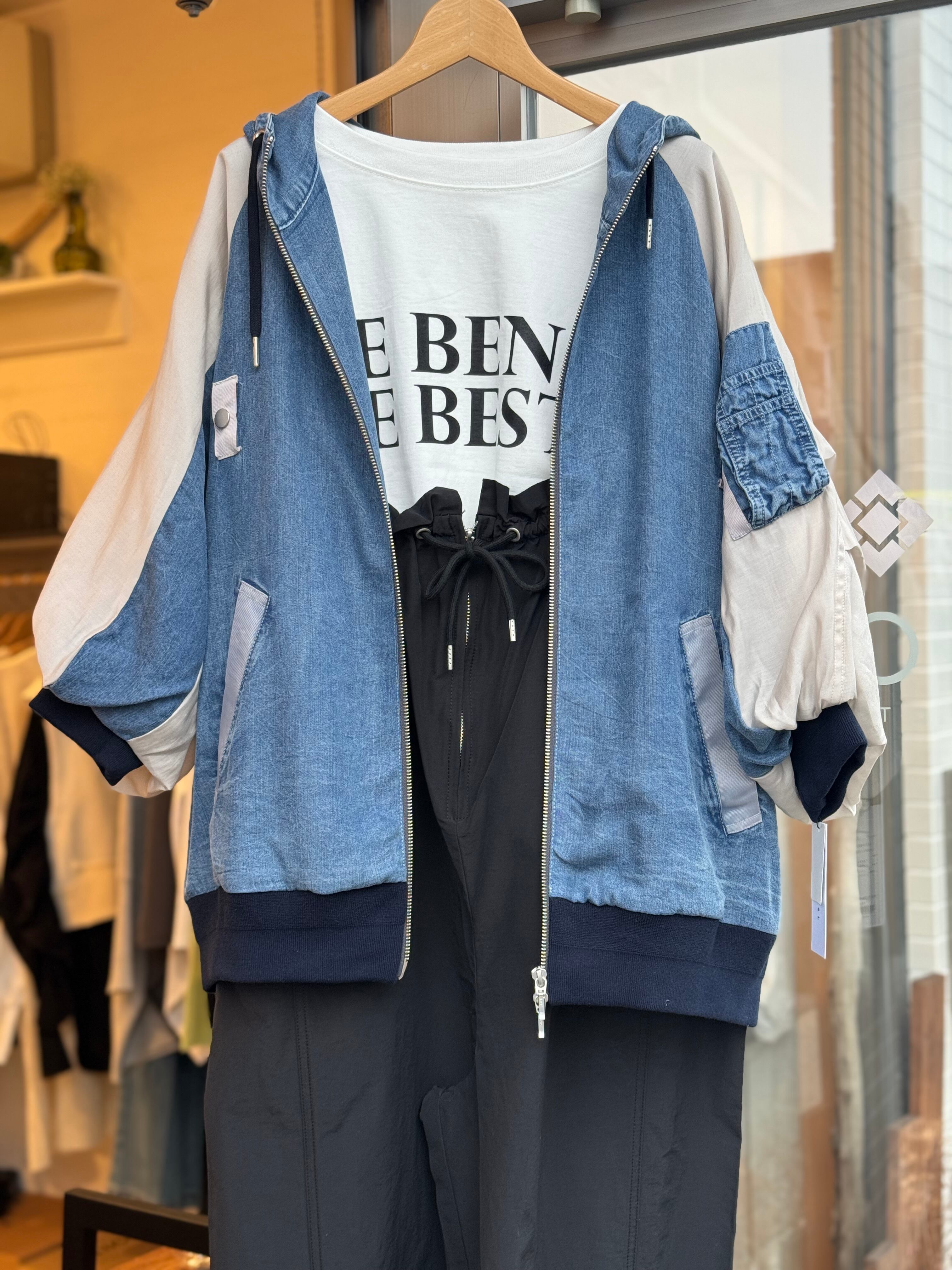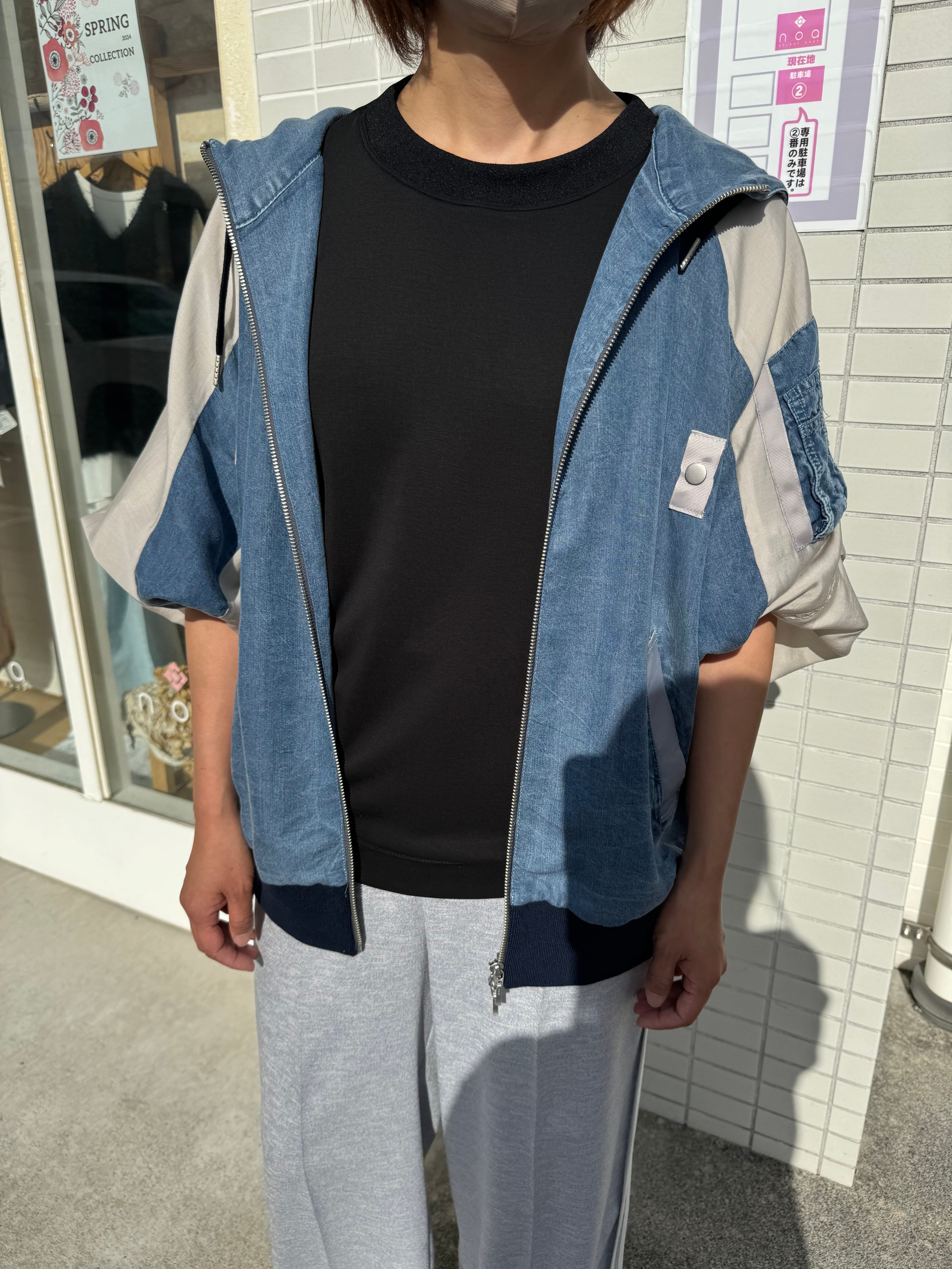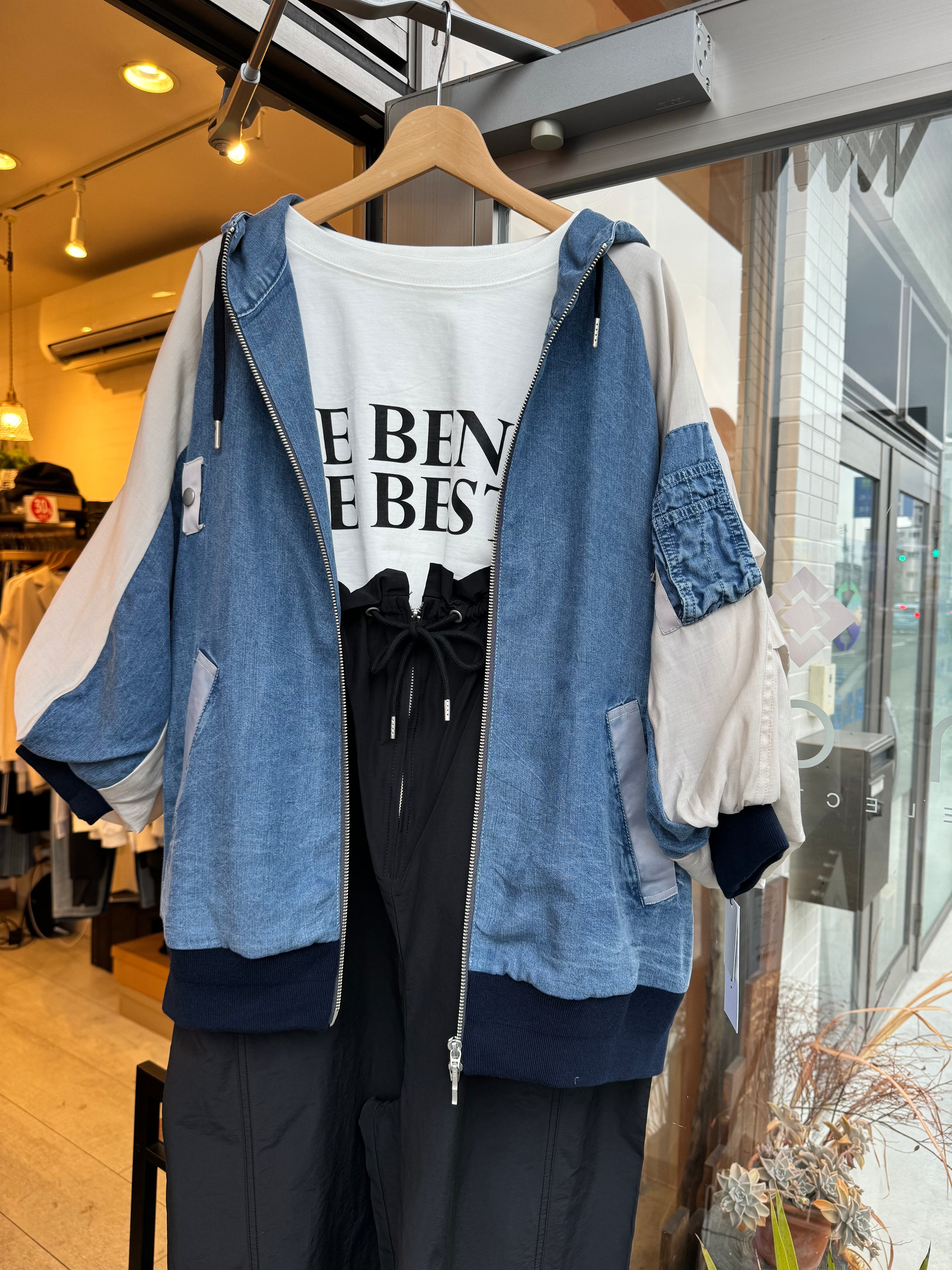 テンセルデニム×シアーシャツ地のドッキンブルゾンです。