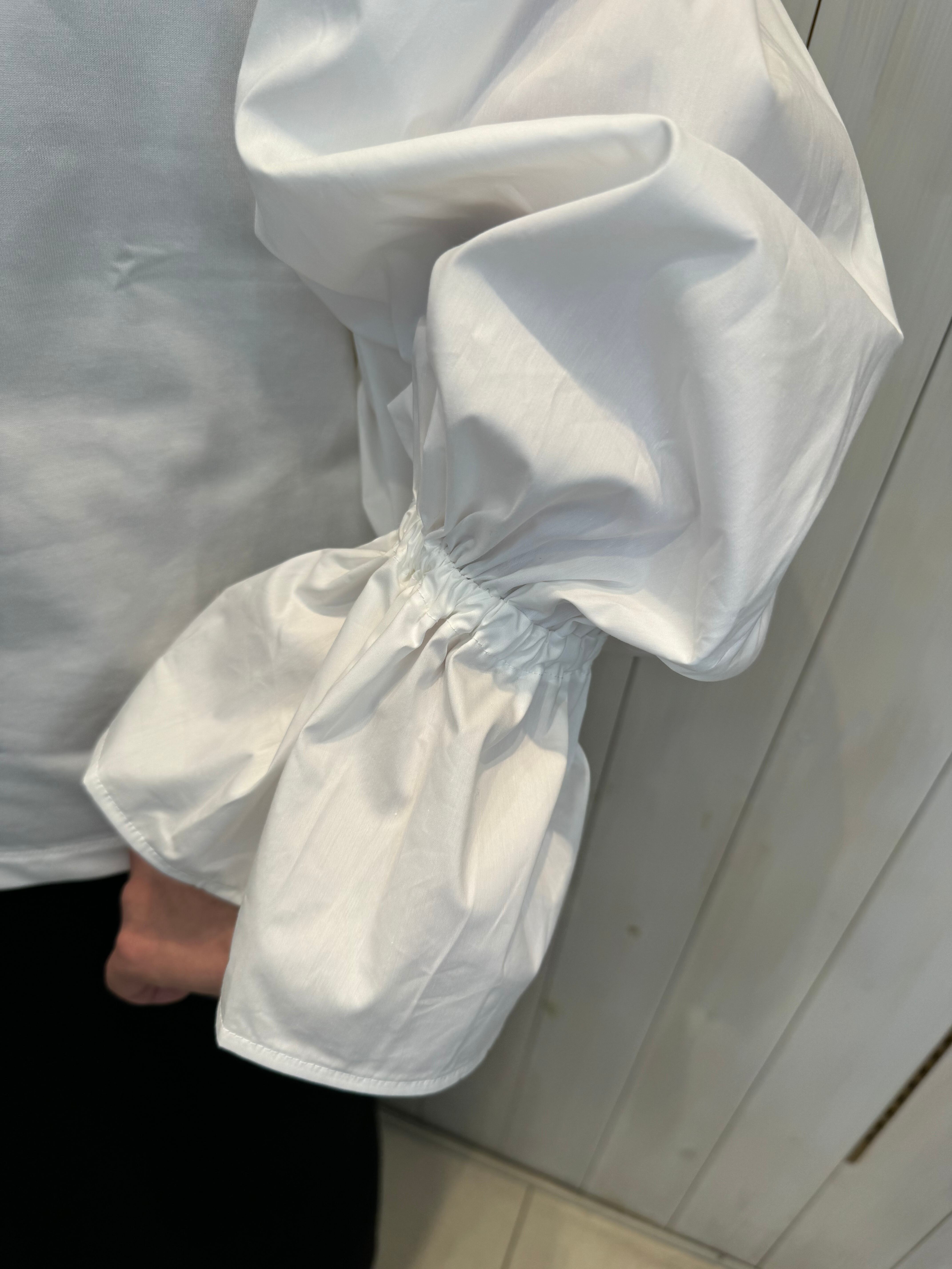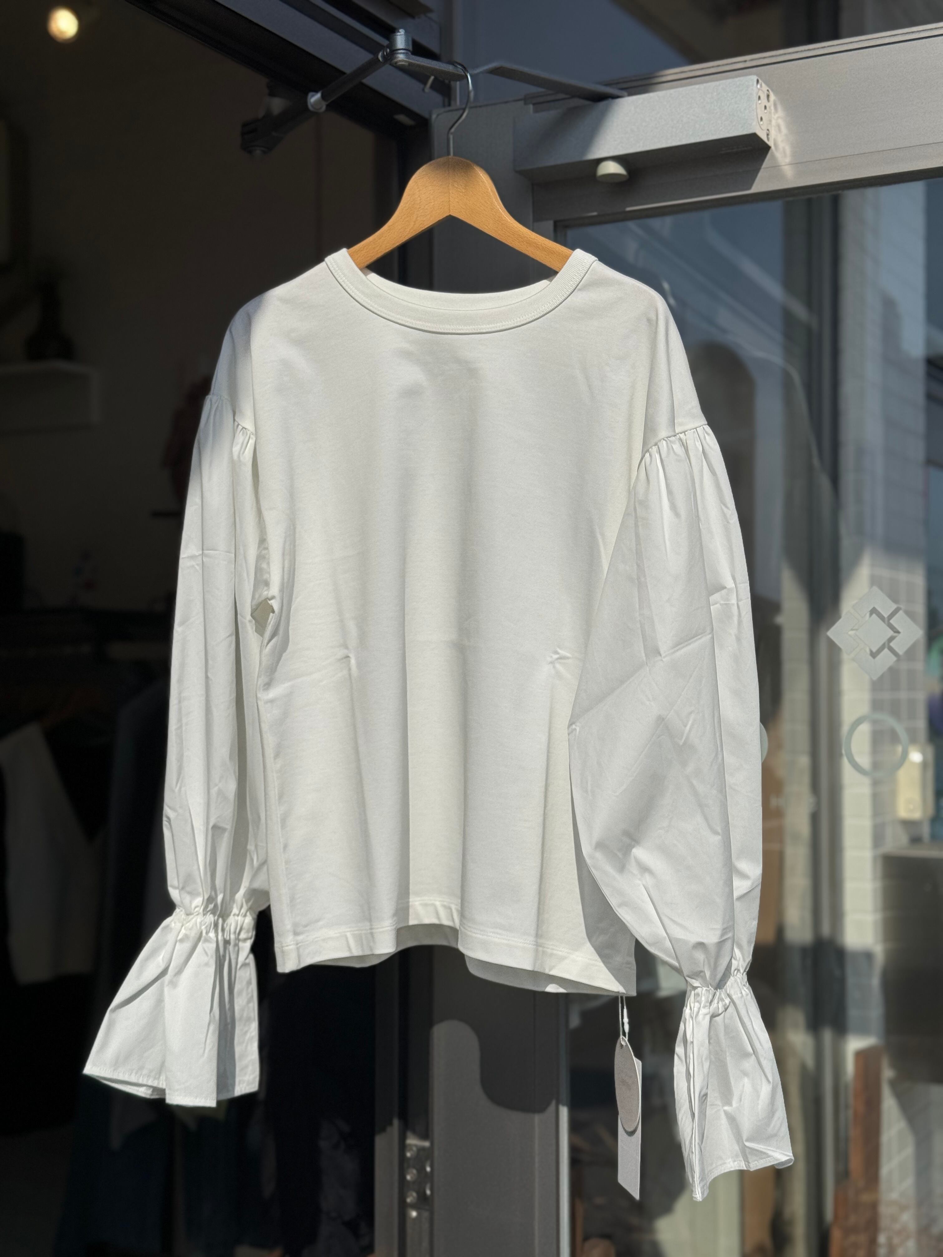 華やかなキャンディスリーブがpointの異素材ドッキングカットソー。