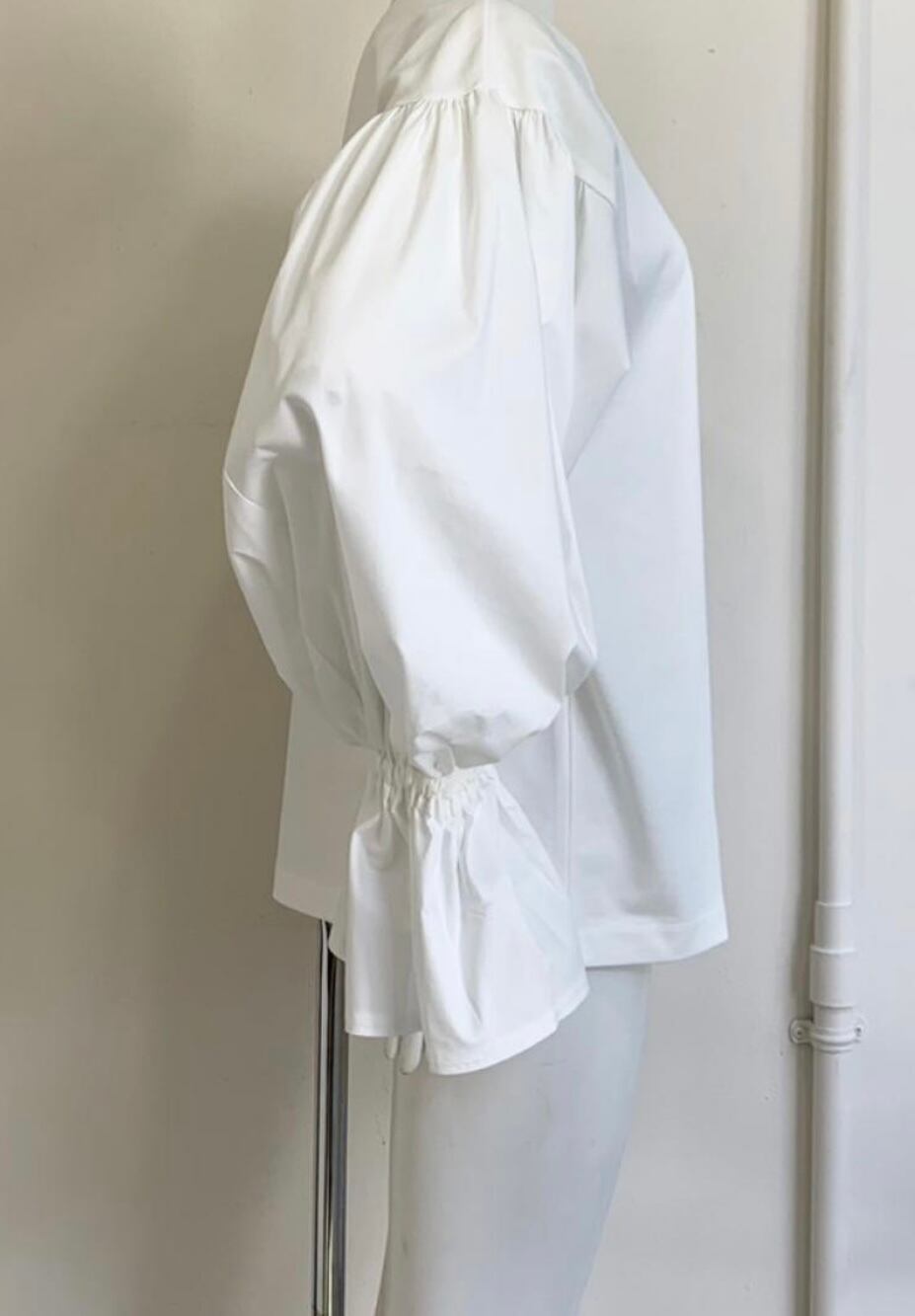 袖口にはゴムが入っているので、ブラウジングしてフォルム感を出した着こなしがオススメ。ボディは程よいゆとりの身幅なのでボトムも選ばず、インでもアウトでも幅広いコーディネートをお楽しみいただけます。