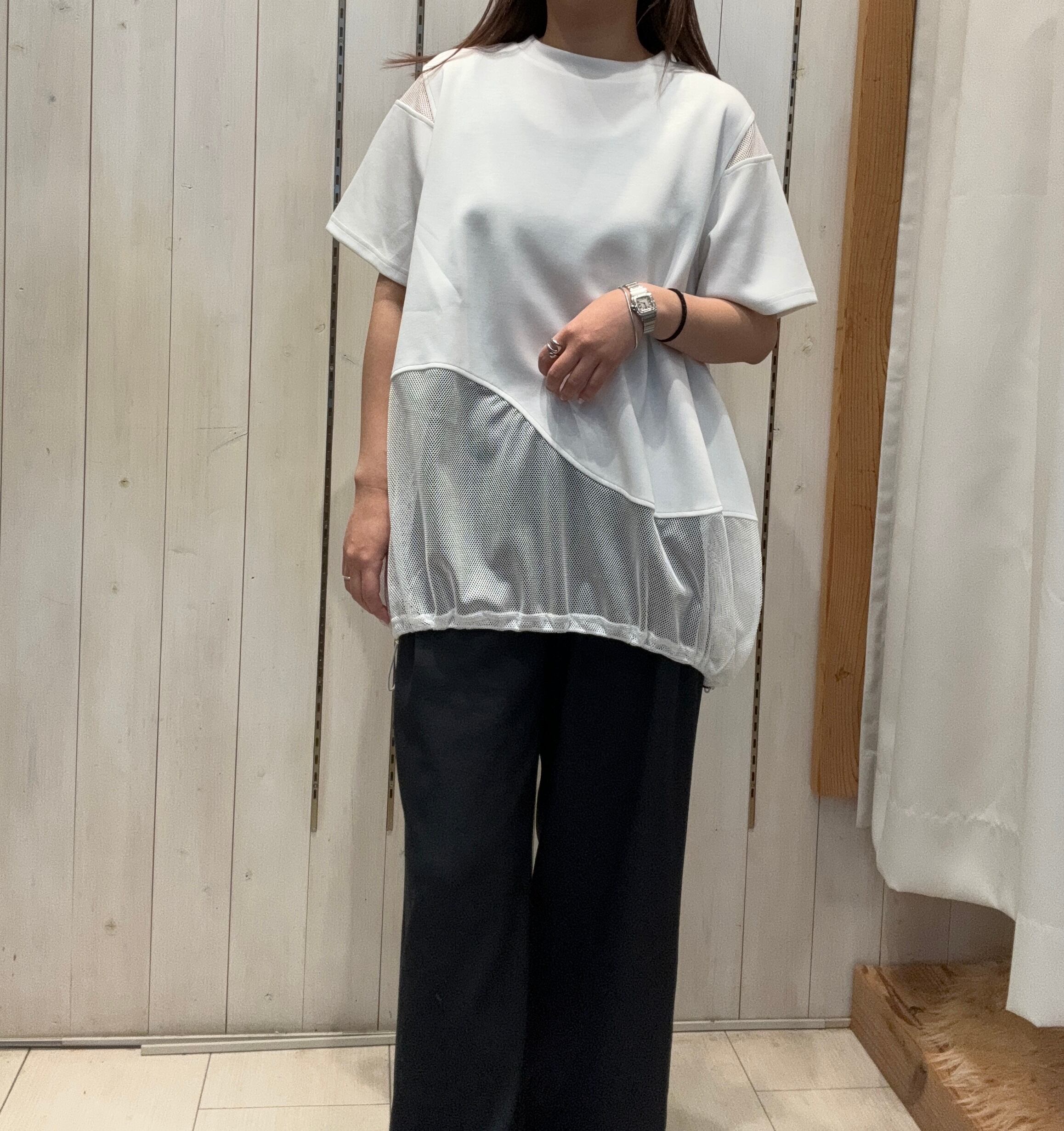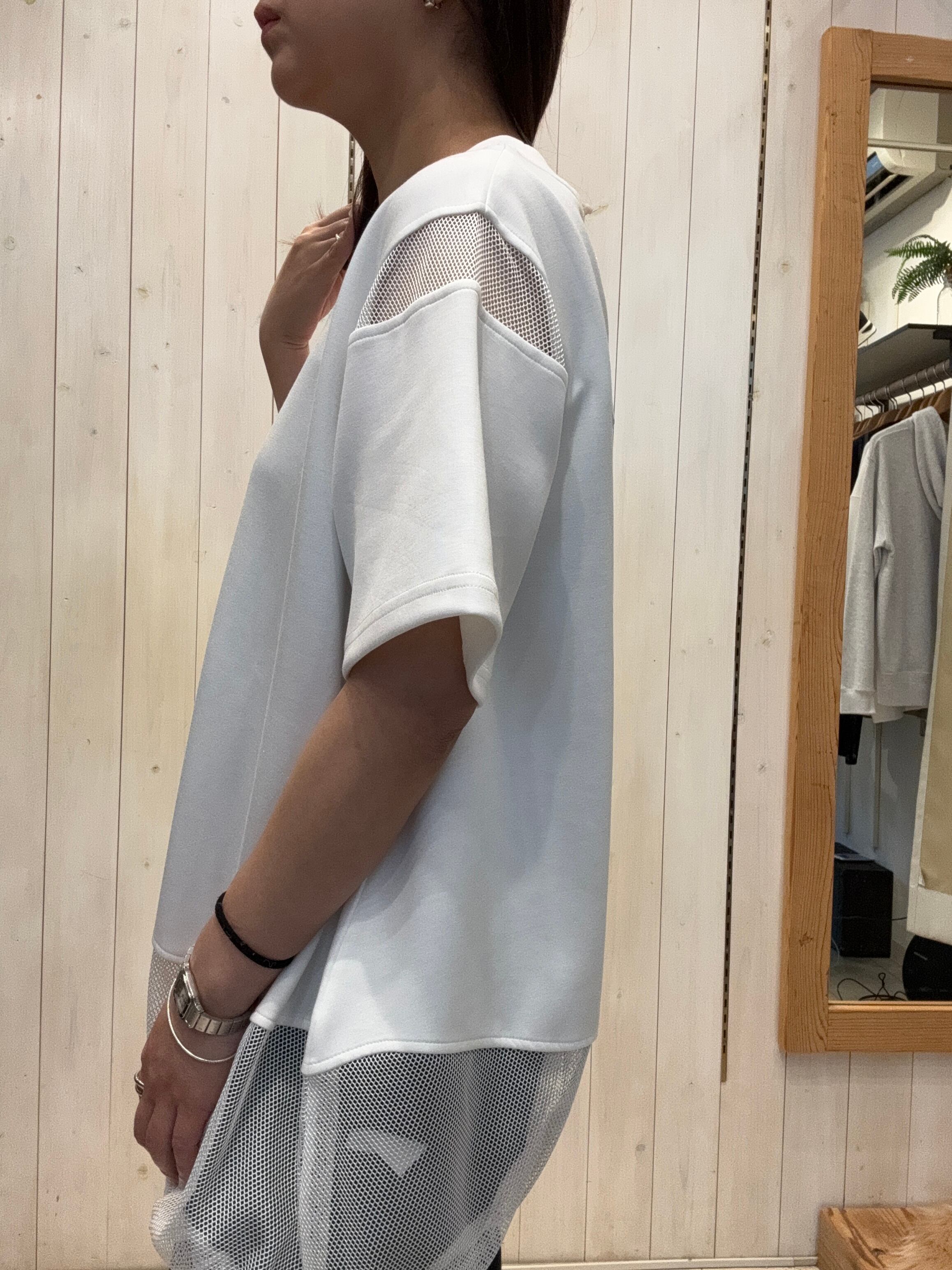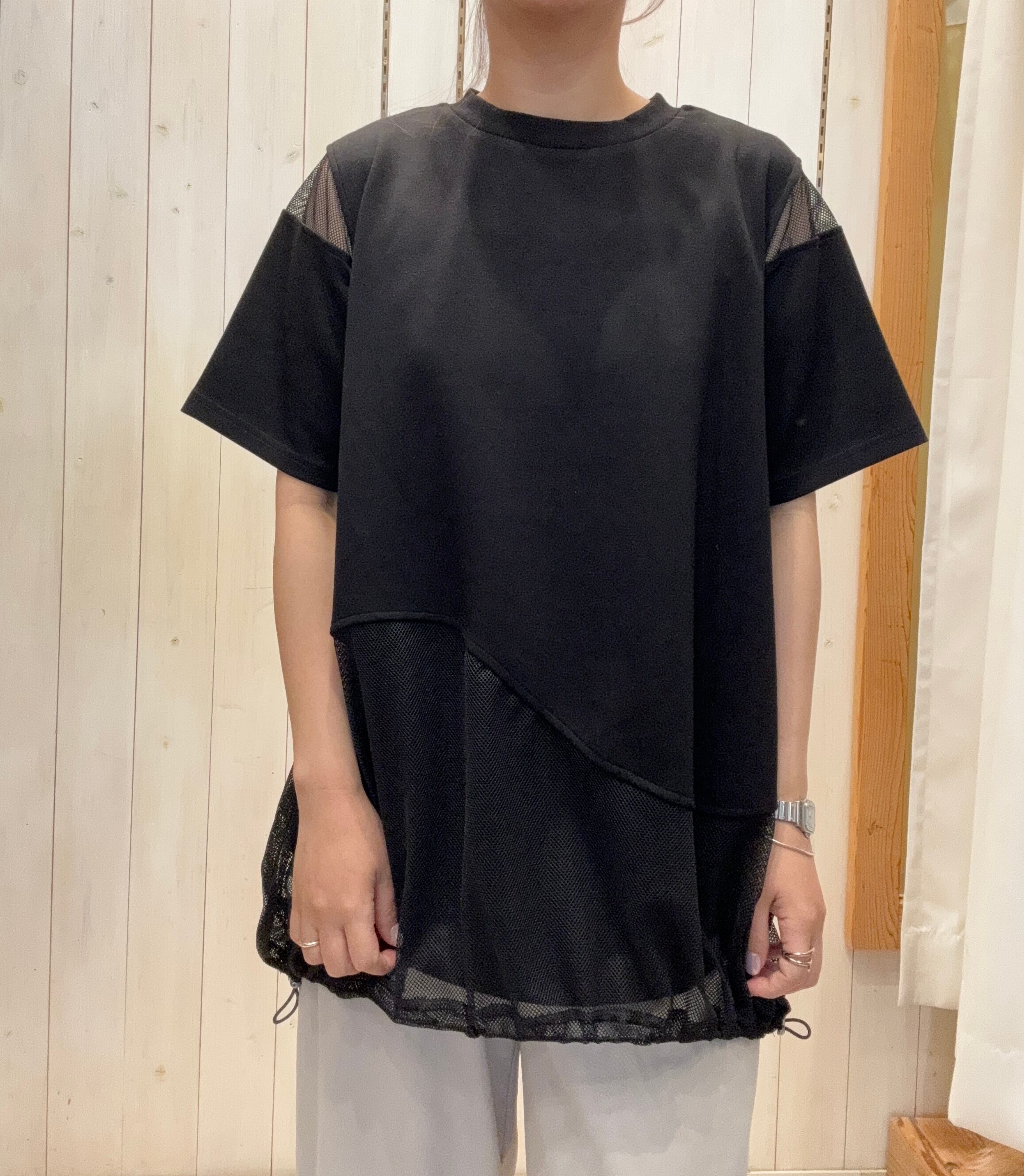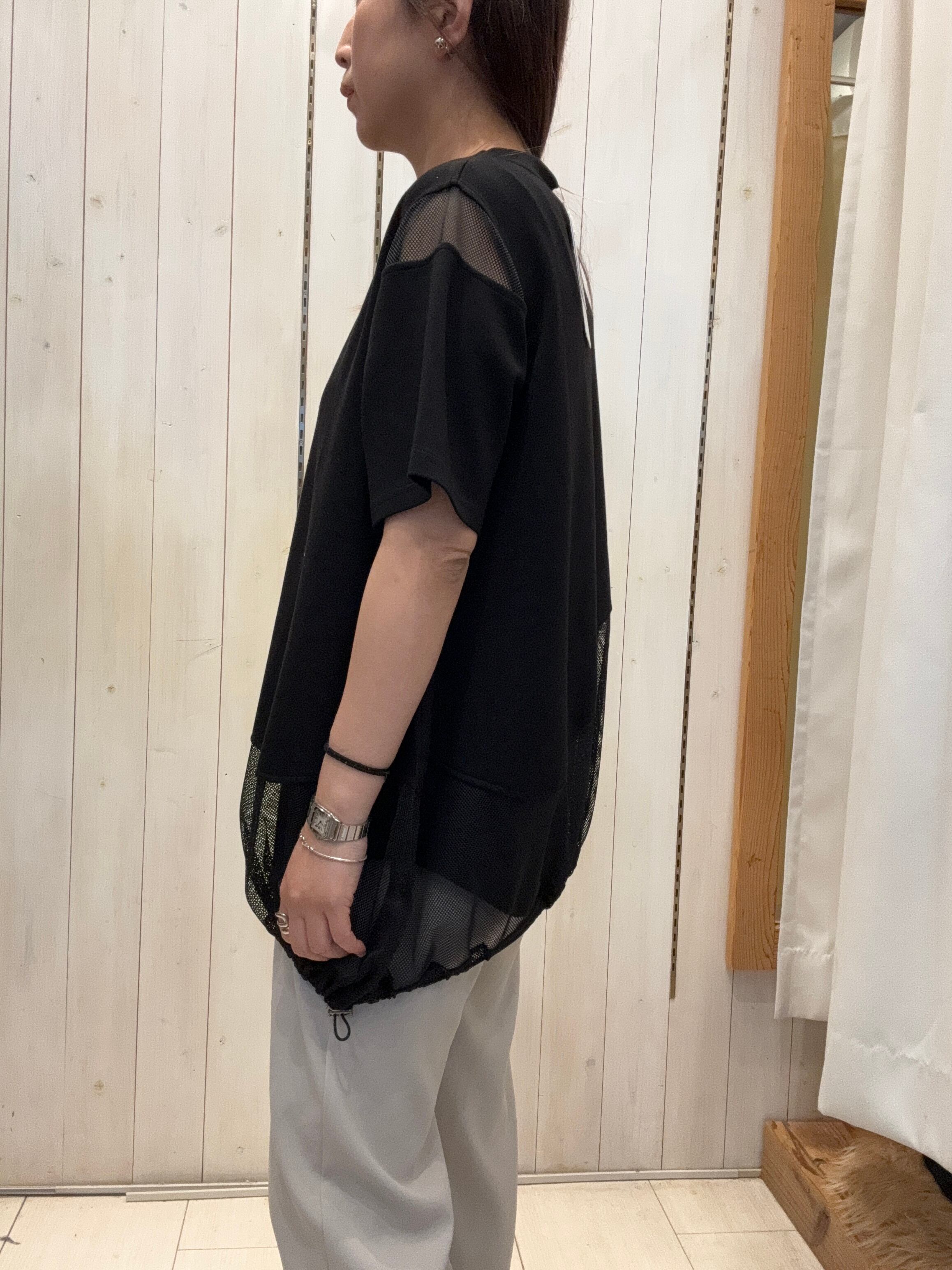 ショルダー部分と裾にメッシュ素材を切り替えたデザインで