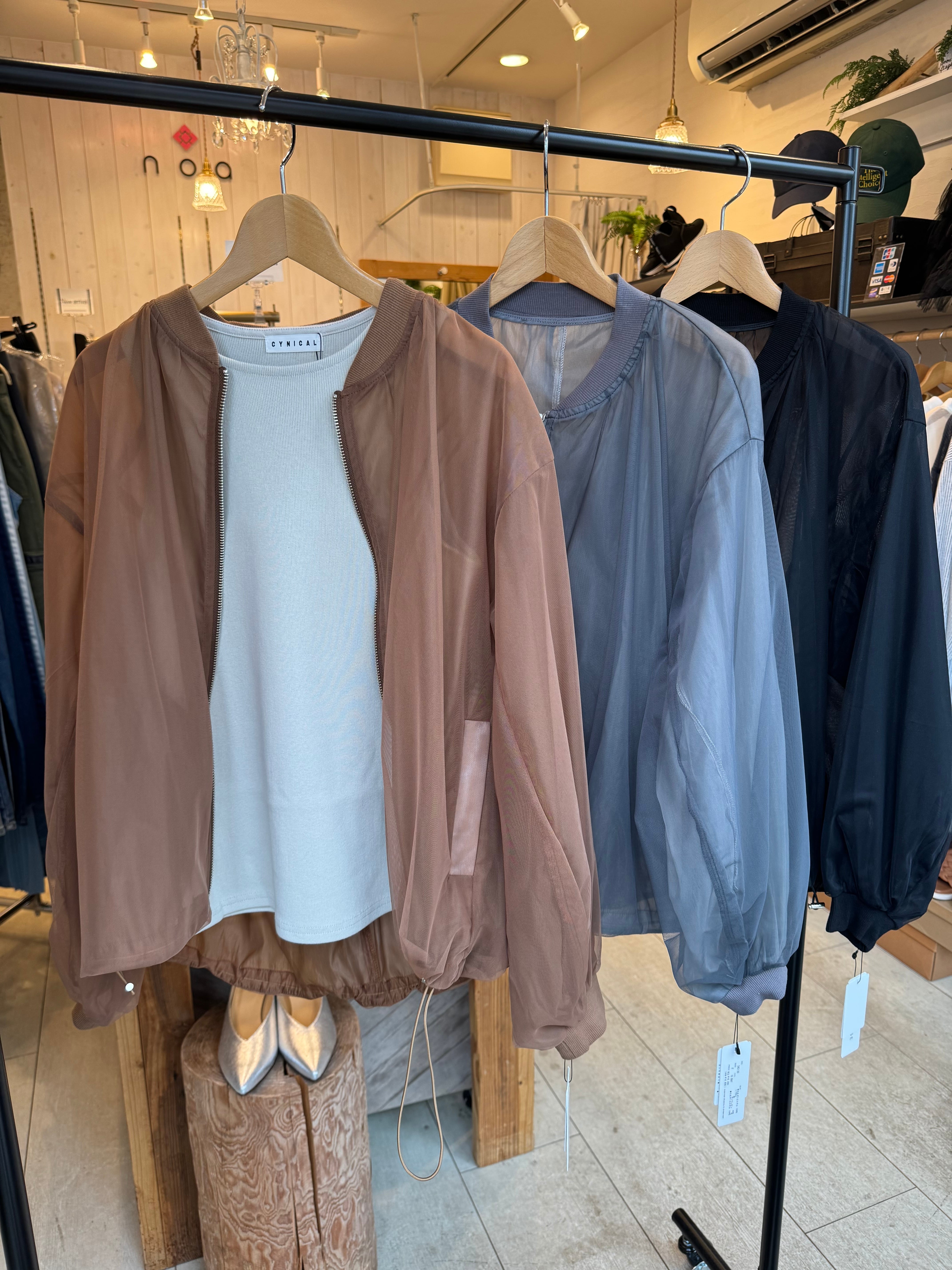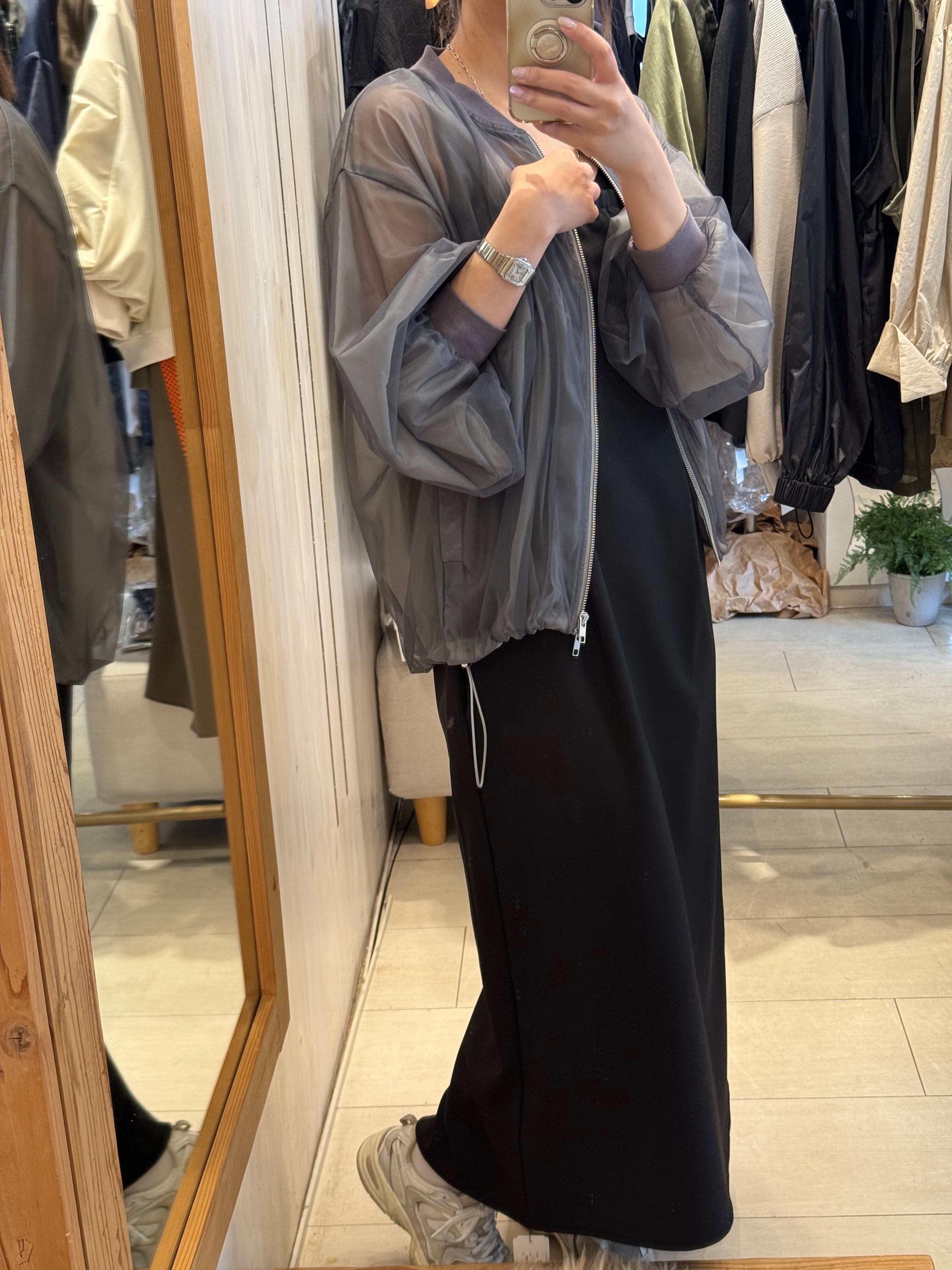 程よい透け感とドロストデザインが他には無いブルゾンに仕上がっています。