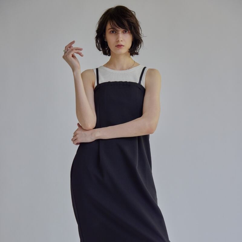 前に大きくタックの入った綺麗なIラインワンピースです。