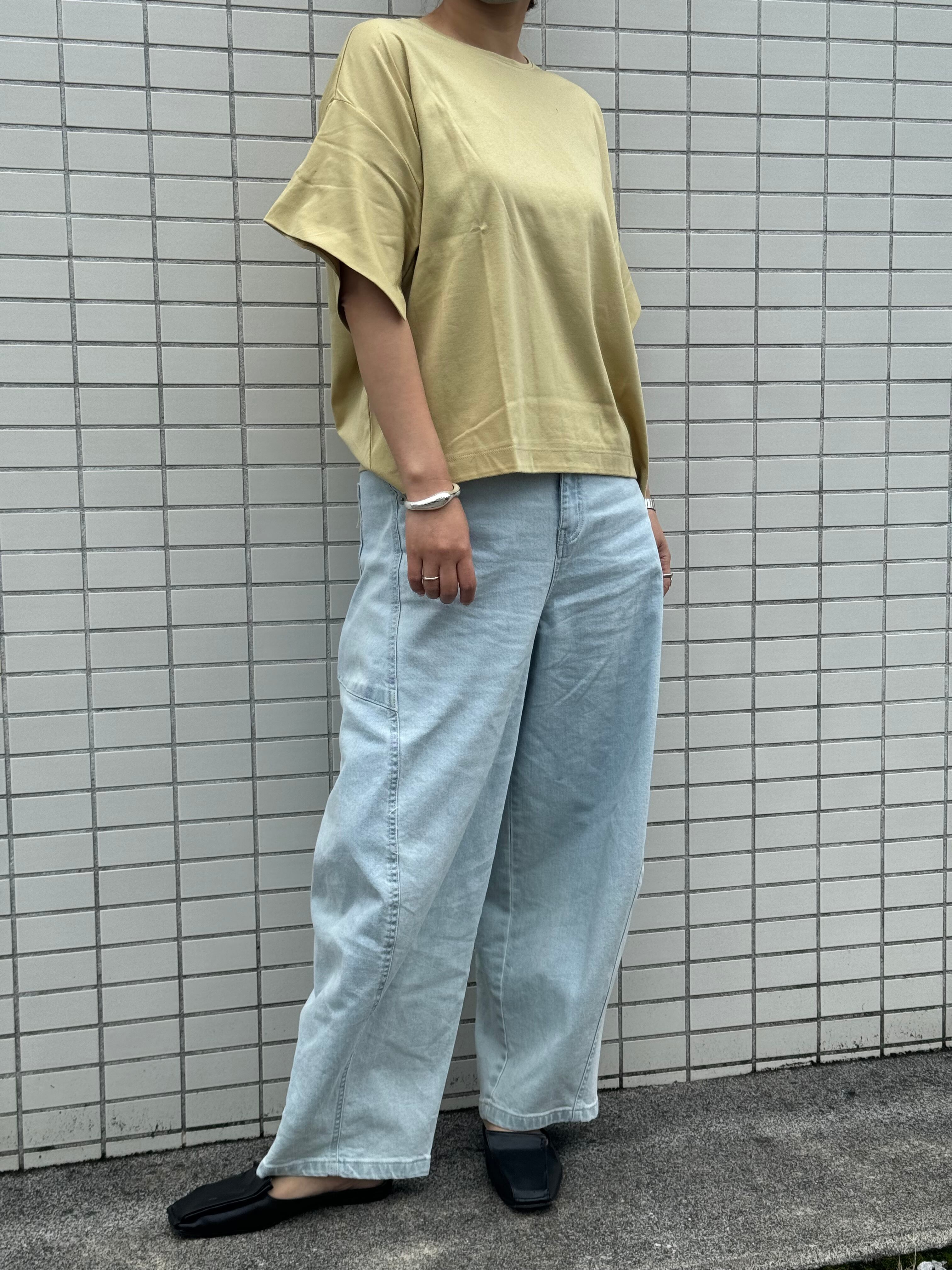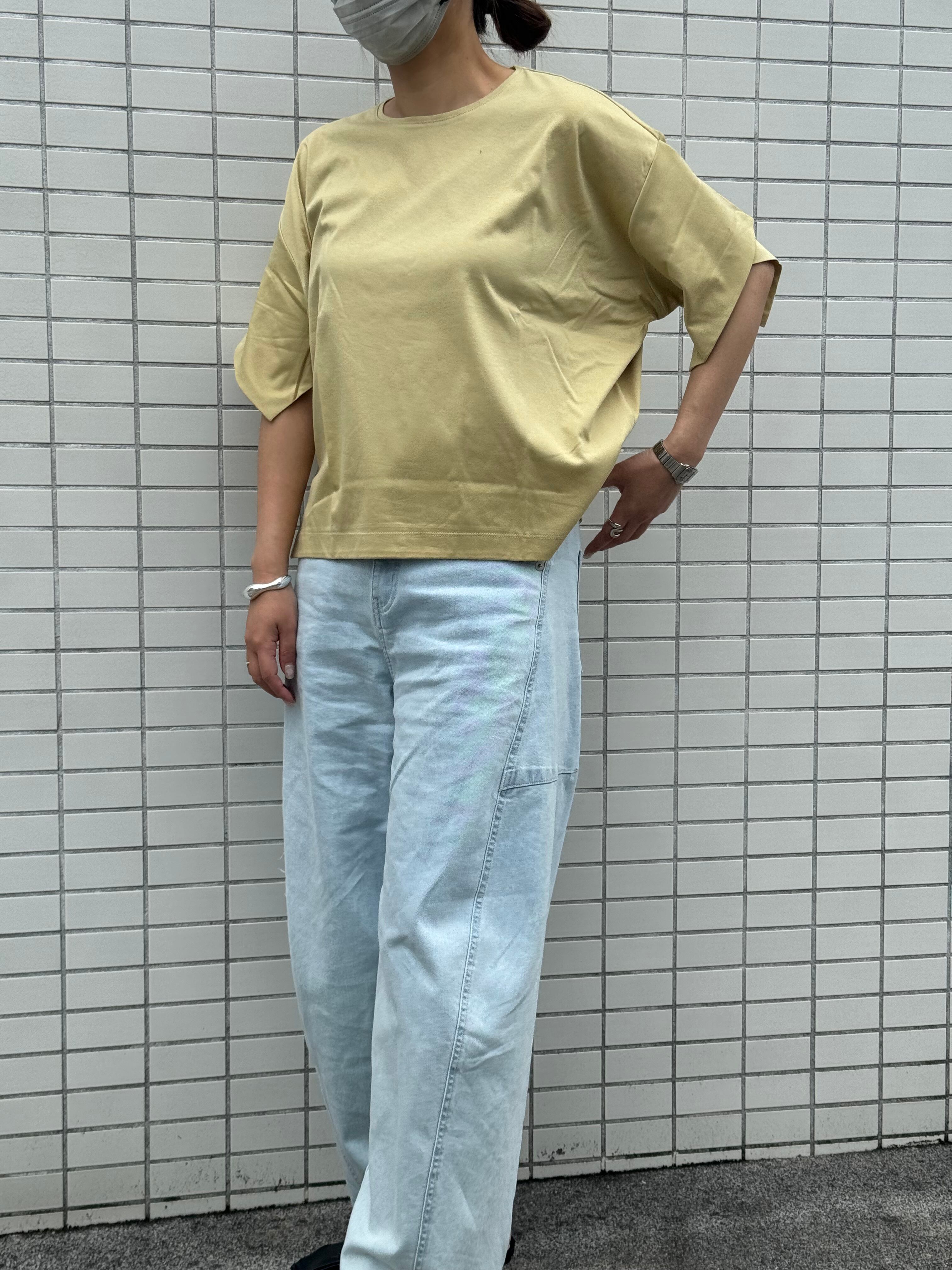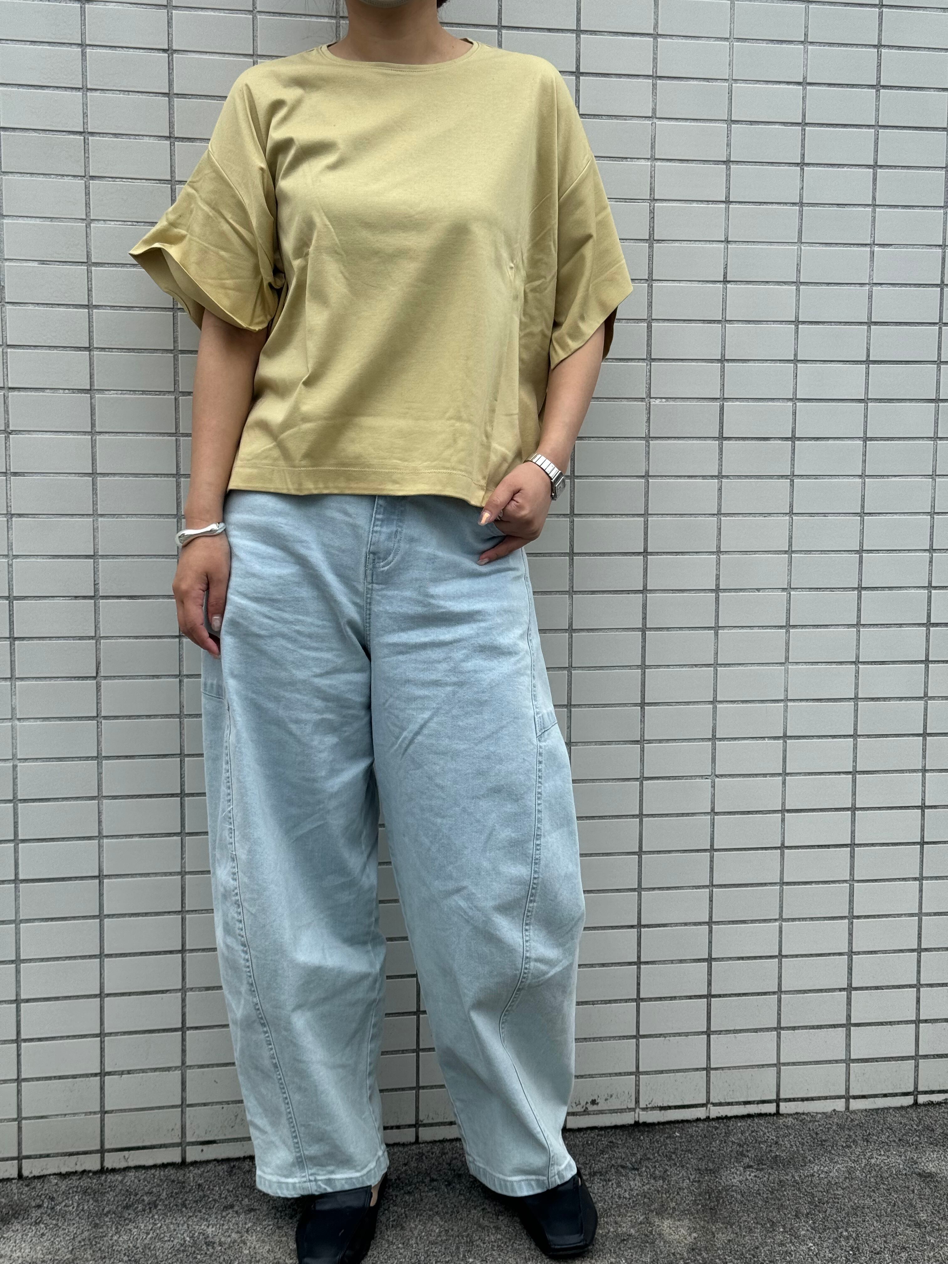 体のラインを拾いにくいゆとりのあるシルエットのカットソーです。