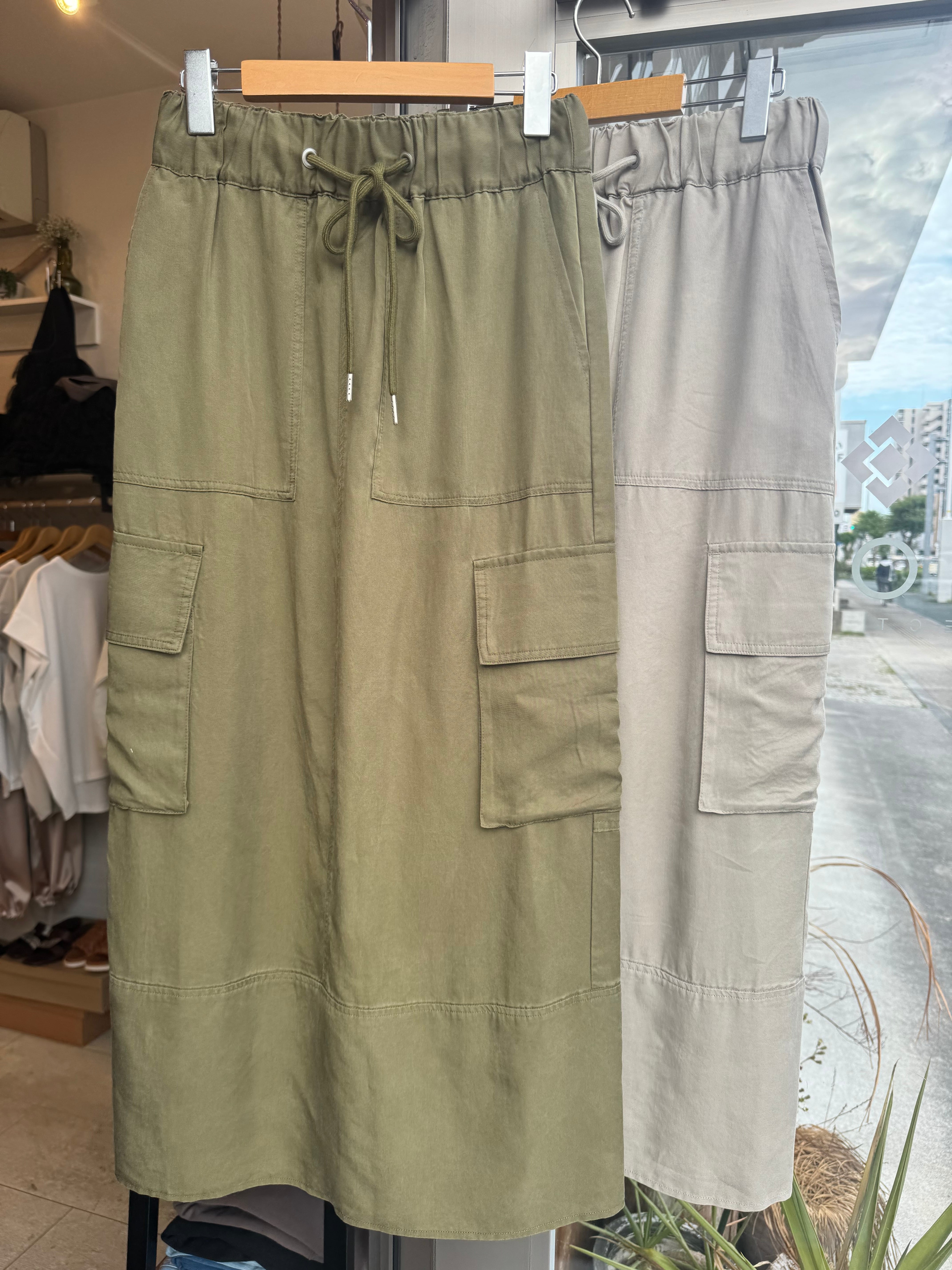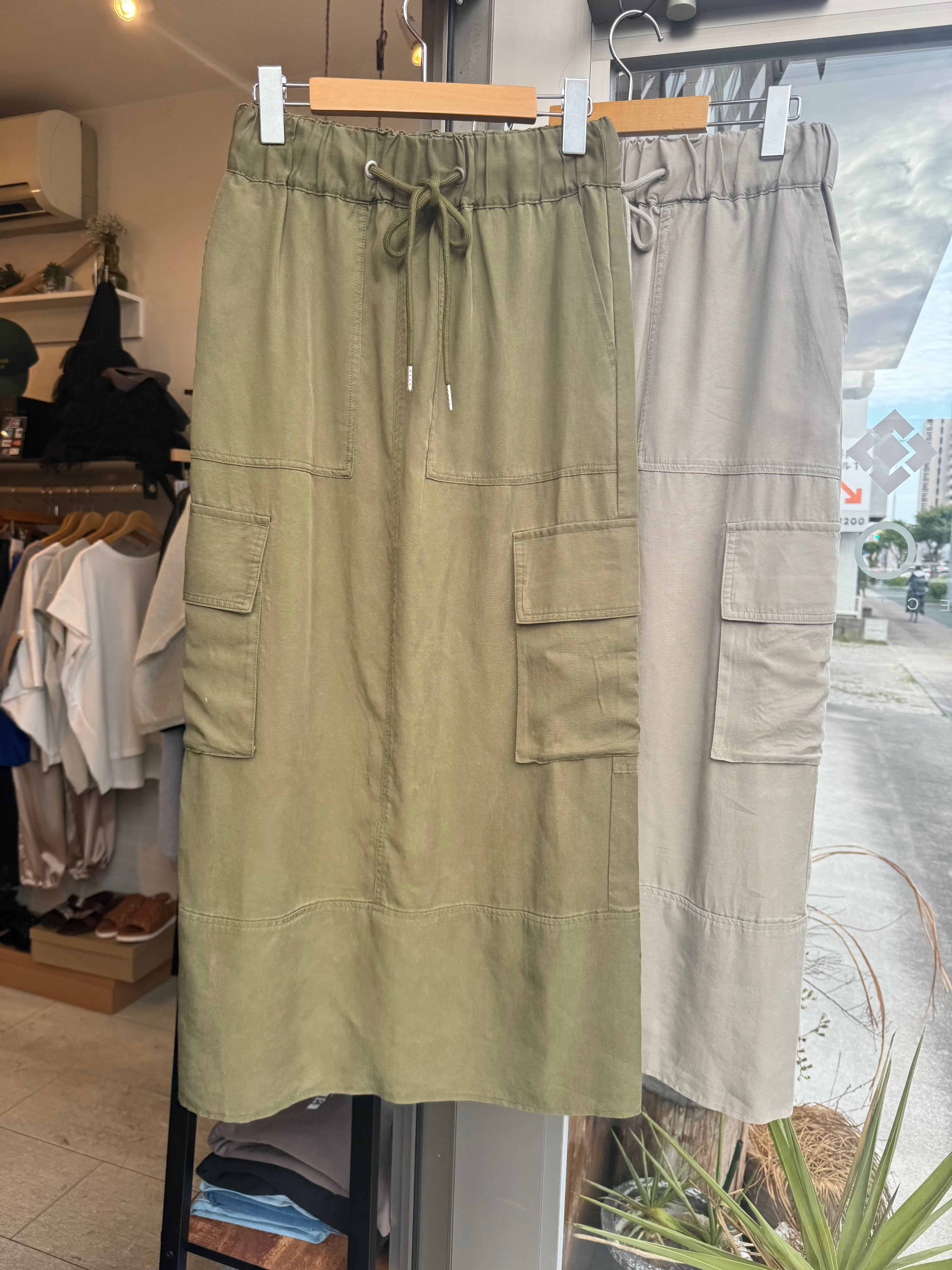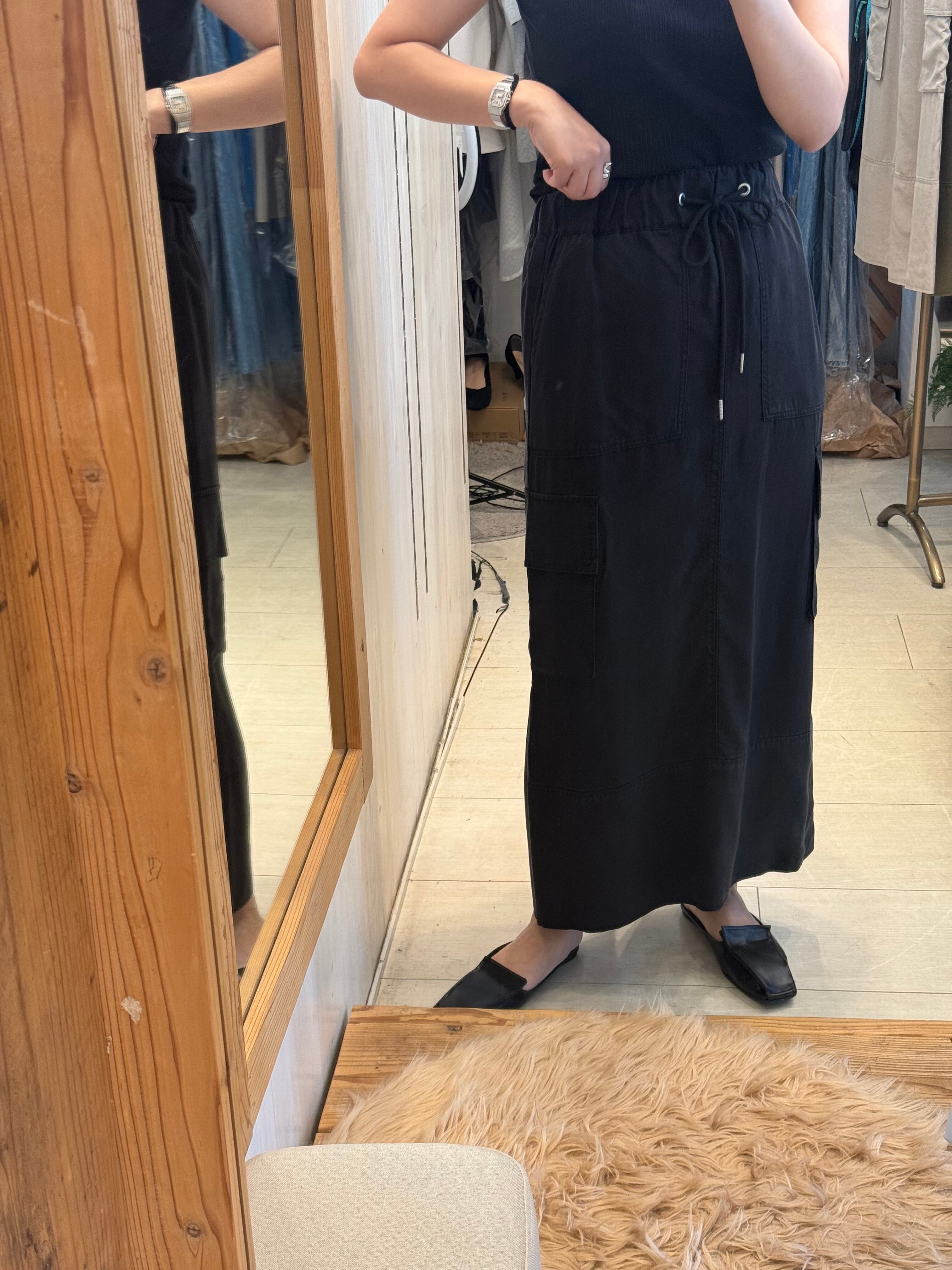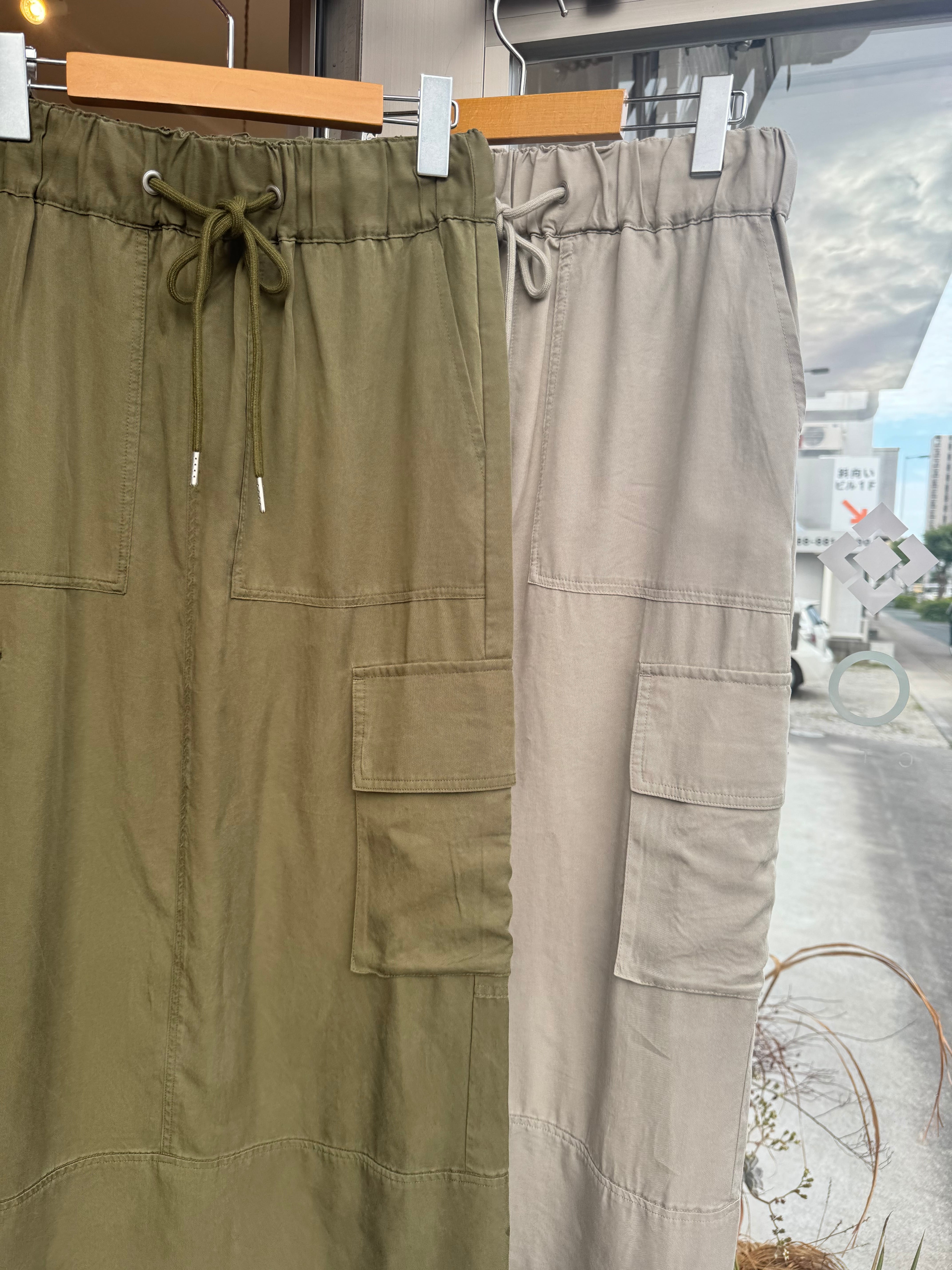とろみのある滑らかなテンセル生地を使用したロング丈のカーゴスカートです。