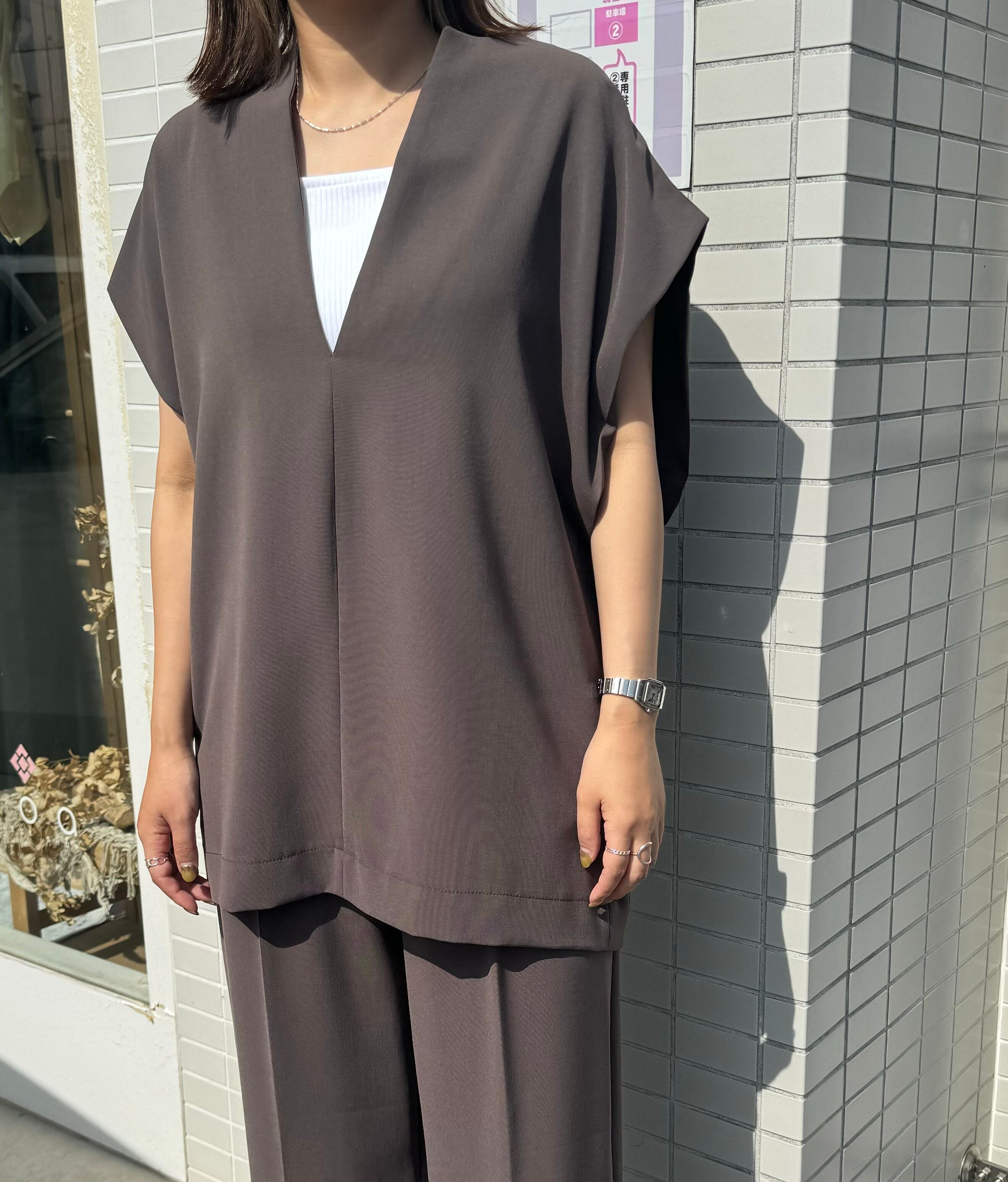 Tシャツの”手軽さ”にブラウスの”きちんと感”を融合させたアイテムのこと。
