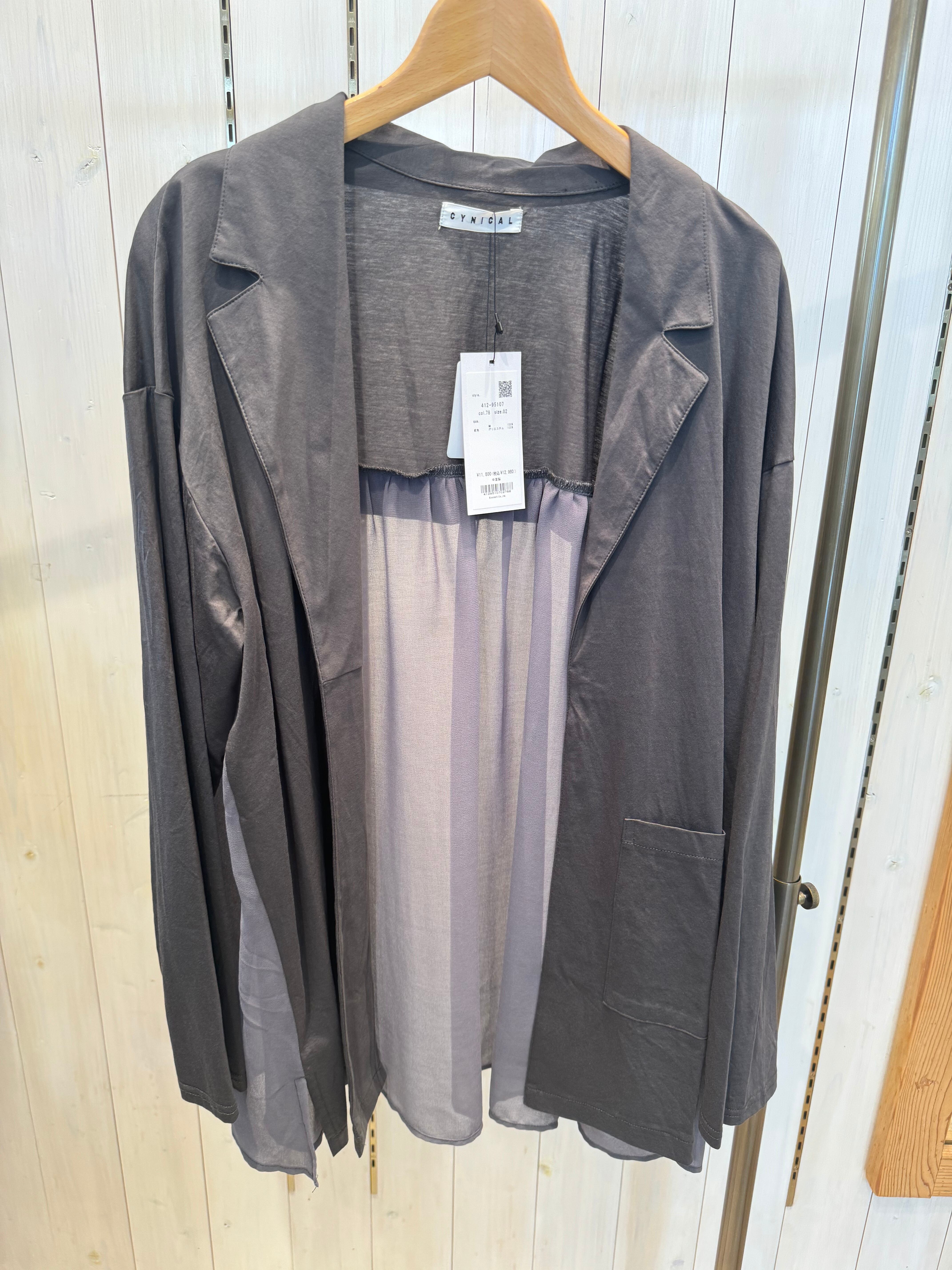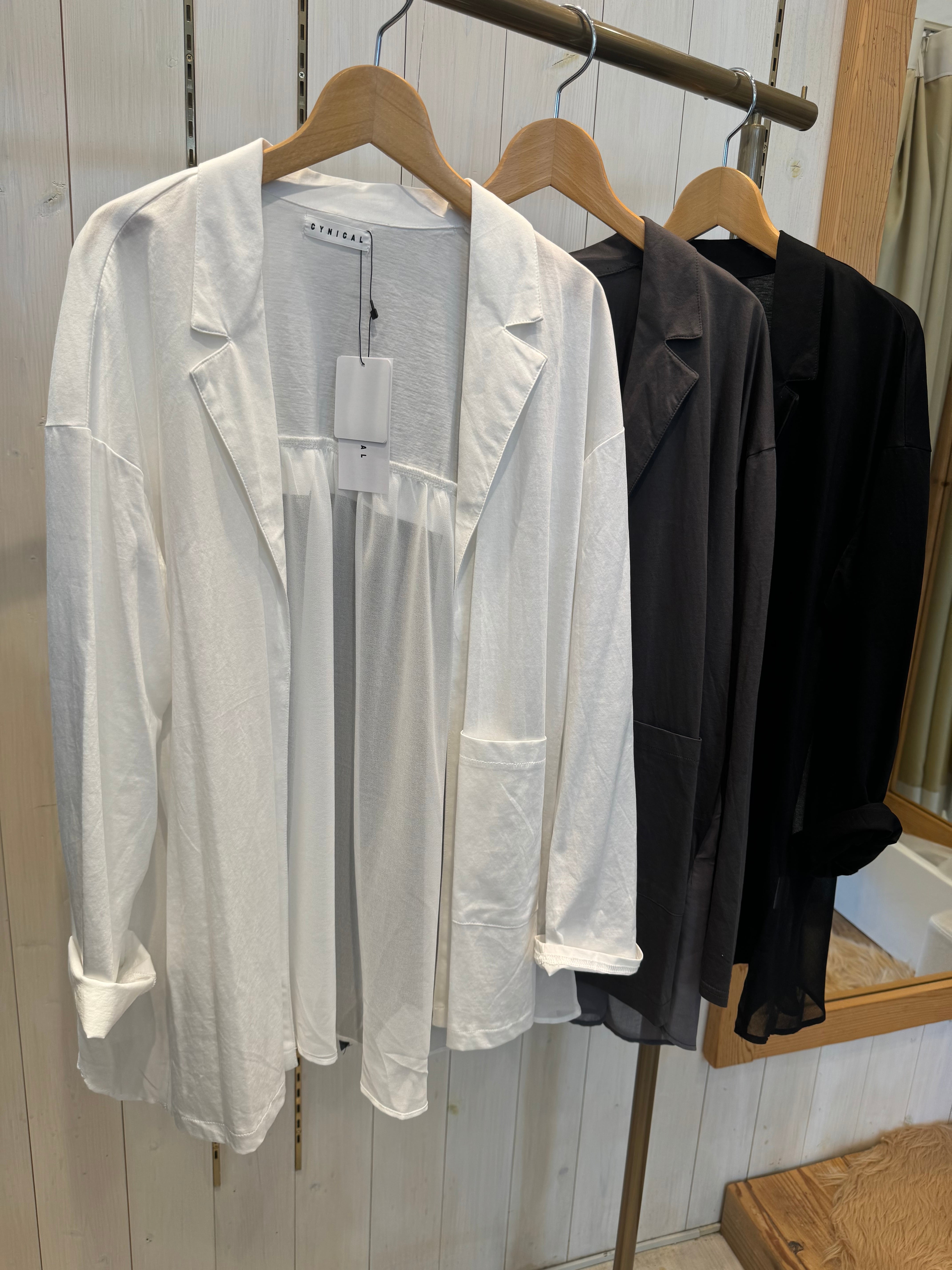 シルケット加工の滑らかな綿100%と後ろはジョーゼットシフォンで風通しが良く真夏にもサラッと涼しく羽織れます◎