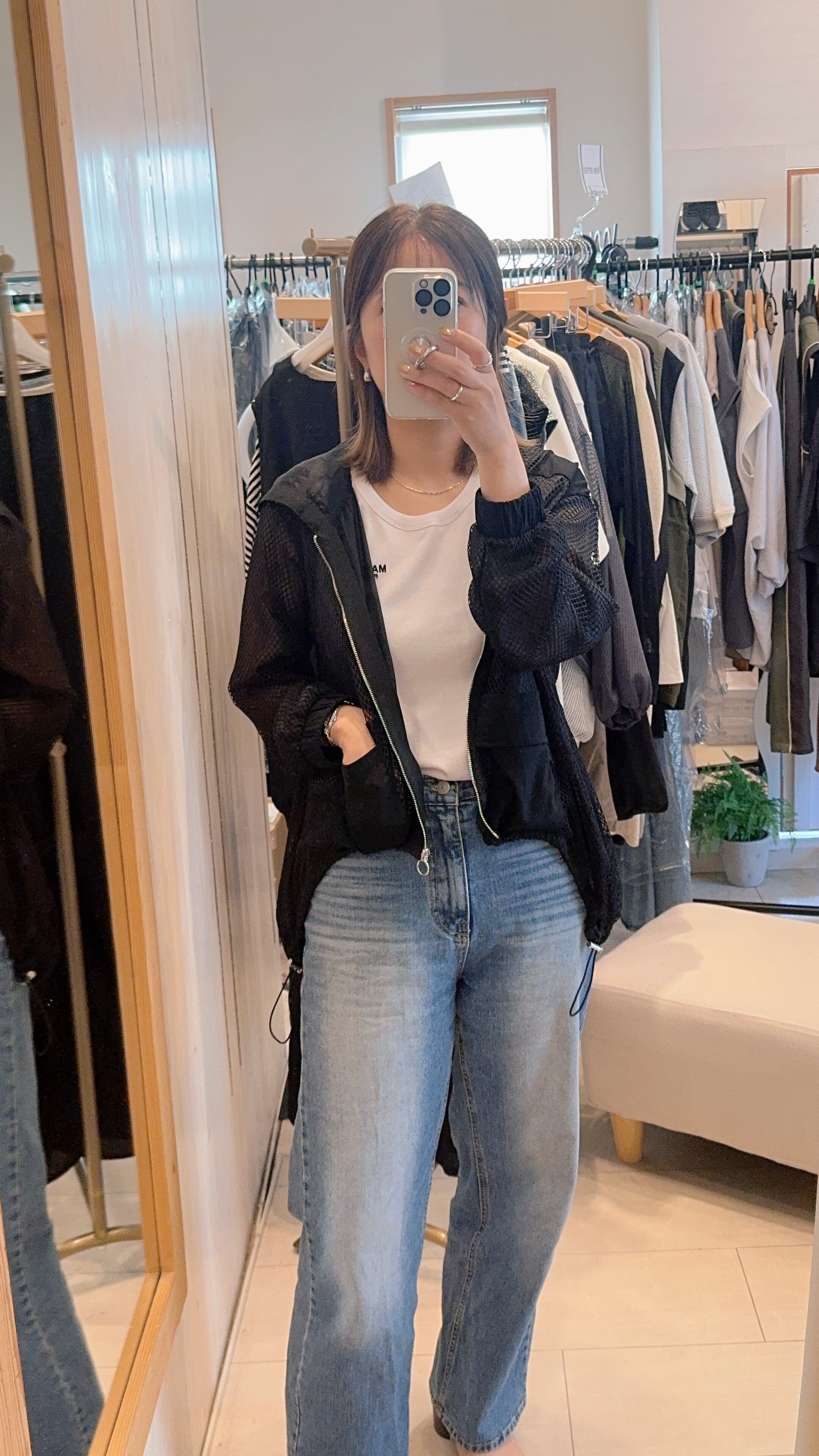 前後差のあるメッシュパーカー