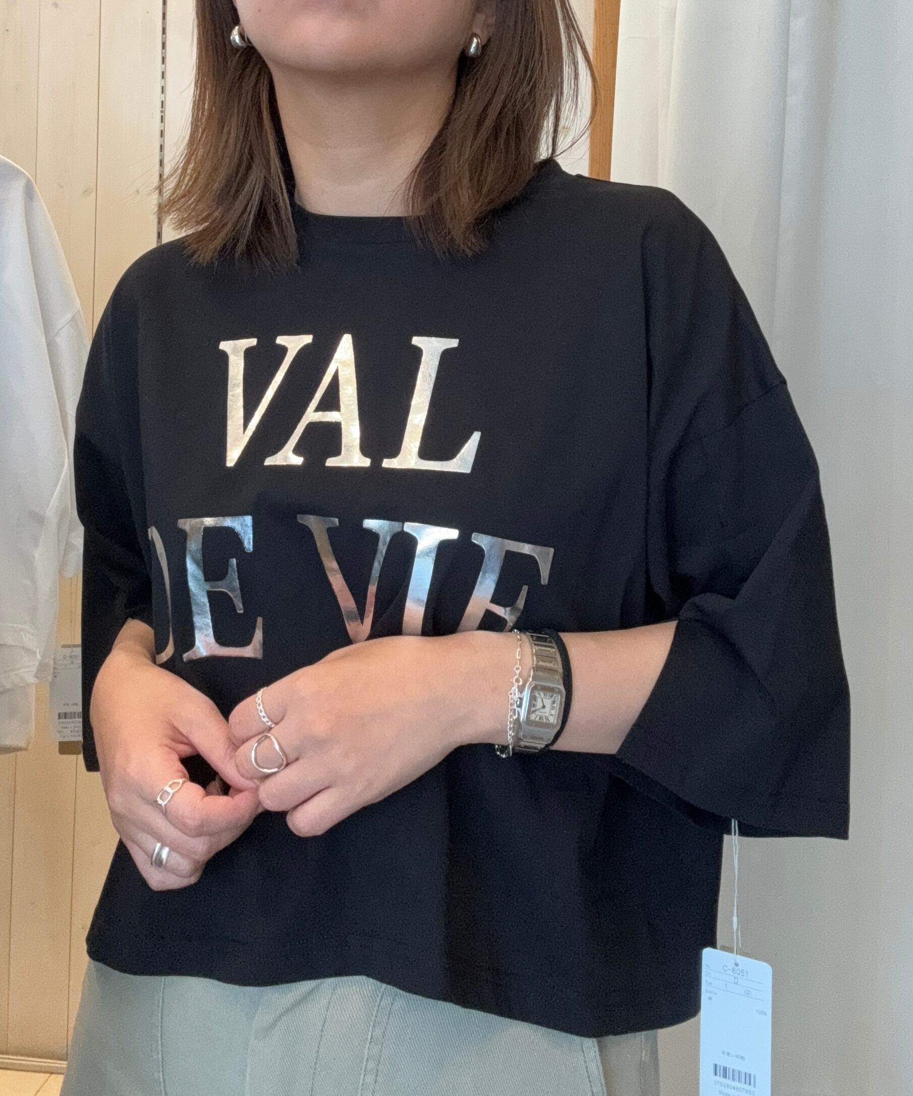 ロゴデザインながら箔プリントなのでカジュアルになりすぎずに大人っぽく着て頂けます。