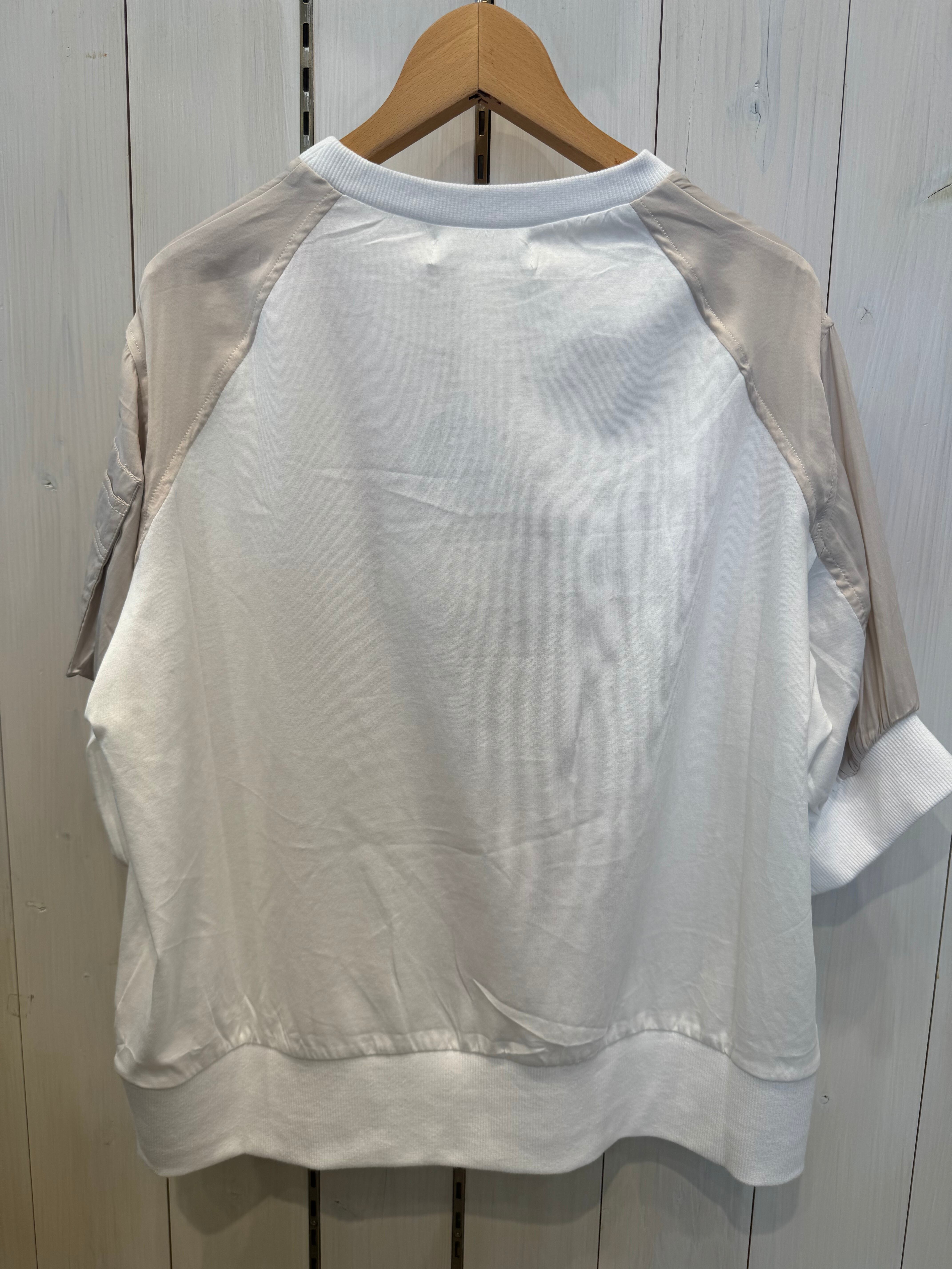 グログランテープとMA-1風の袖が特徴的なデザイン。左袖にはファスナーポケットがありカジュアルなスタイリングにアクセントを加えます。